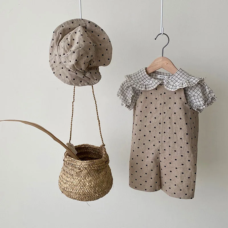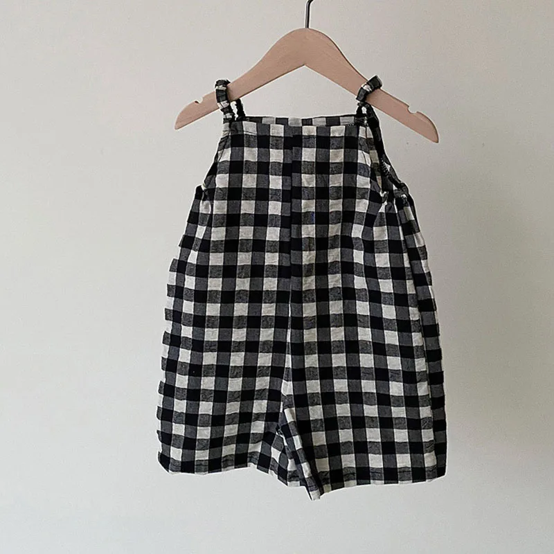 ベビー チェック みずたま ノースリーブ ルーズ ジャンプスーツ サロペットパンツ【mh0000858】