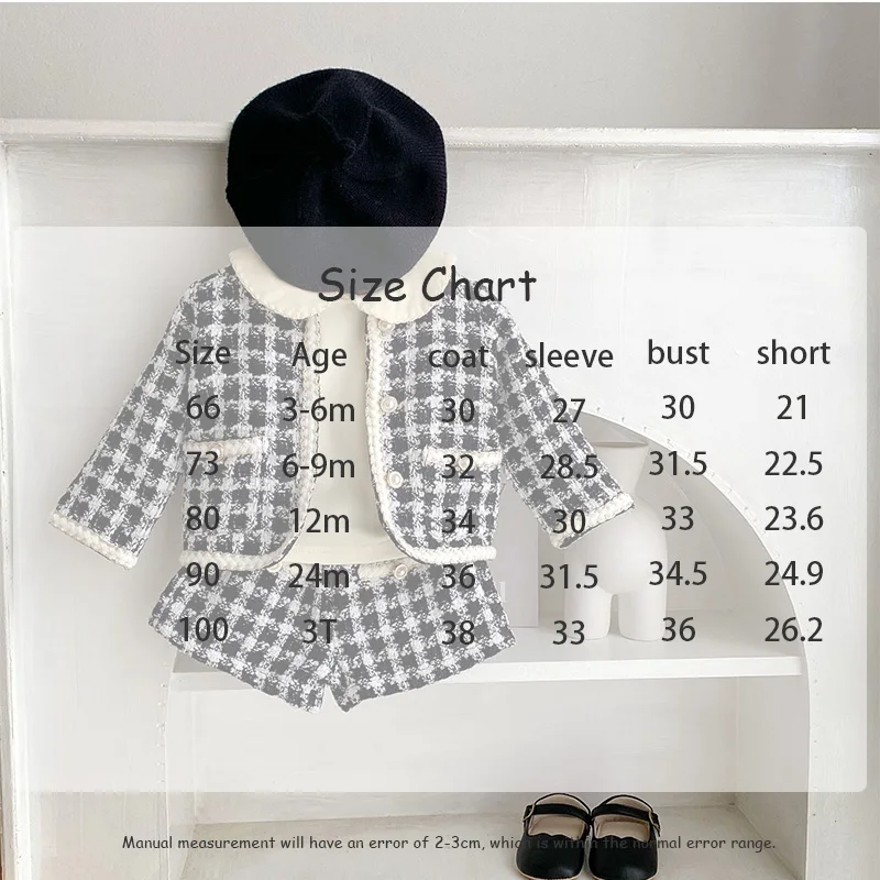 ベビー セットアップ スーツ ツイード パールボタン ジャケット トップス ショートパンツ【mh0001211】