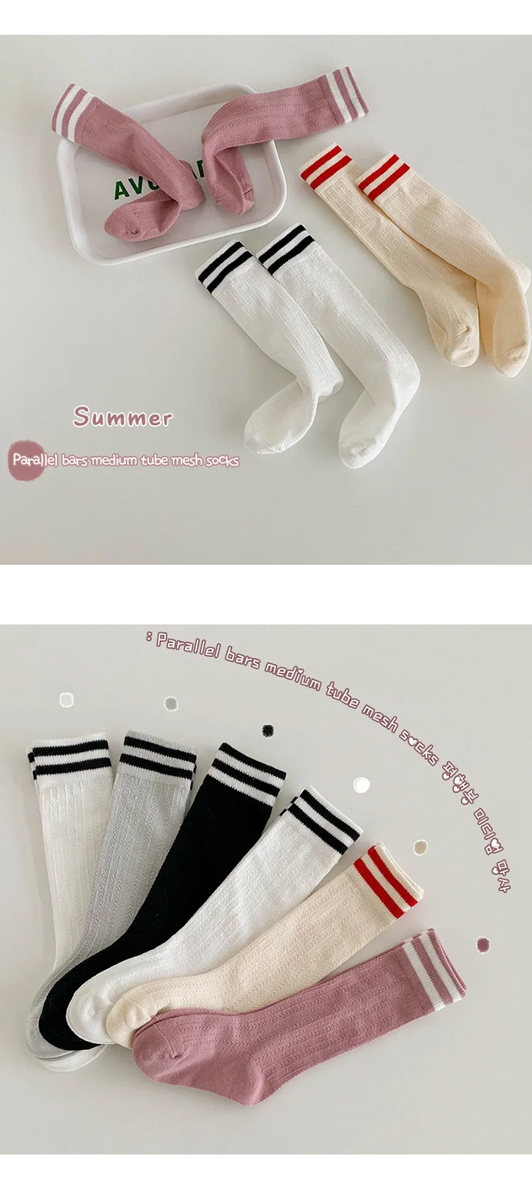 ベビー キッズ ライン メッシュ スクール ハイソックス 靴下 3足セット【mh0001223】