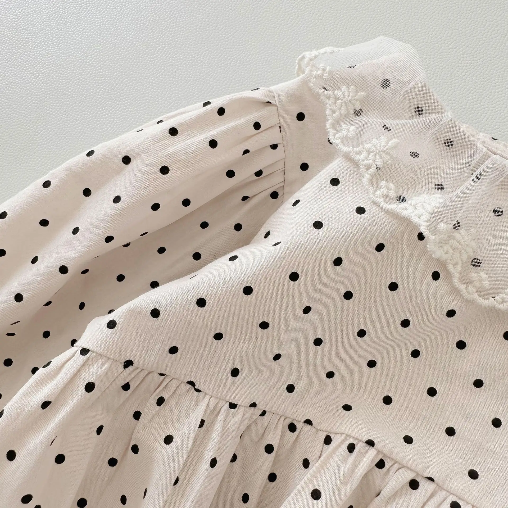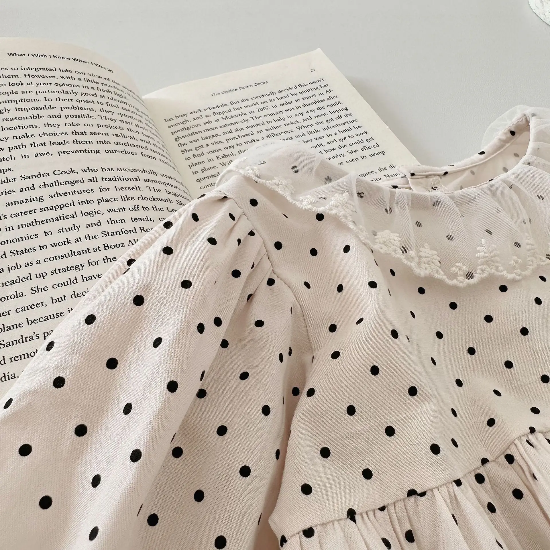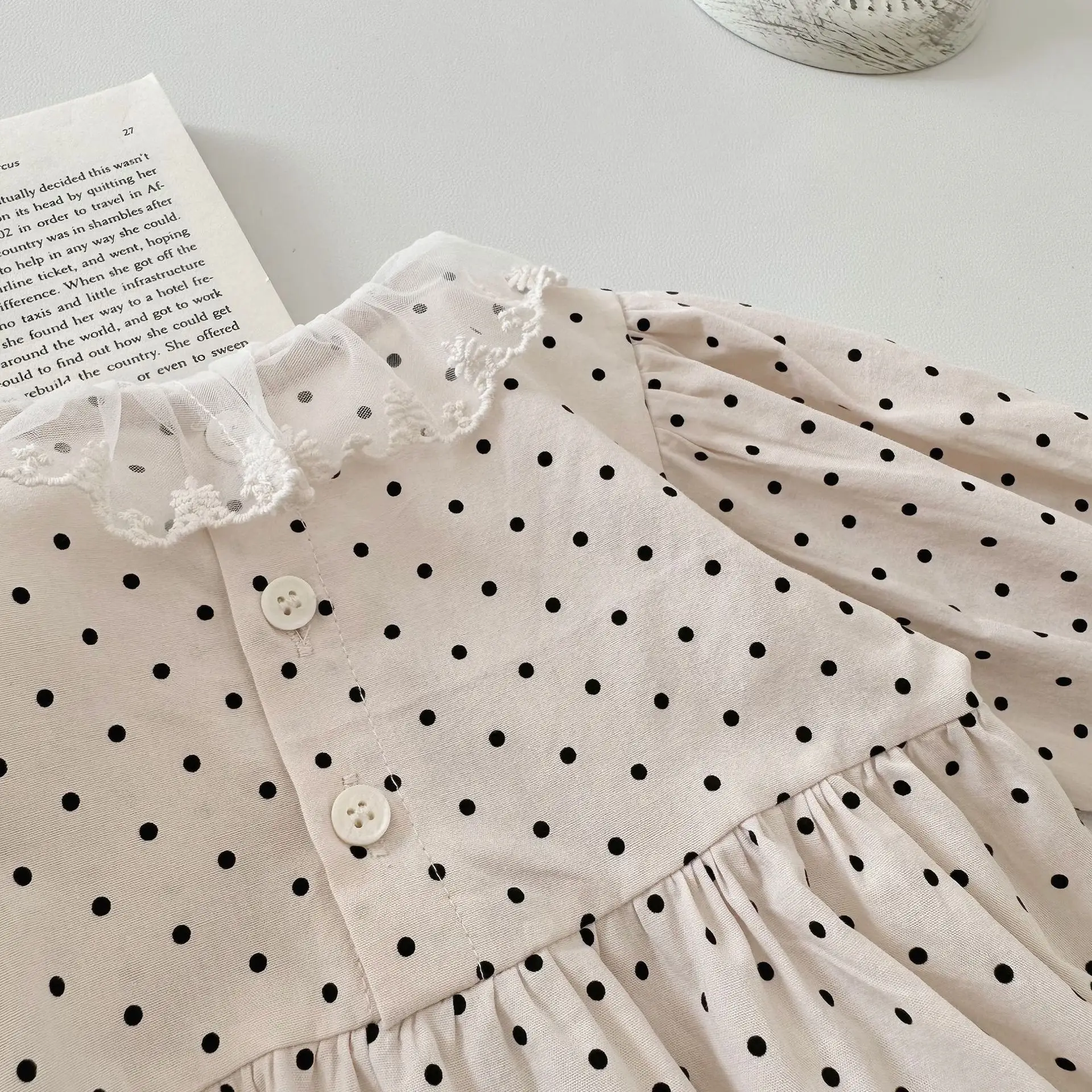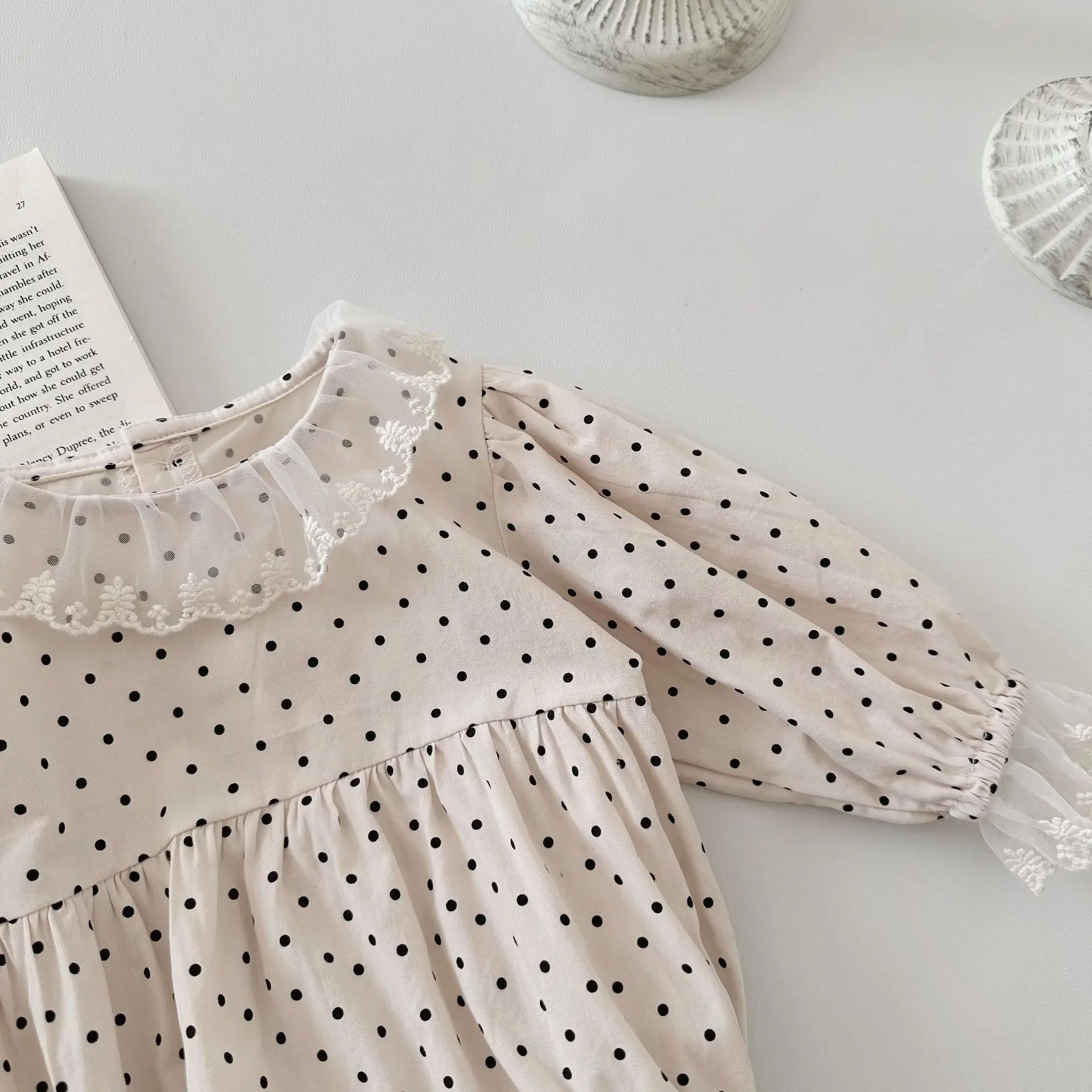 ベビーロンパース 長袖パフスリーブボディスーツ レース 水玉ドットプリント【mh0004666】