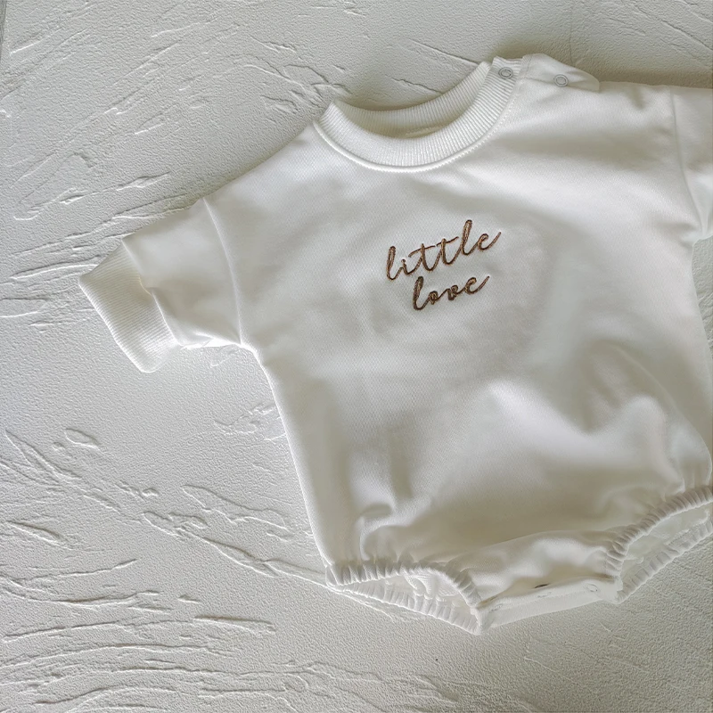 この可愛らしいベビーロンパースは、柔らかいコットン素材で作られています。半袖のボディスーツは、お子様に快適な着心地を提供し、一体型のデザインで着替えも簡単です。可愛いレターロゴ刺繍が、愛情と温かみを感じさせます。大切なお子様に最適な一着です。