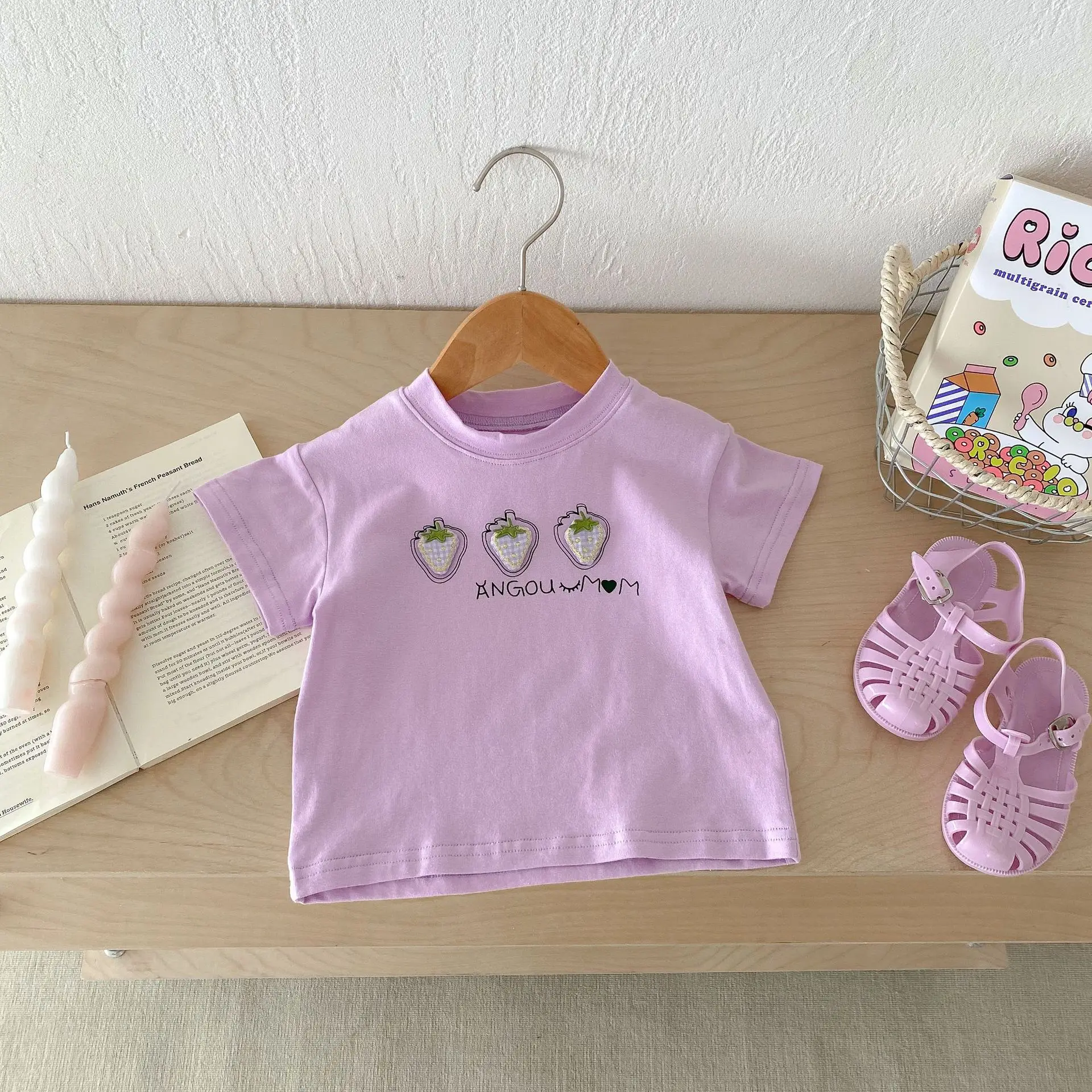ベビートップス 半袖Tシャツ いちごストロベリープリント 3カラー【mh0006101】