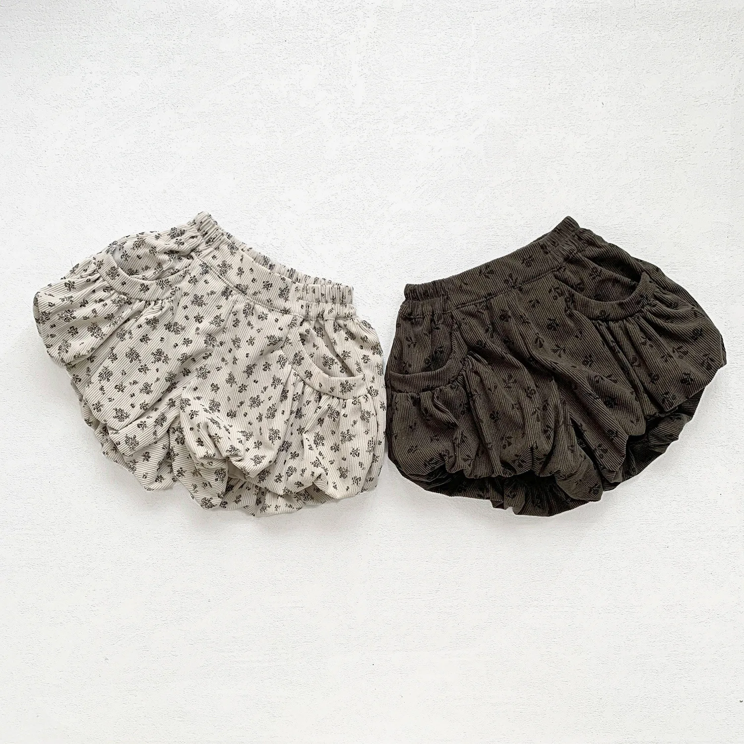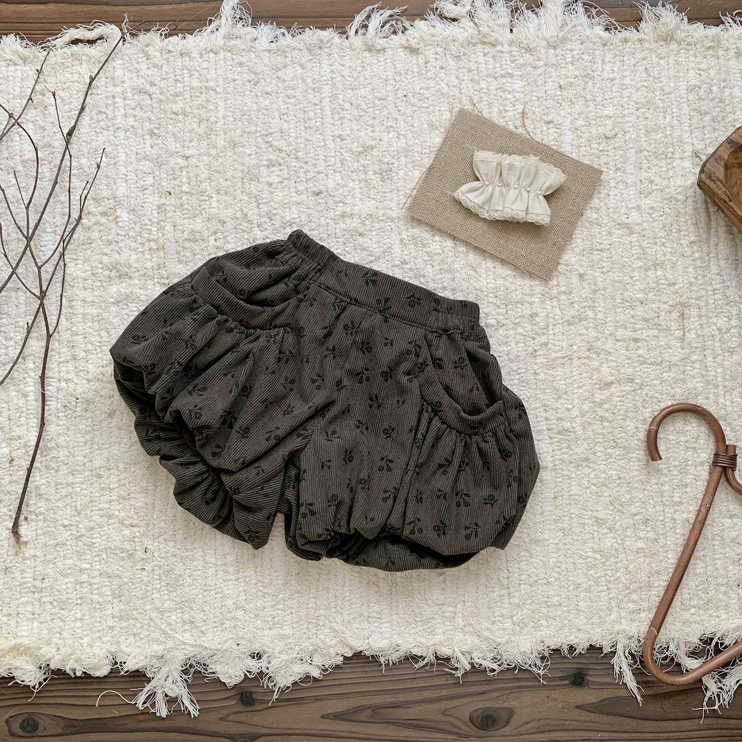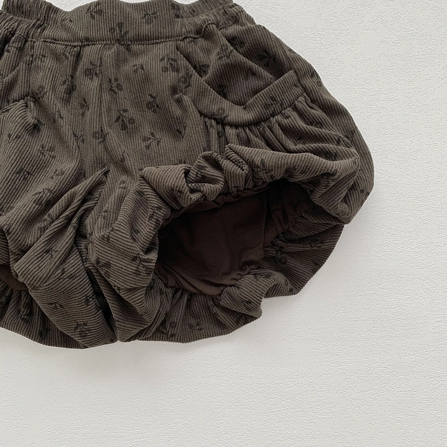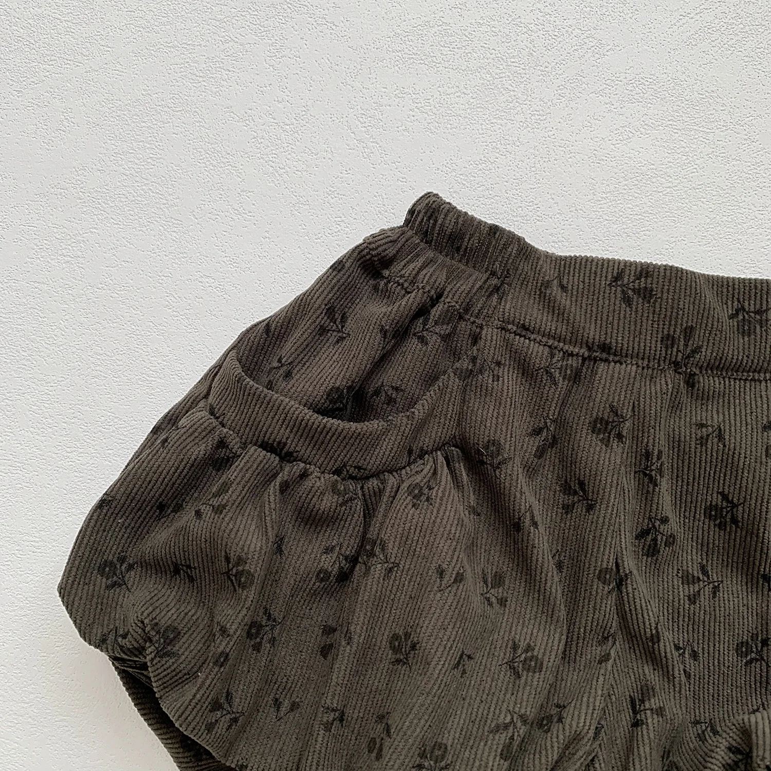 秋らしいフラワー小花柄が可愛いベビーキッズバルーンかぼちゃパンツ。柔らかなコーデュロイ素材で、2カラー展開。韓国風のデザインが特徴で、ふんわりとしたシルエットがキュートな印象を与えます。ウエストはゴム仕様で着脱が簡単、デイリーコーディネートにぴったりです。