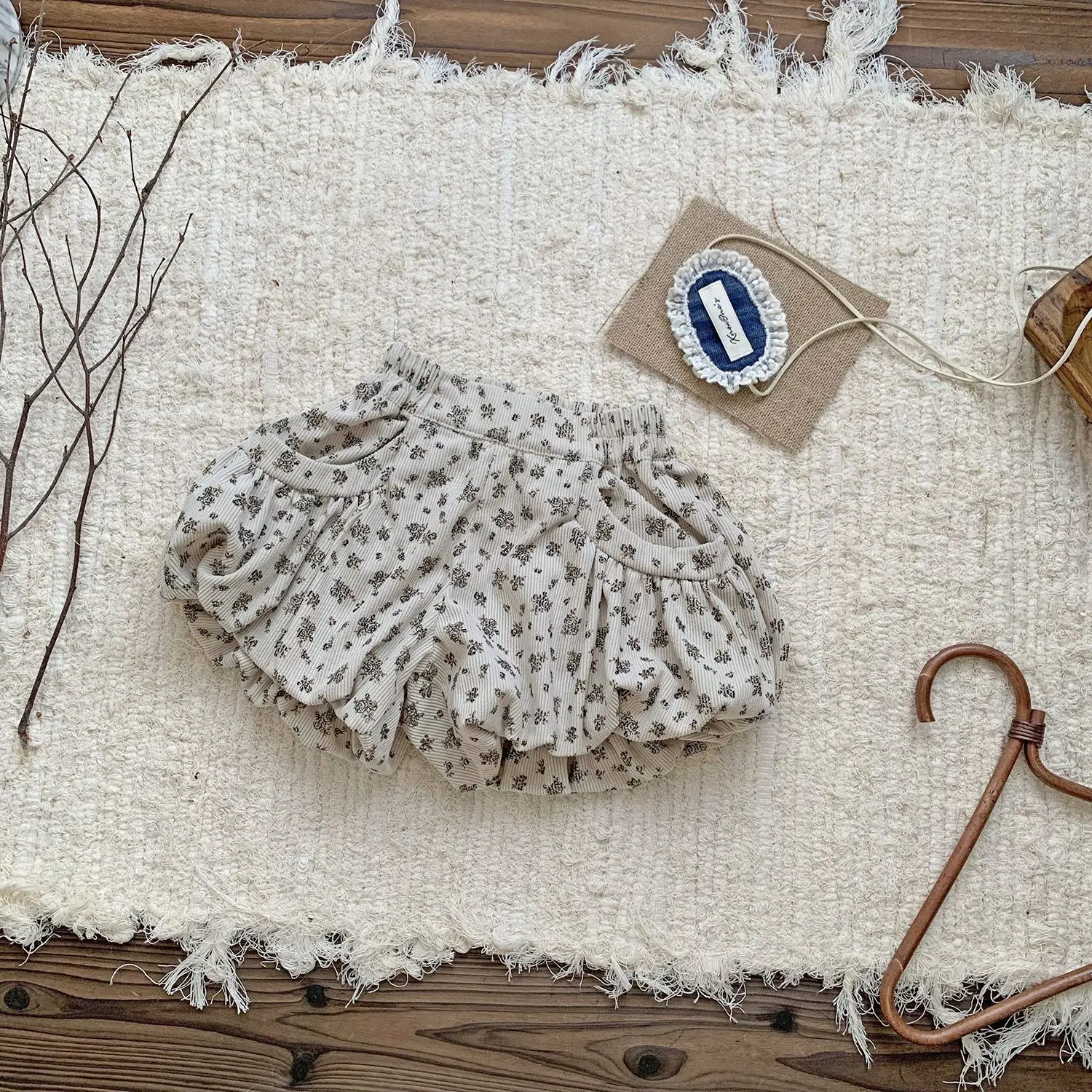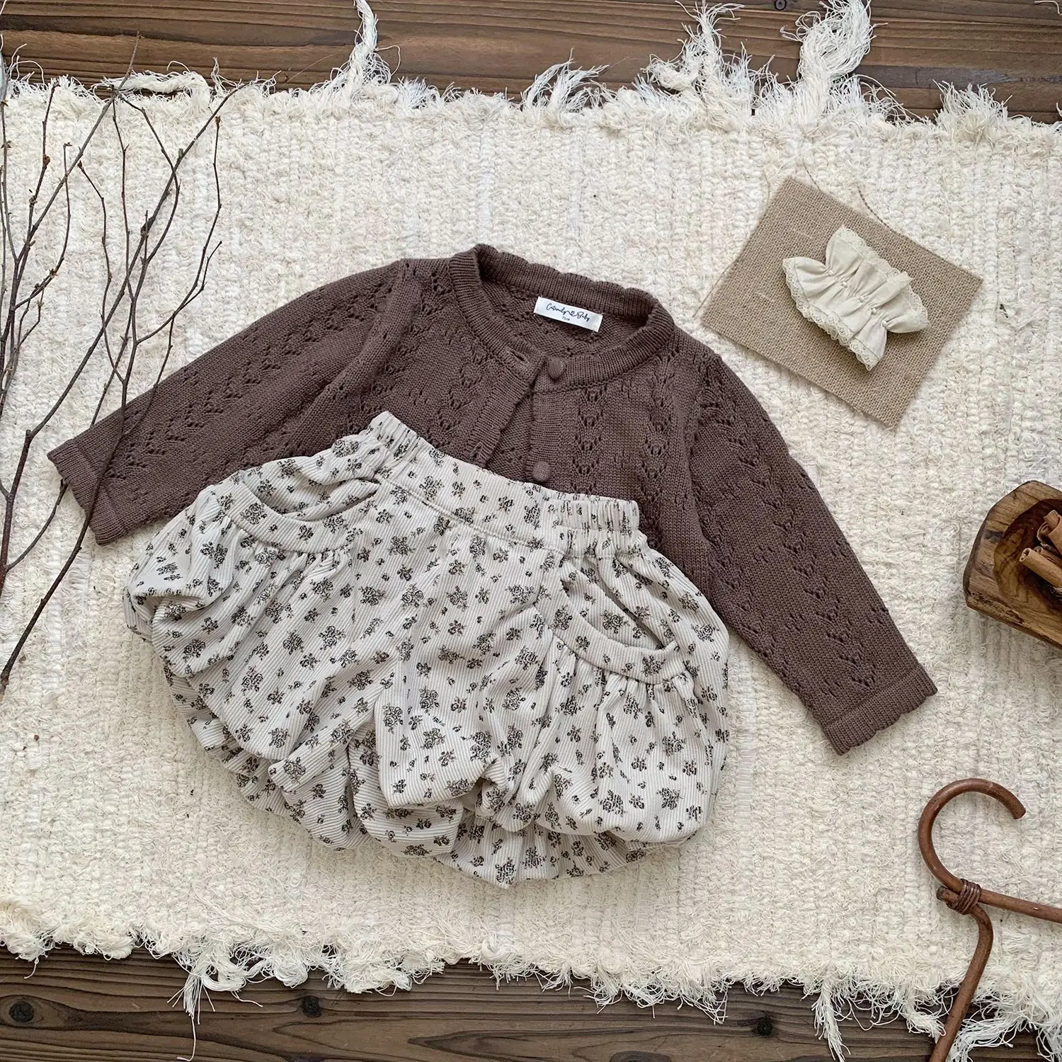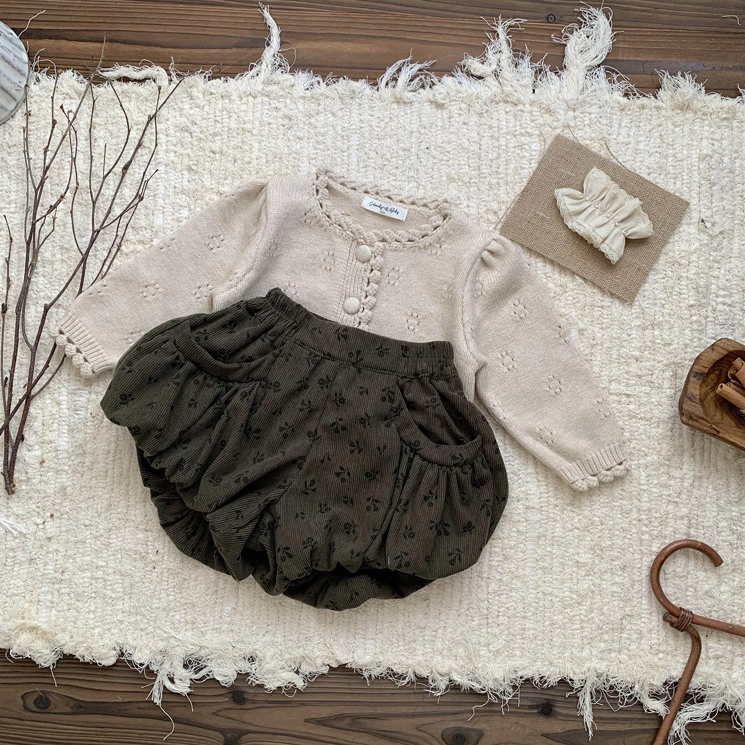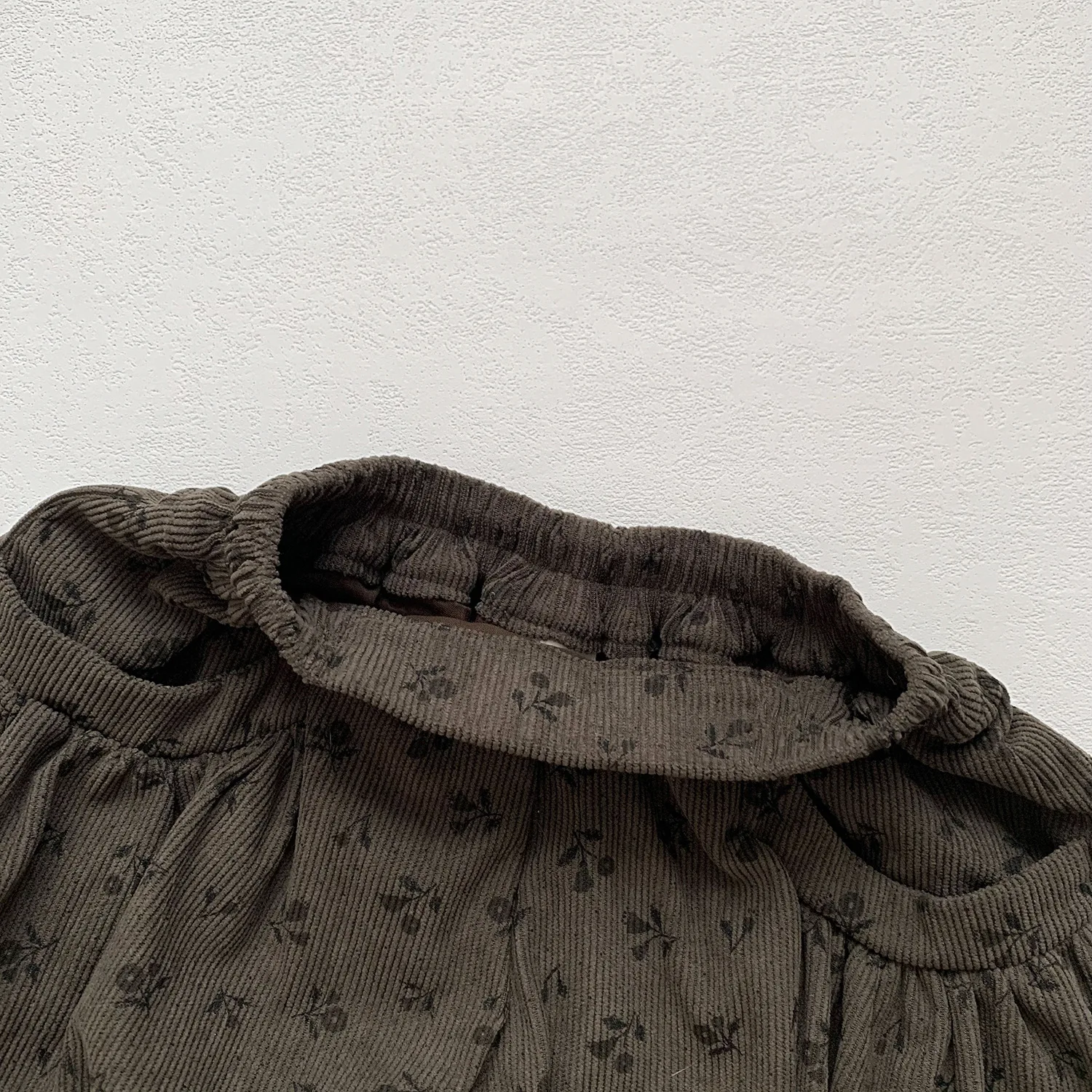 秋らしいフラワー小花柄が可愛いベビーキッズバルーンかぼちゃパンツ。柔らかなコーデュロイ素材で、2カラー展開。韓国風のデザインが特徴で、ふんわりとしたシルエットがキュートな印象を与えます。ウエストはゴム仕様で着脱が簡単、デイリーコーディネートにぴったりです。