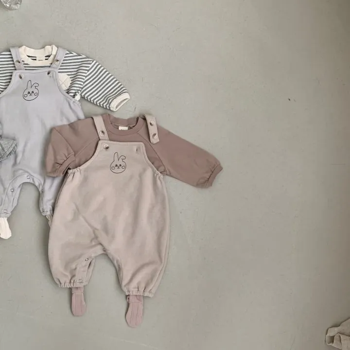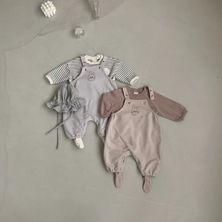 ベビートップス/ジャンプスーツ ボーダー長袖Tシャツ/うさぎオーバーオールロンパース【mh0006801】