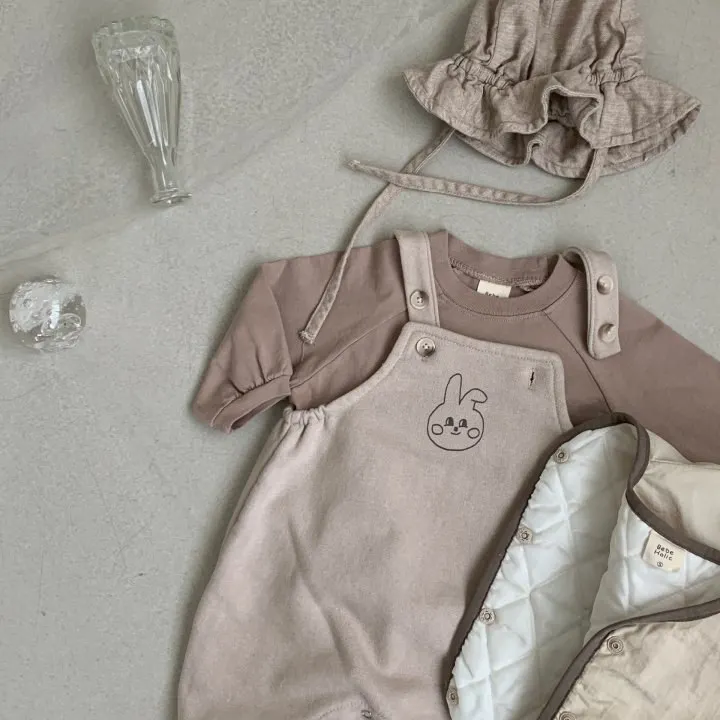 可愛いうさぎデザインのオーバーオールロンパースと、ボーダー長袖Tシャツのセットアップです。カジュアルで動きやすいスタイルは、赤ちゃんの日常着にぴったり。柔らかなコットン素材で作られており、肌触りが良く快適に過ごせます。シンプルながらも可愛らしさを引き立てるデザインで、男の子にも女の子にも合わせやすい一着です。