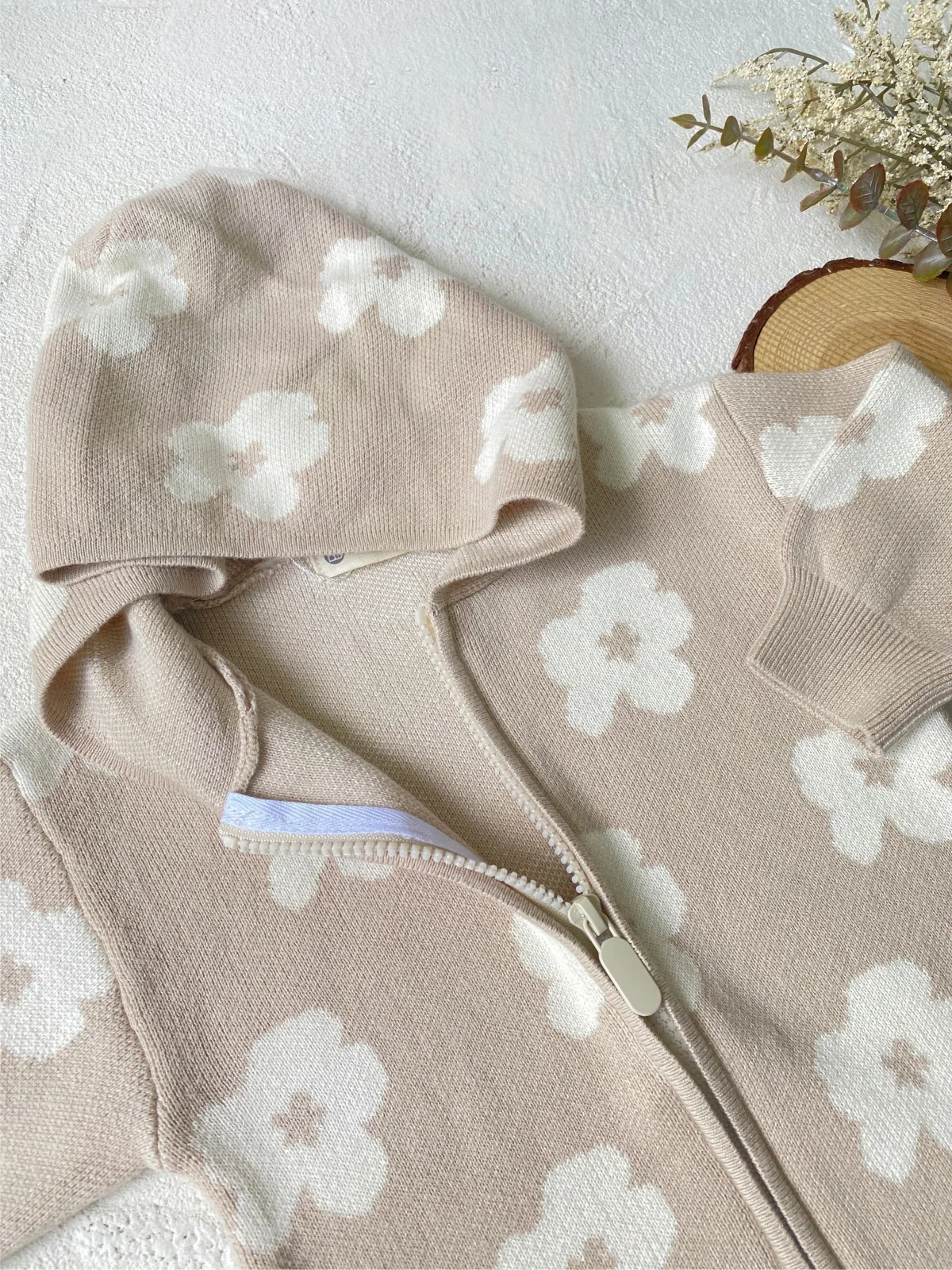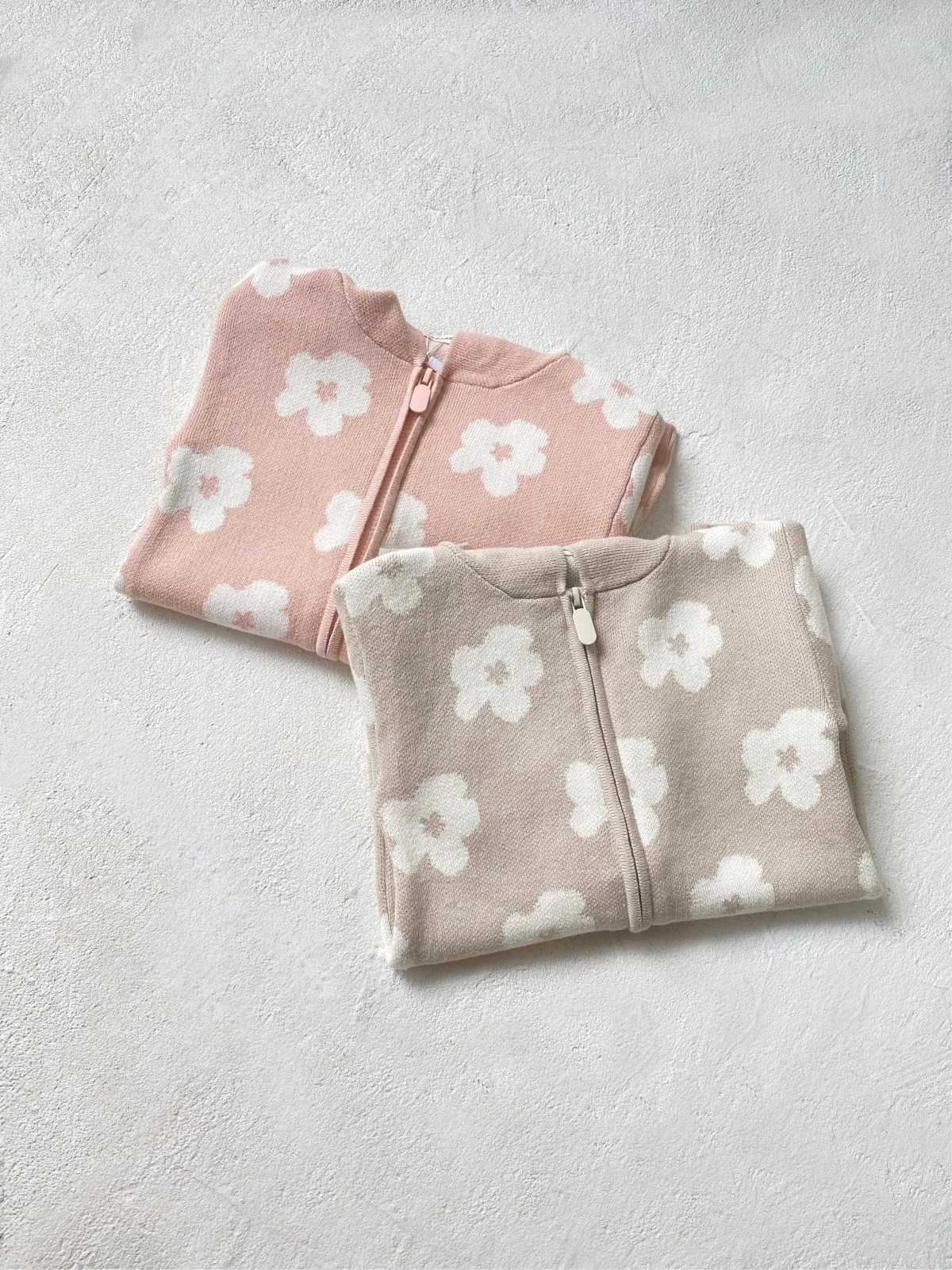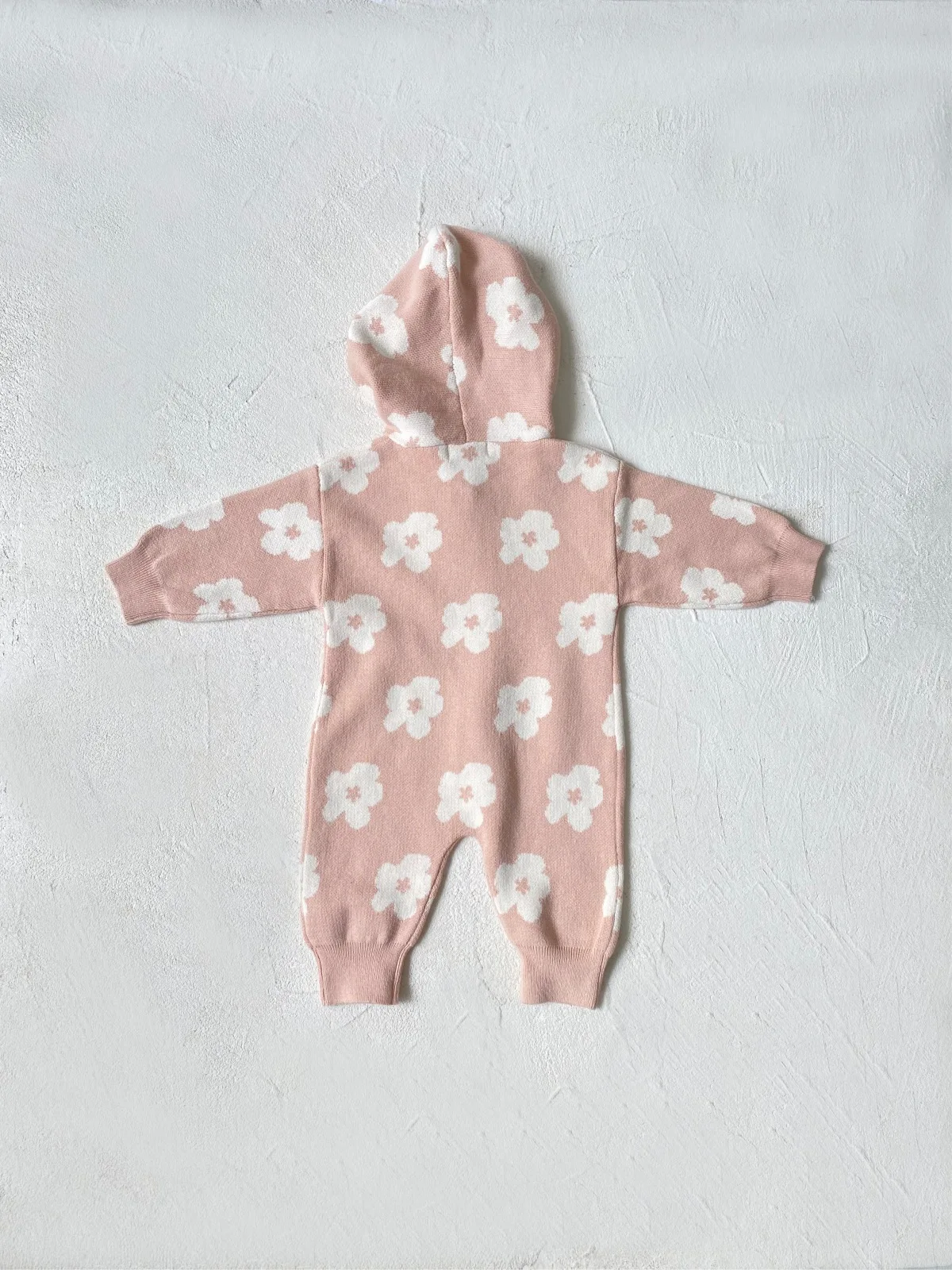 #ベビージャンプスーツ #ニットフーディ #フラワー柄 #長袖ロンパース #ジップアップ #赤ちゃん服
