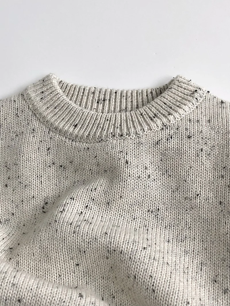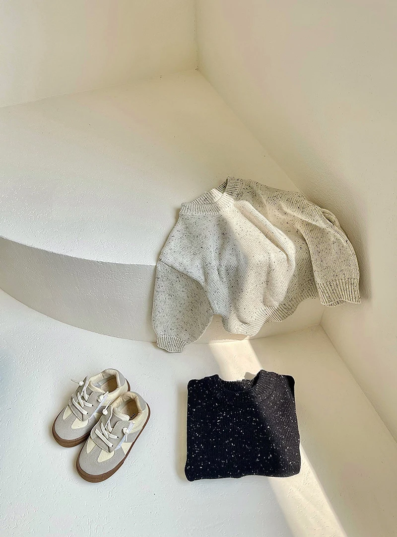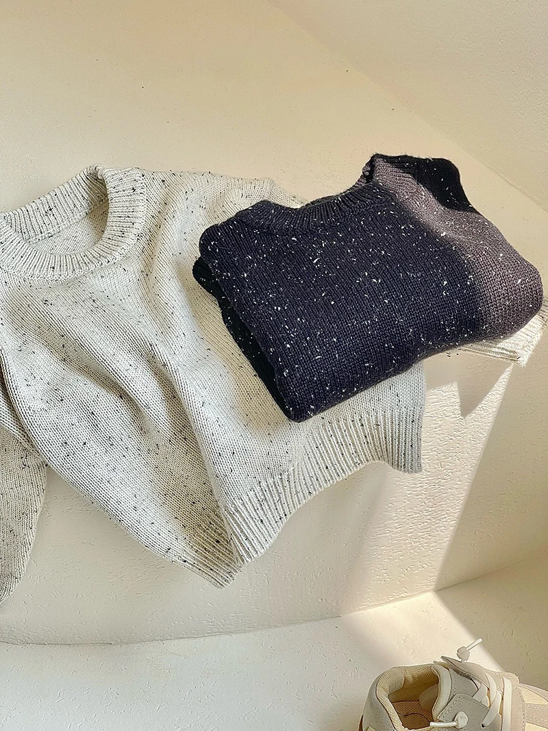 カラフルなネップが可愛い、秋冬にぴったりのキッズ用ニットセーターです。ゆったりとしたシルエットと丸首デザインで、男の子も女の子もおしゃれに着こなせます。柔らかいニット素材が暖かさと快適さを提供し、デイリーユースに最適。2カラー展開で、さまざまなスタイルに合わせやすい万能アイテムです。