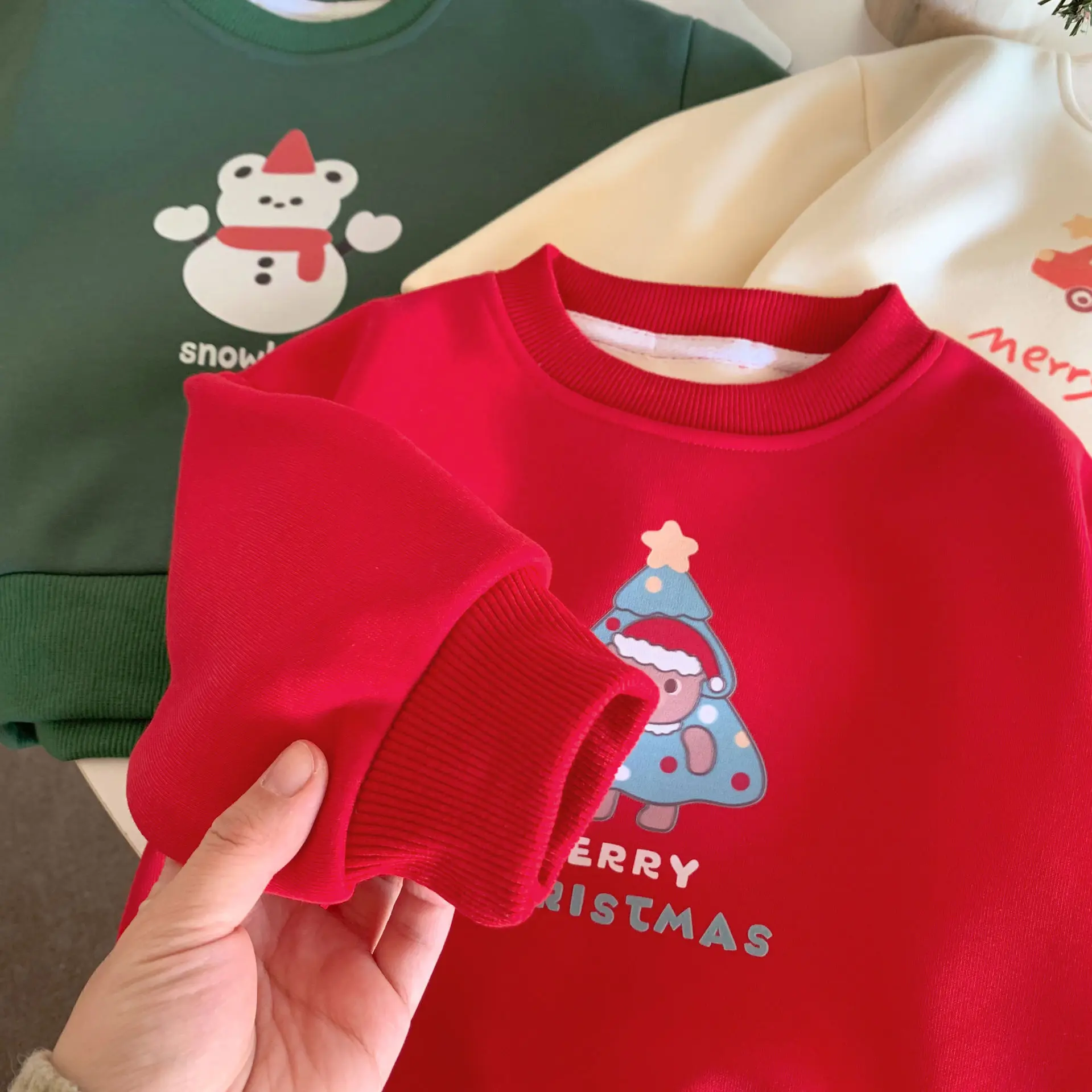 クリスマスプリントの裏フリース長袖スウェットトレーナーは、冬にぴったりの楽しいアイテムです。このトレーナーは、柔らかなフリース素材を使用しており、温かさと快適さを兼ね備えています。可愛らしいクリスマスのキャラクターがプリントされており、季節感を楽しむことができます。プルオーバータイプのデザインは着脱が簡単で、日常使いや特別な日のお出かけにも最適です。厚手の作りで保温性も高く、寒い冬の日にも安心して着用できます。このスウェットトレーナーで、楽しい冬のおしゃれを楽しんでください。