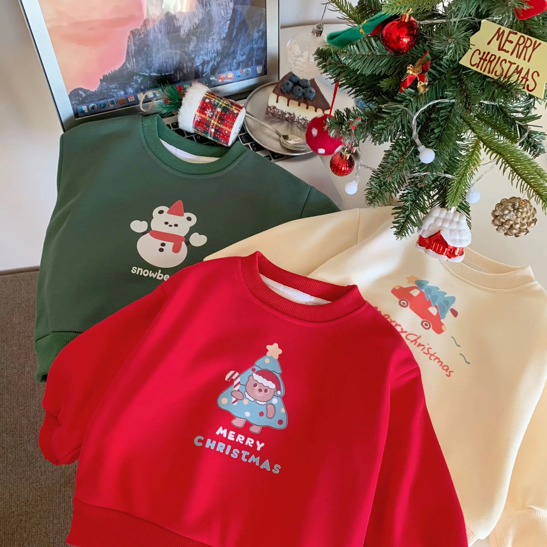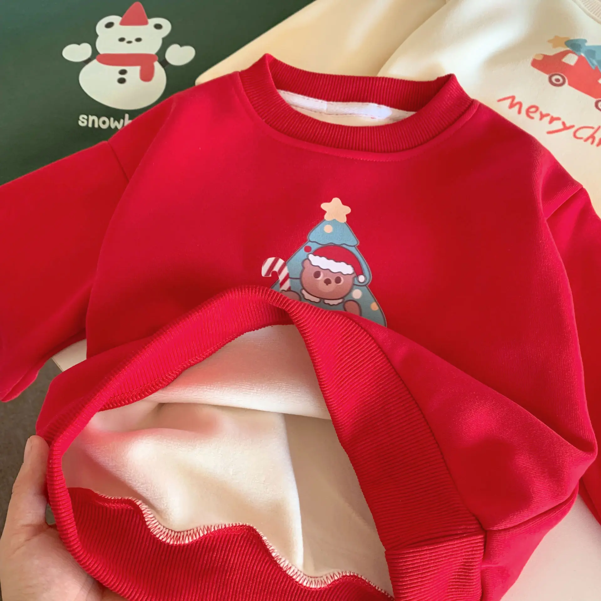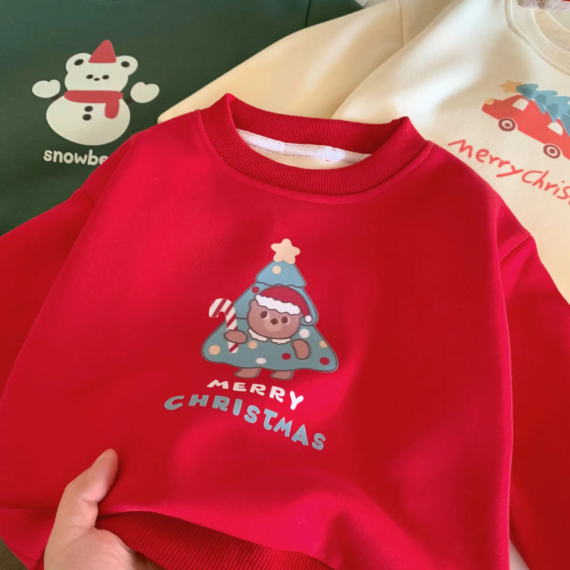 キッズトップス クリスマスプリント裏フリース長袖スウェットトレーナー【mh0008212】