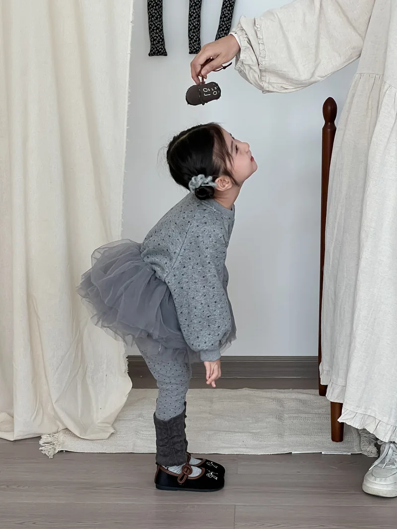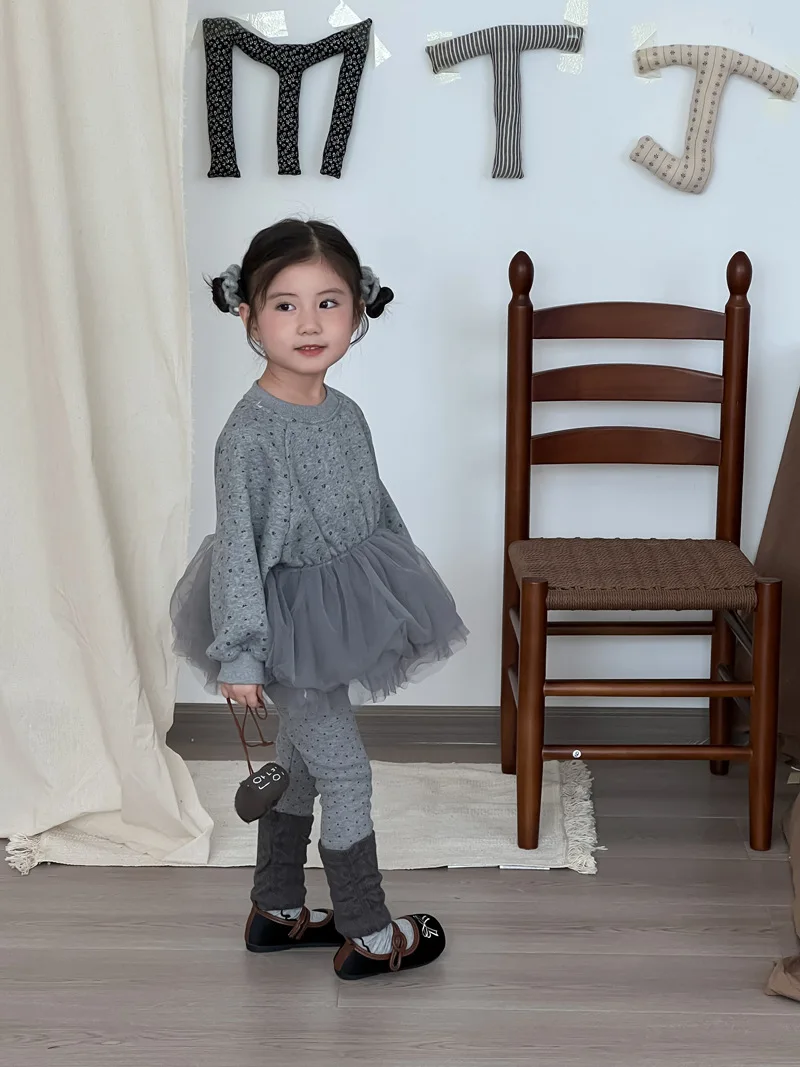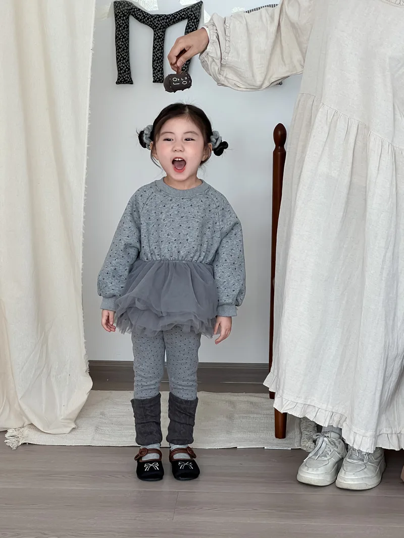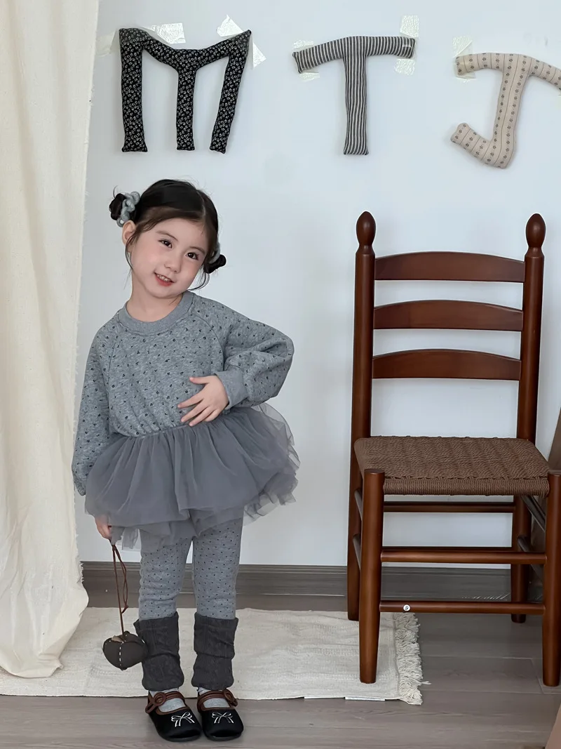 キッズトップス/パンツ チュチュチュールペプラムドッキング裏フリース長袖スウェットシャツ/レッグウォーマードッキングレギンスパンツ【mh0008229】