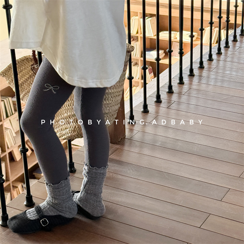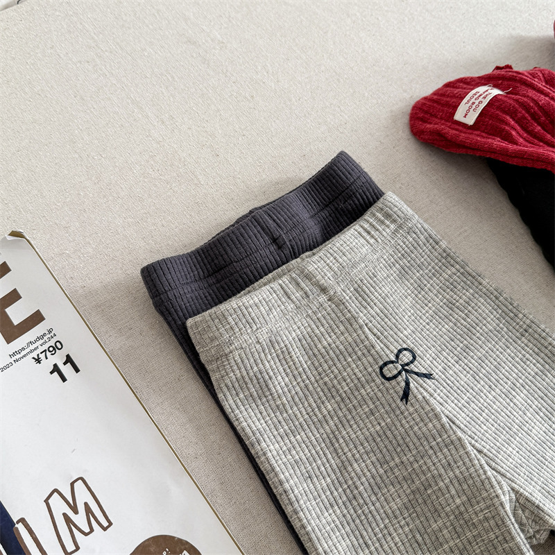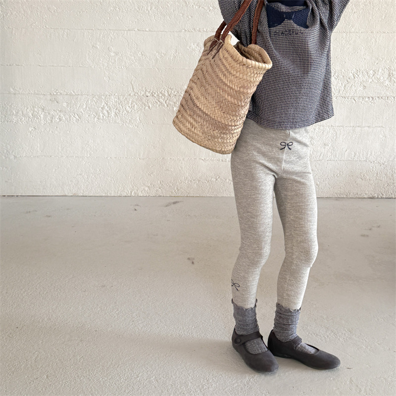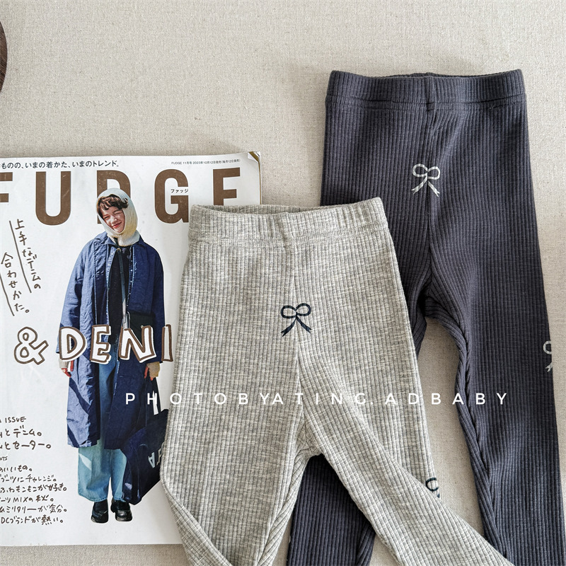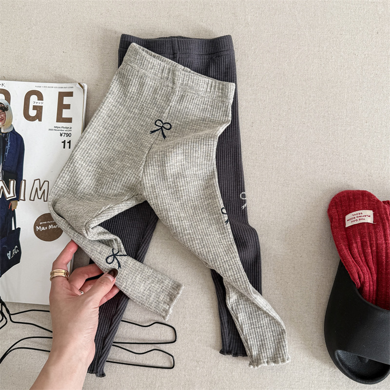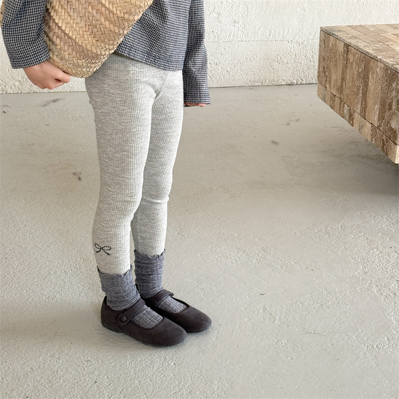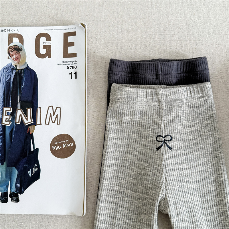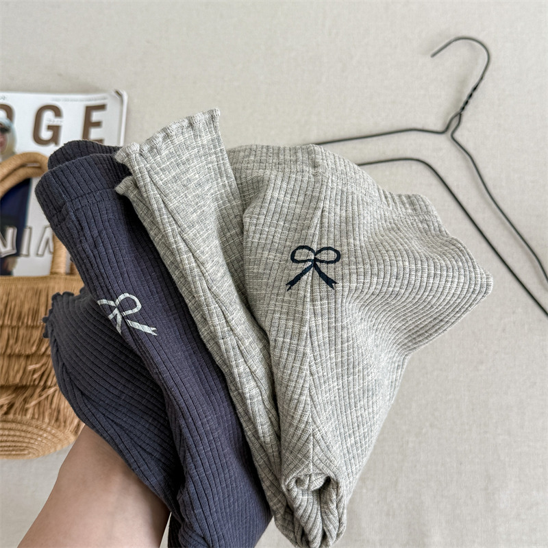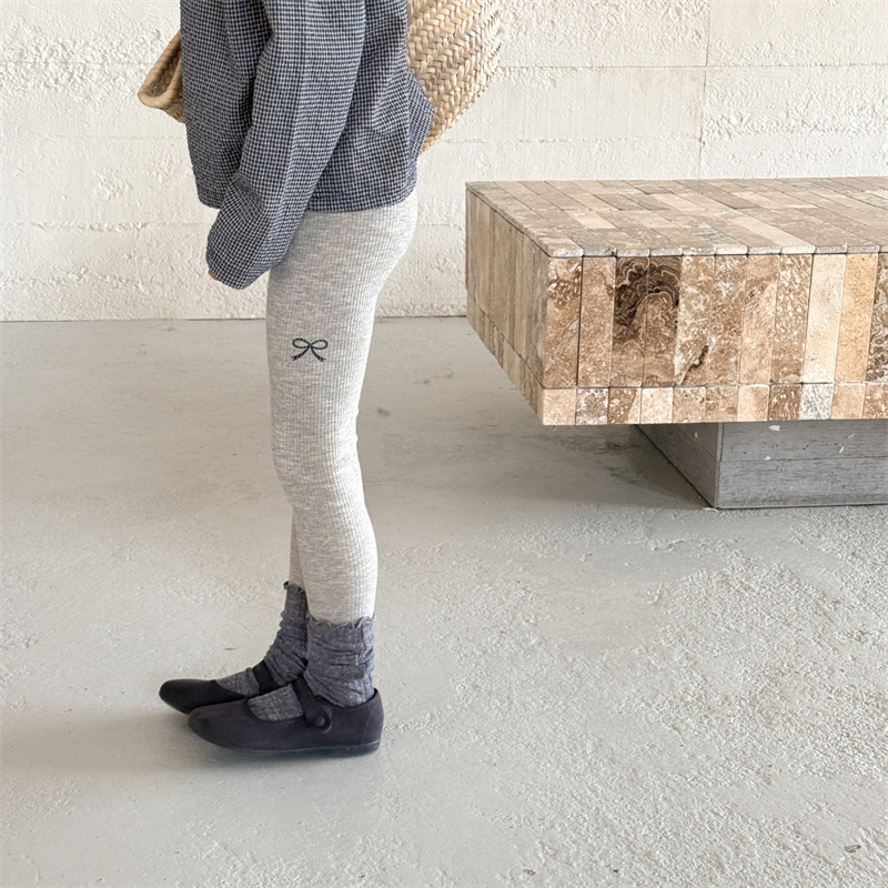 リボンプリントがアクセントになったリブレギンスパンツ。柔らかく伸縮性のあるリブ素材で、動きやすく快適な履き心地です。シンプルながらも可愛らしいデザインで、トップスやワンピースと合わせやすく、カジュアルにもガーリーにも着こなせます。デイリーコーデに取り入れやすいアイテムです。