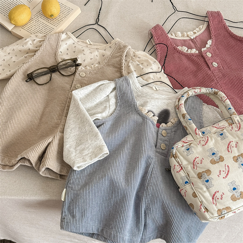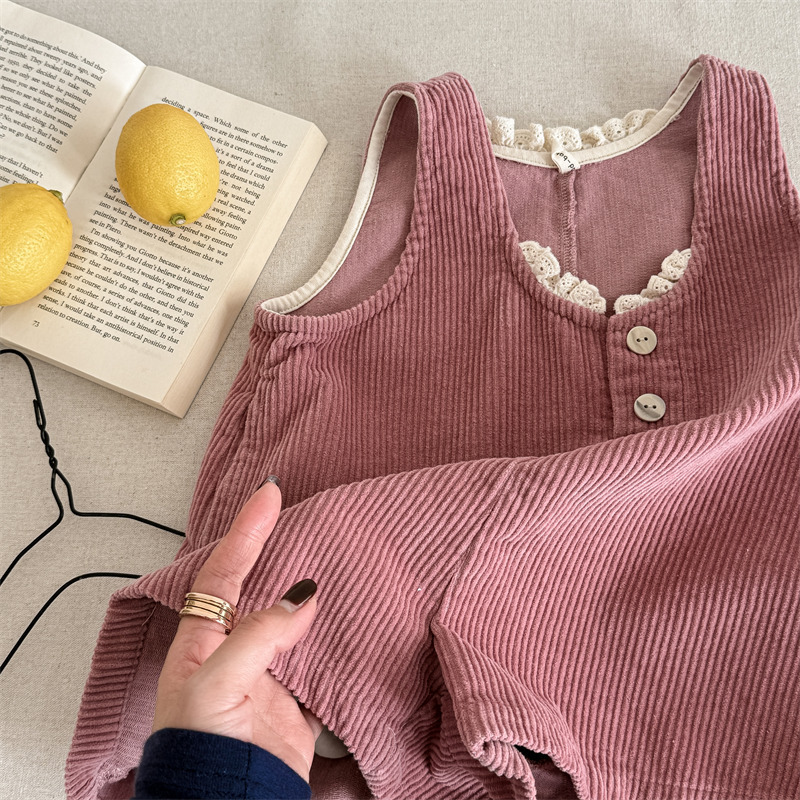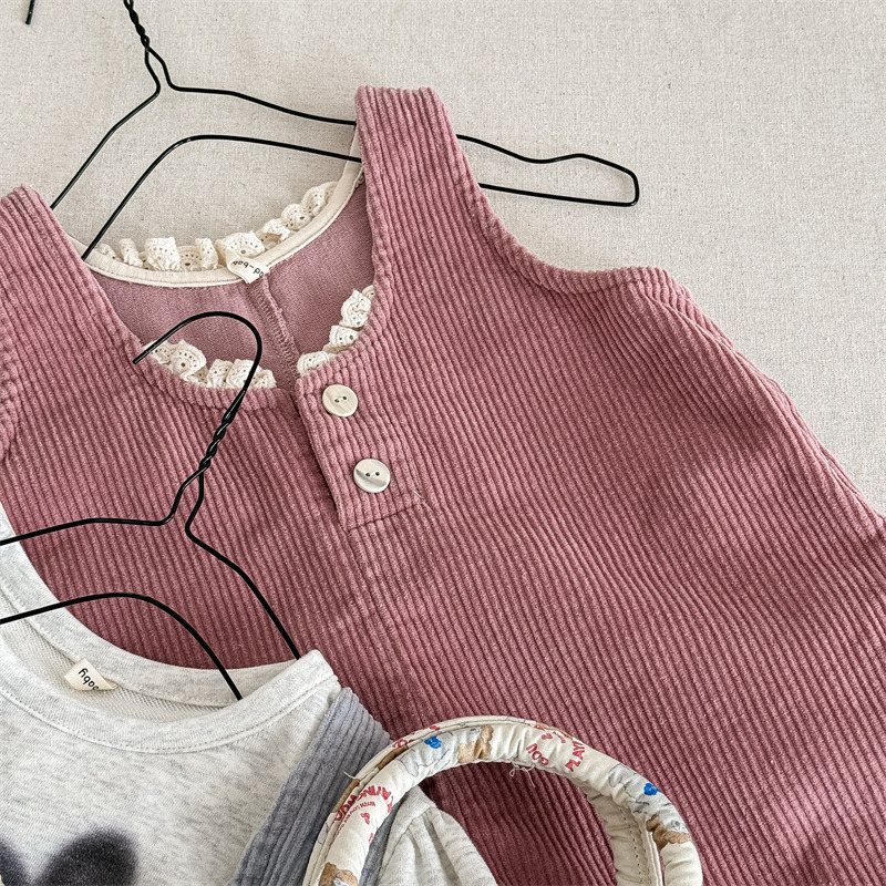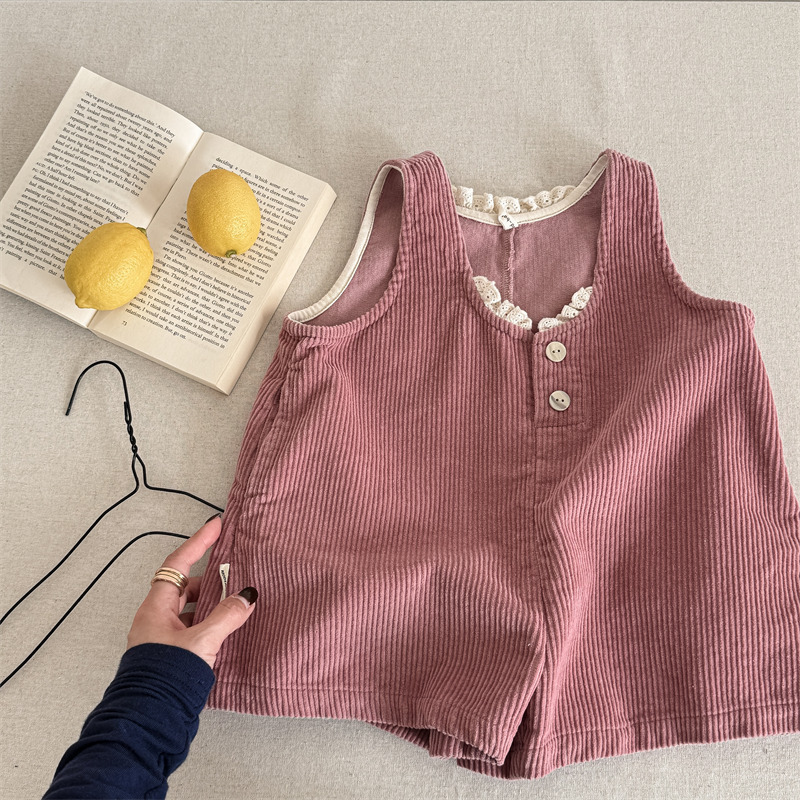 キッズサロペット コーデュロイショートノースリーブジャンプスーツ【mh0008984】