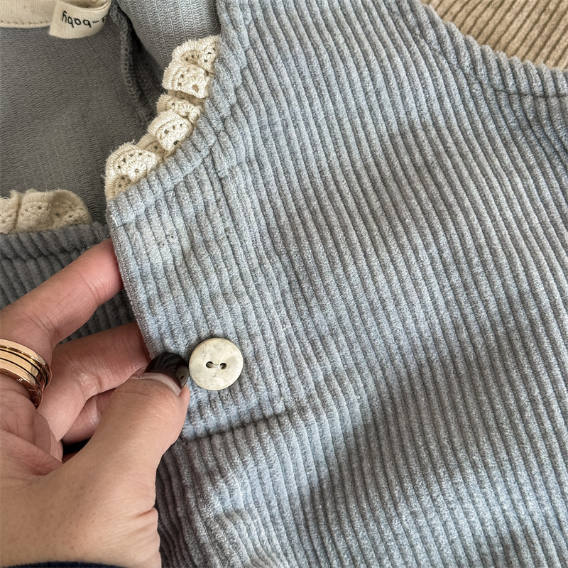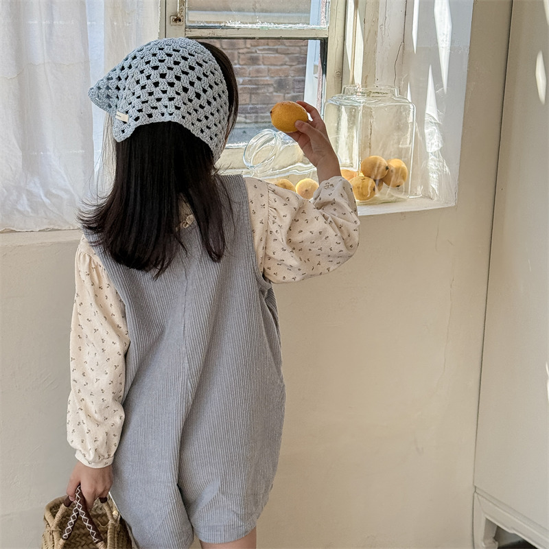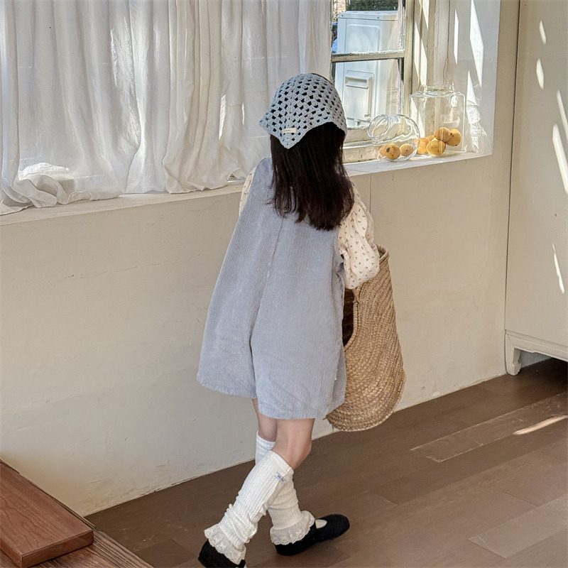 コーデュロイ素材のショートノースリーブジャンプスーツ。柔らかな肌触りと温かみのあるデザインが特徴です。カジュアルでありながら、スタイリッシュな印象を与え、日常使いにぴったりの一着です。Tシャツやブラウスと重ねて着ることで、コーディネートの幅が広がります。アクティブな子供たちに最適なアイテムです。