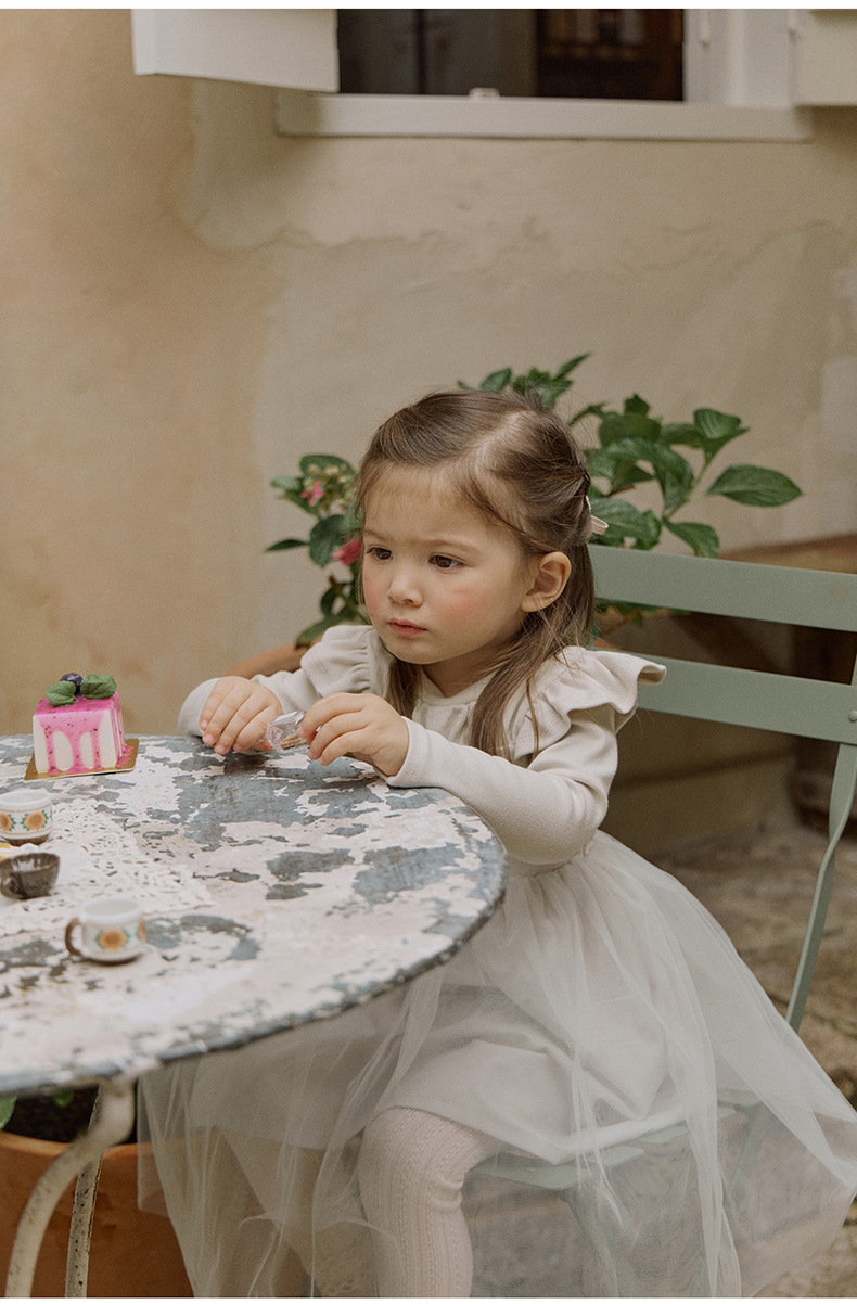 #キッズワンピース #チュールスカート #ショルダーフリル #ドッキングワンピース #長袖ワンピース #おしゃれキッズ