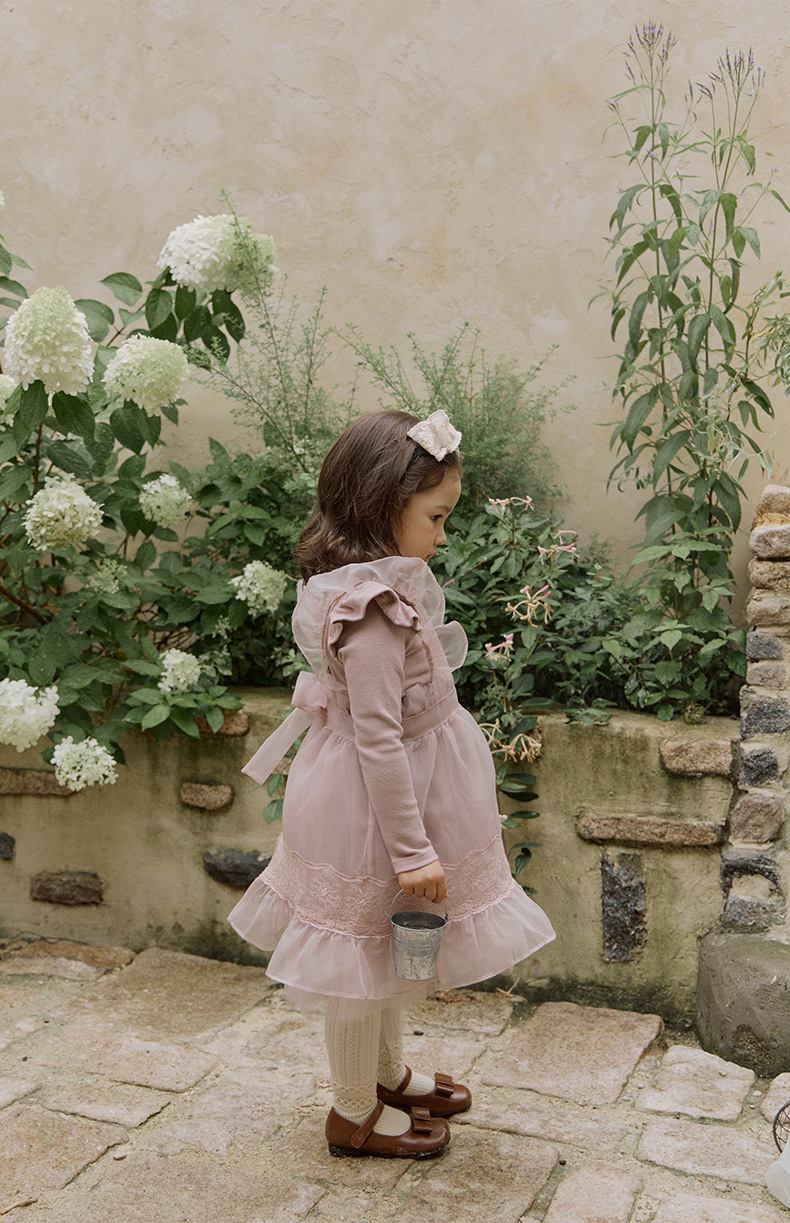 ショルダーフリルのカットソートップスと、ふんわり広がるチュールスカートがドッキングされた長袖ワンピースが登場しました。トップス部分は柔らかいカットソー素材で動きやすく、スカート部分は軽やかなチュールが重なり、華やかな印象を演出。ショルダーのフリルがさりげない可愛らしさをプラスし、一枚でコーディネートが完成します。デイリー使いはもちろん、お出かけや特別なシーンにもぴったりなワンピースです。