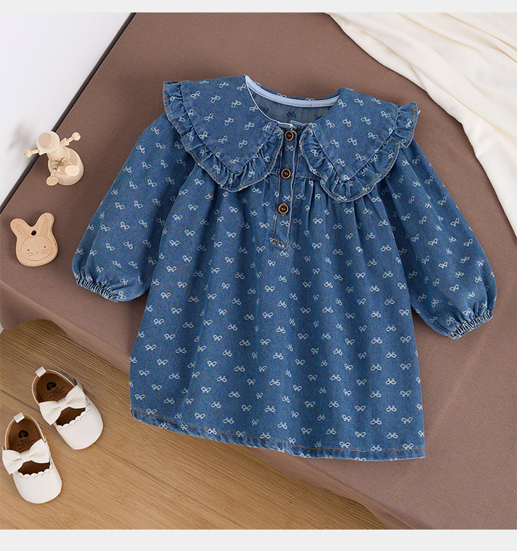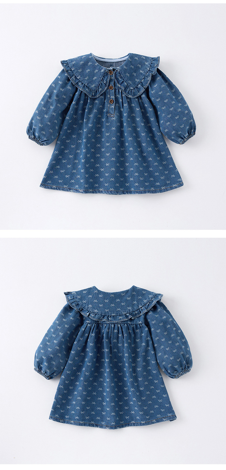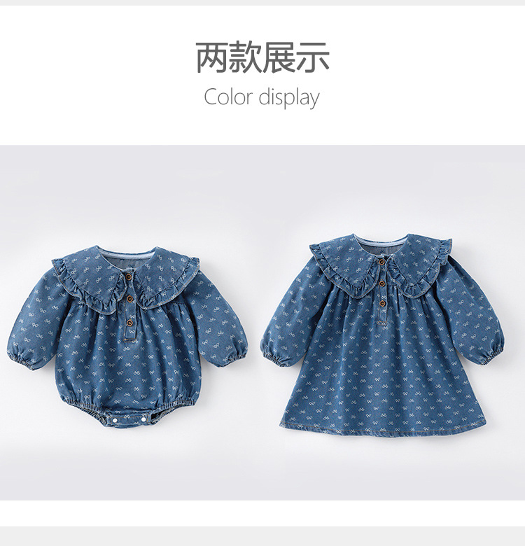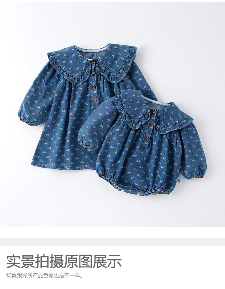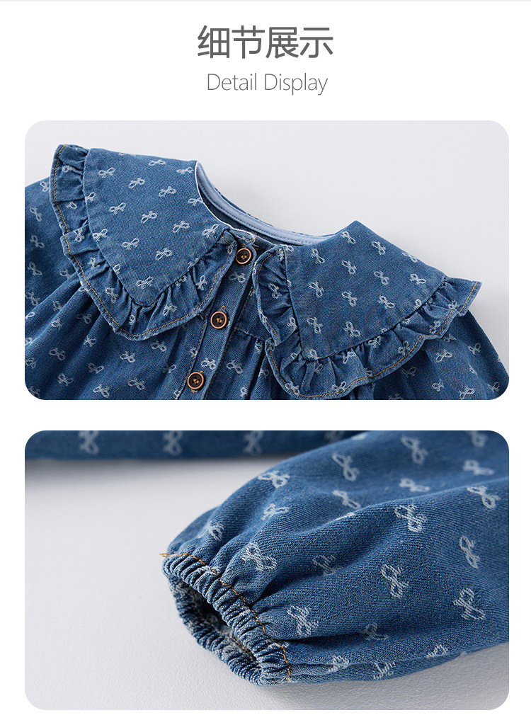 ベビーロンパース/ワンピース リボンプリントフリル襟デニム長袖ボディスーツ/ワンピース【mh0009183】