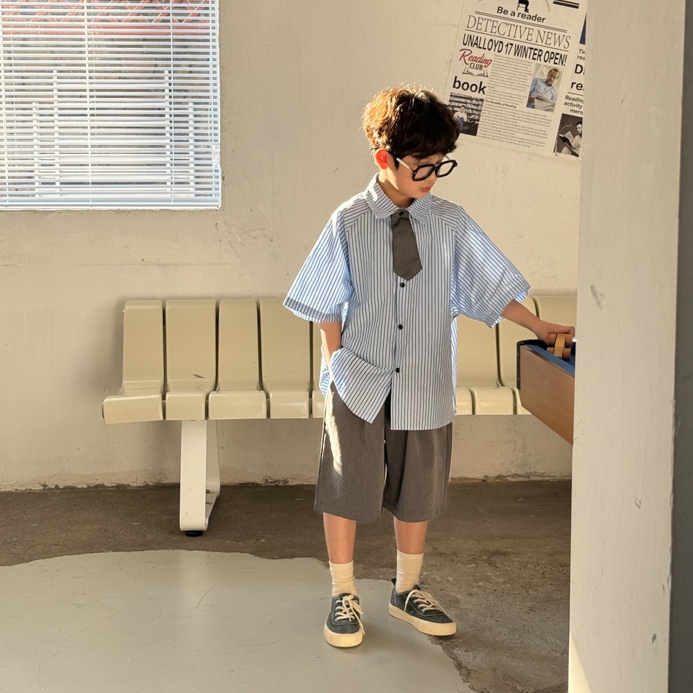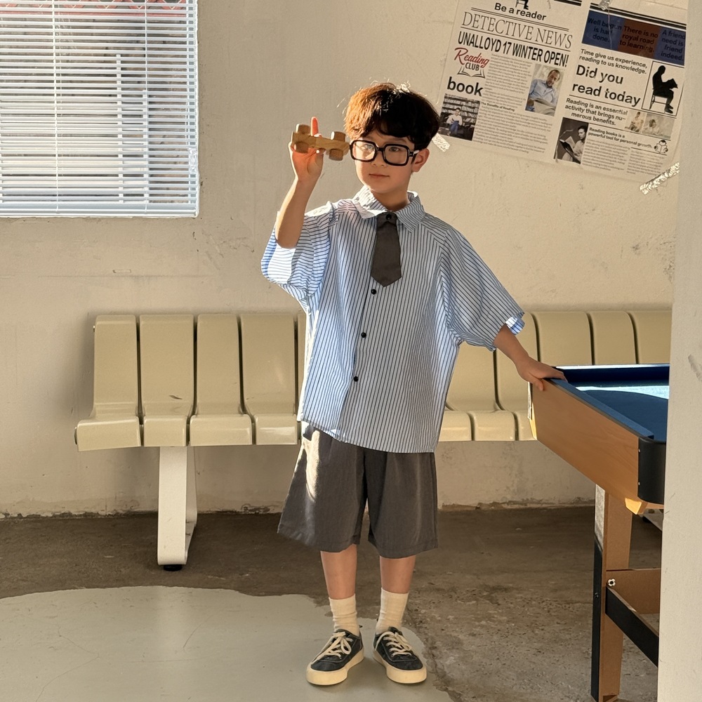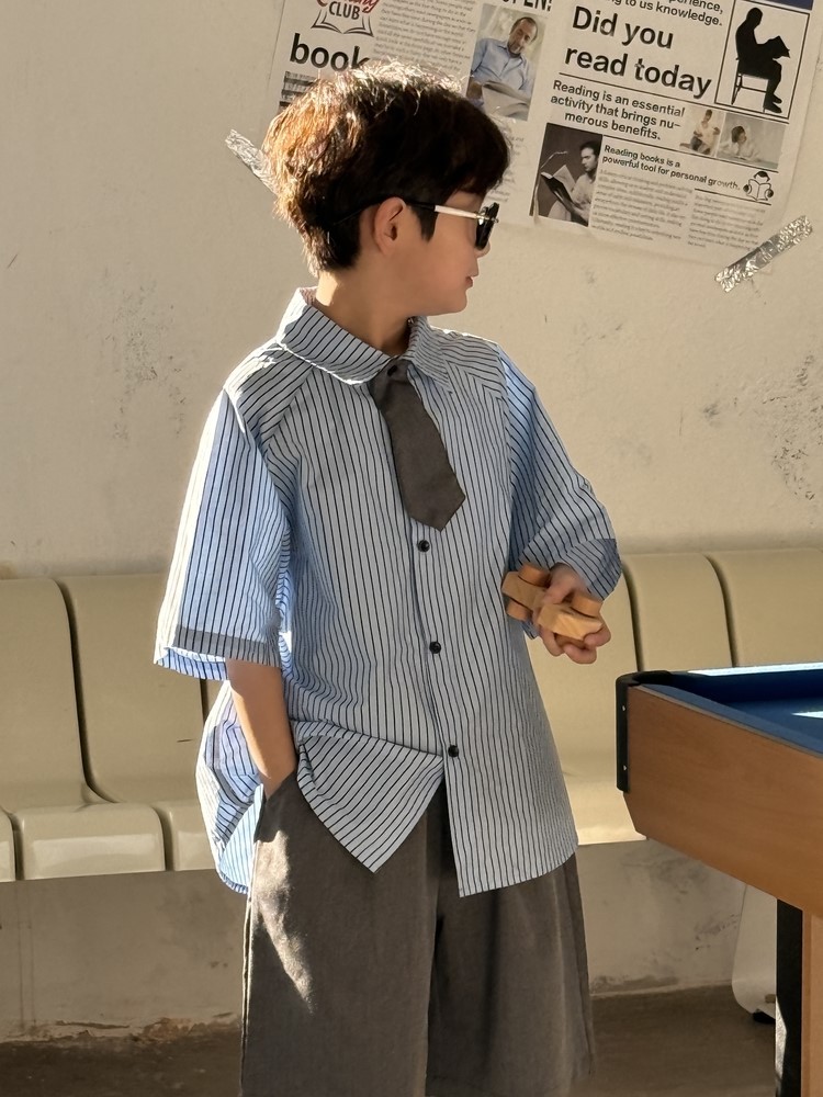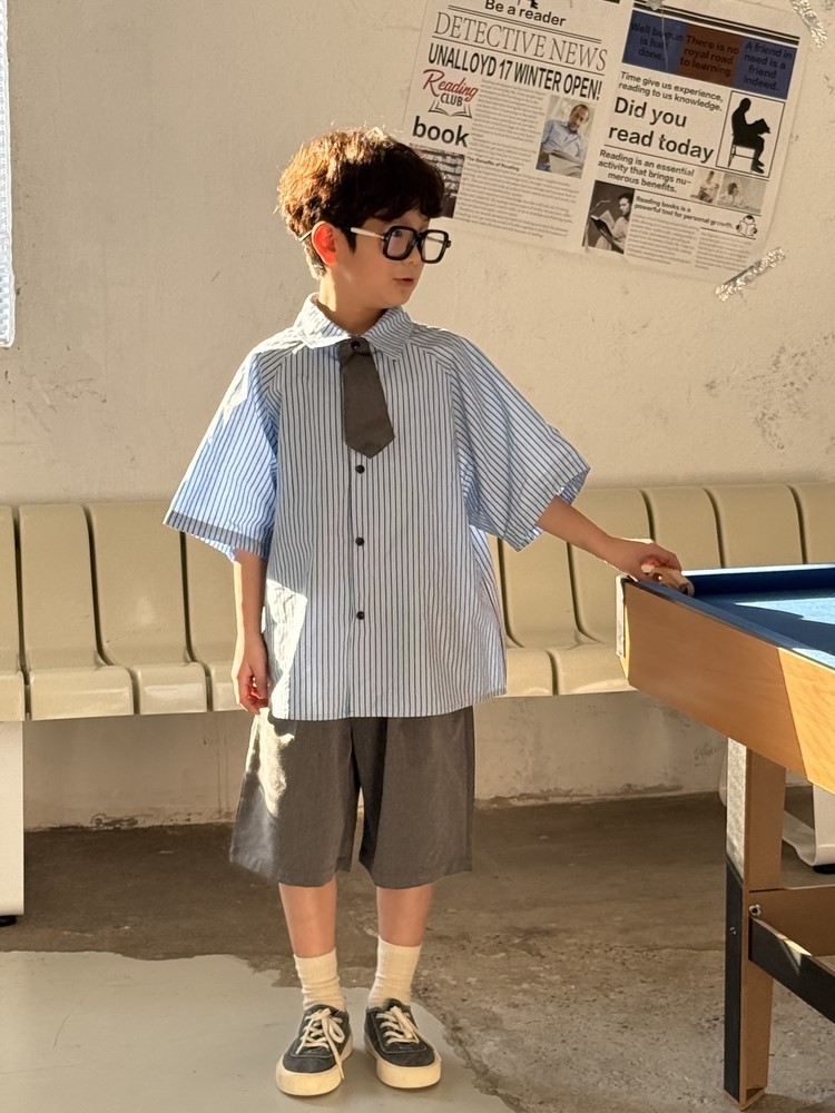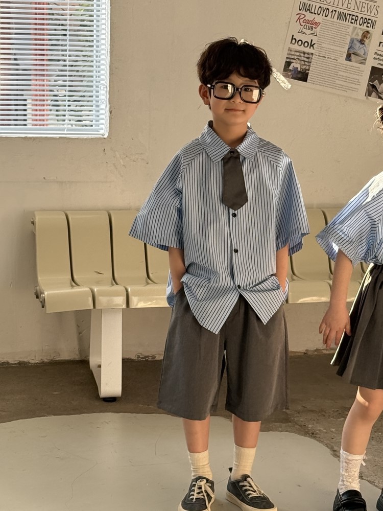 まるで海外のスクールユニフォームのような、おしゃれなキッズ用半袖セットアップです。きちんと感がありながらも、カジュアルに着こなせるデザインが魅力。男の子にも女の子にも似合うユニセックスな雰囲気で、普段使いにはもちろん、ちょっとしたお出かけにもぴったりです。上下別々にも着られるので、コーディネートの幅が広がります。春の装いを、ちょっぴりアカデミックなスタイルにアップデートしてみませんか。