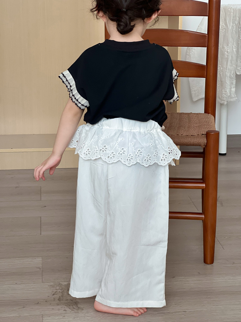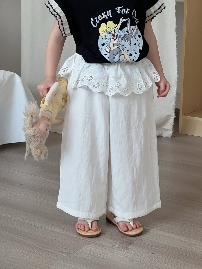 #キッズパンツ #子供服 #女の子 #ワイドパンツ #ルーズパンツ #レース #ペプラム #春夏子供服 #イージーパンツ