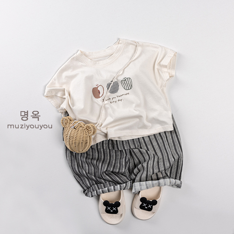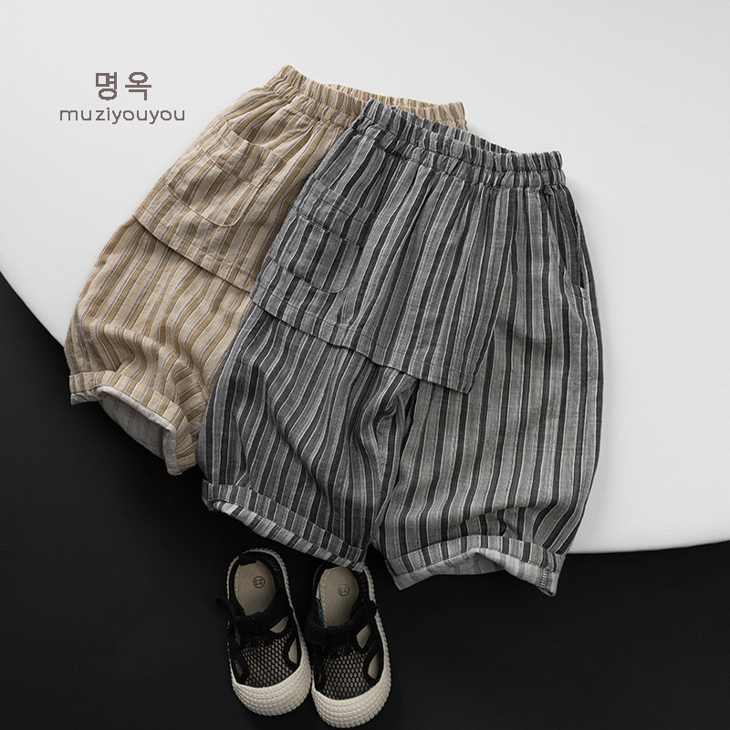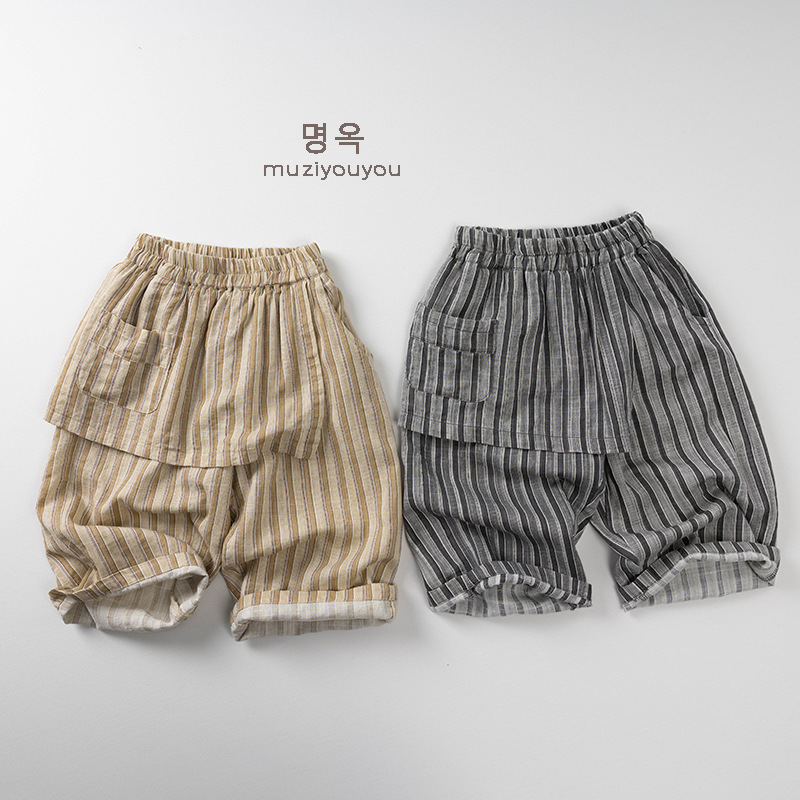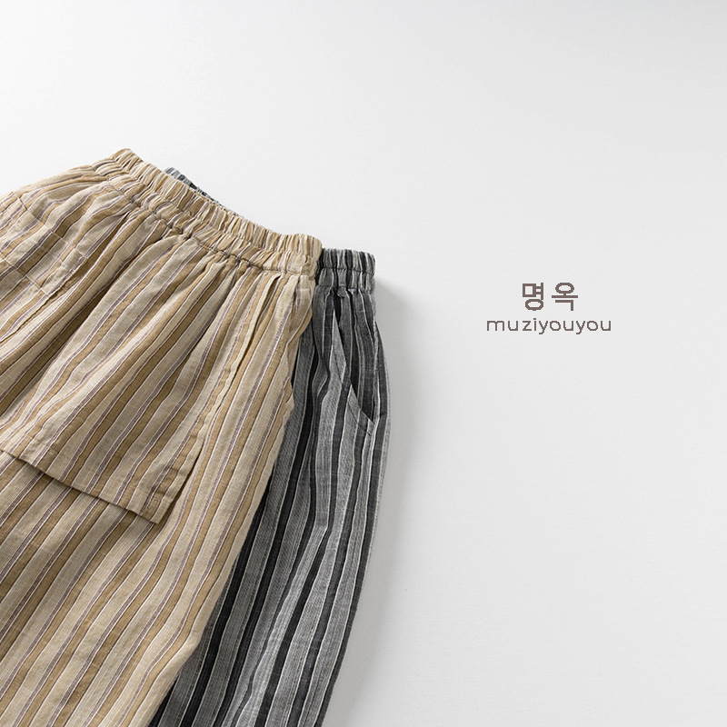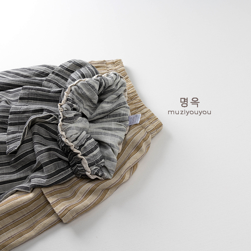 #キッズパンツ #子供服 #ユニセックス #ストライプ #イージーパンツ #エプロン風 #夏物子供服 #蚊よけ #カジュアルパンツ