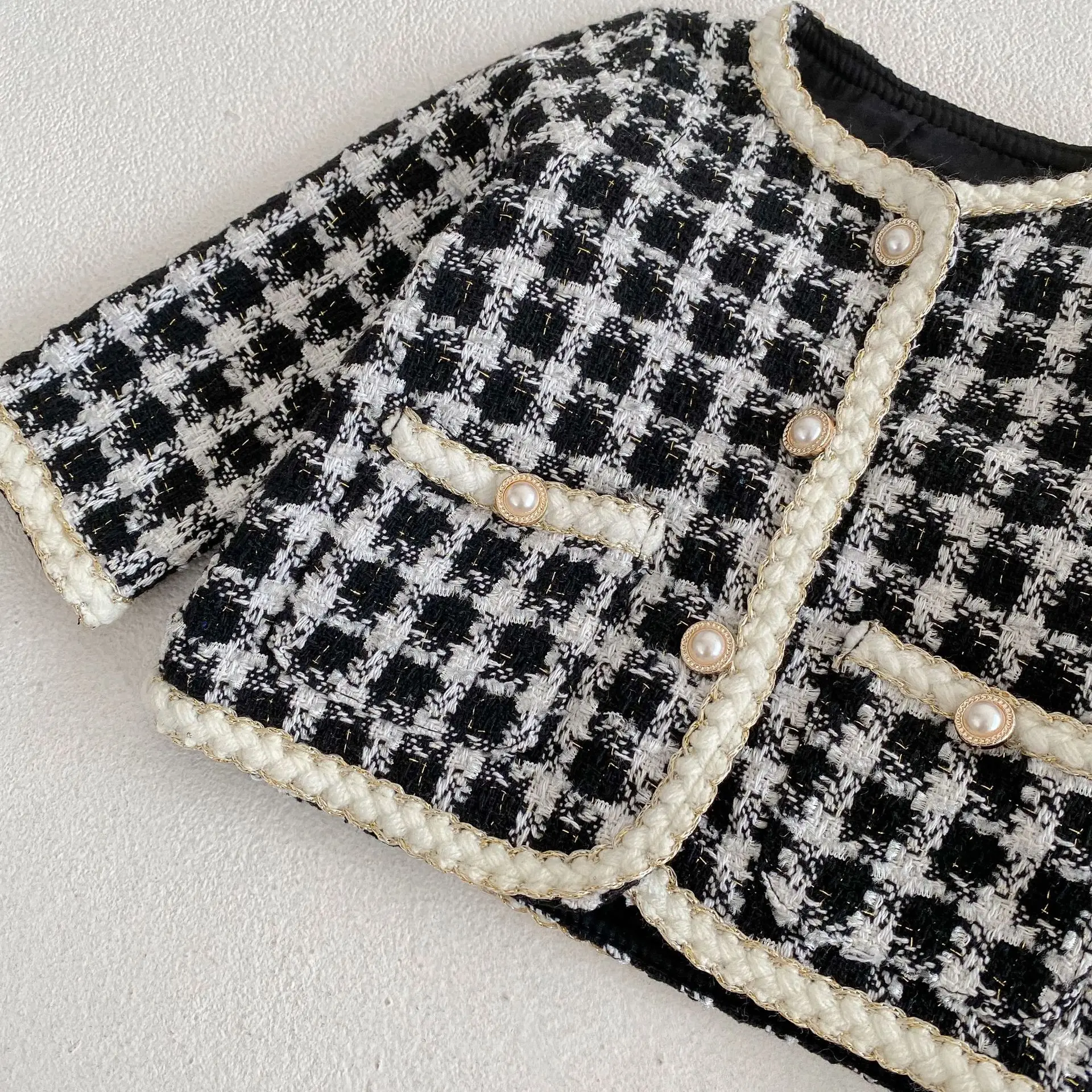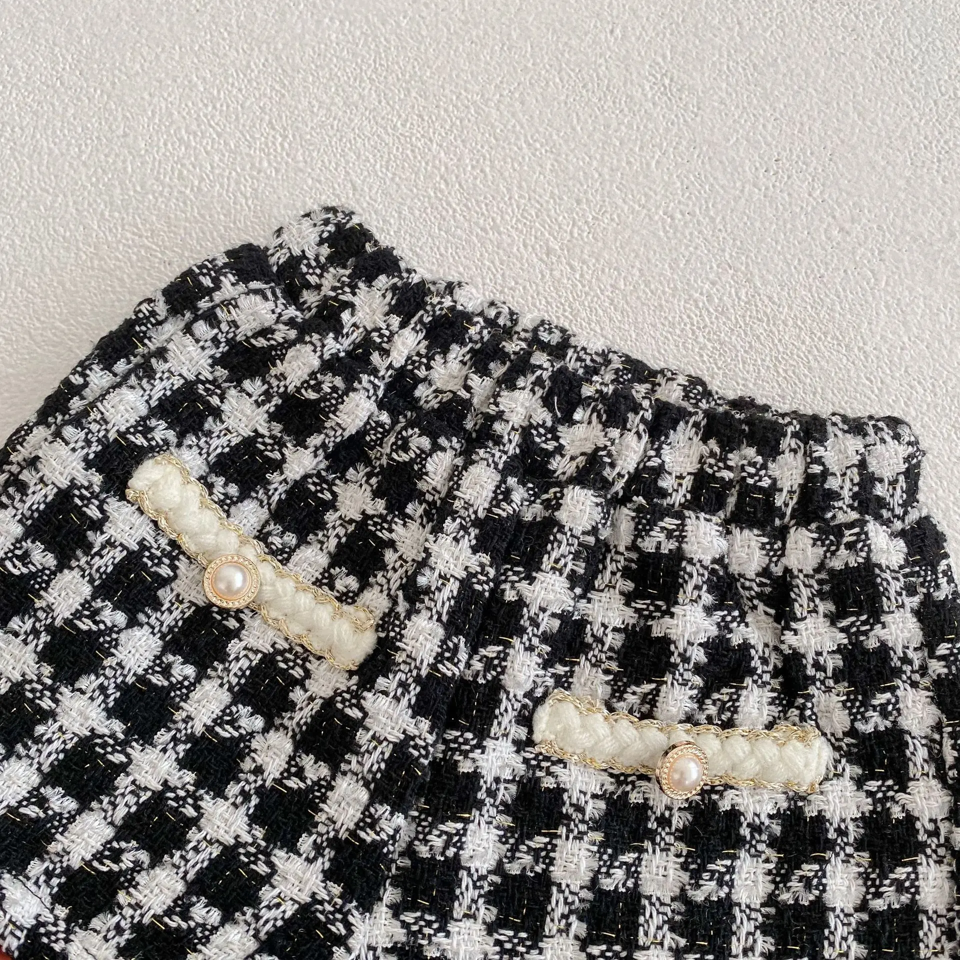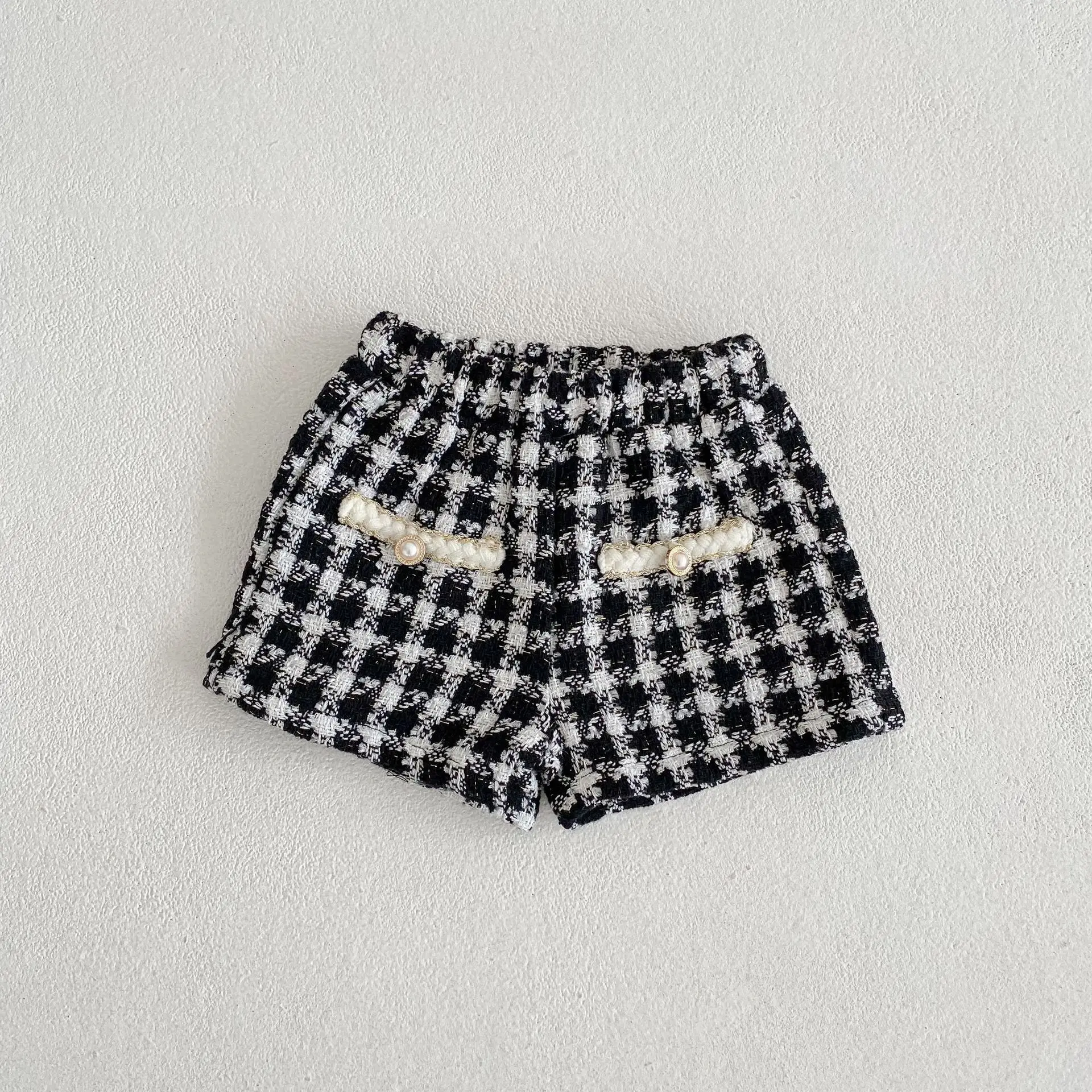 ベビー ツイード セットアップ パールボタン 千鳥格子 ジャケット ショートパンツ【mh0001609】