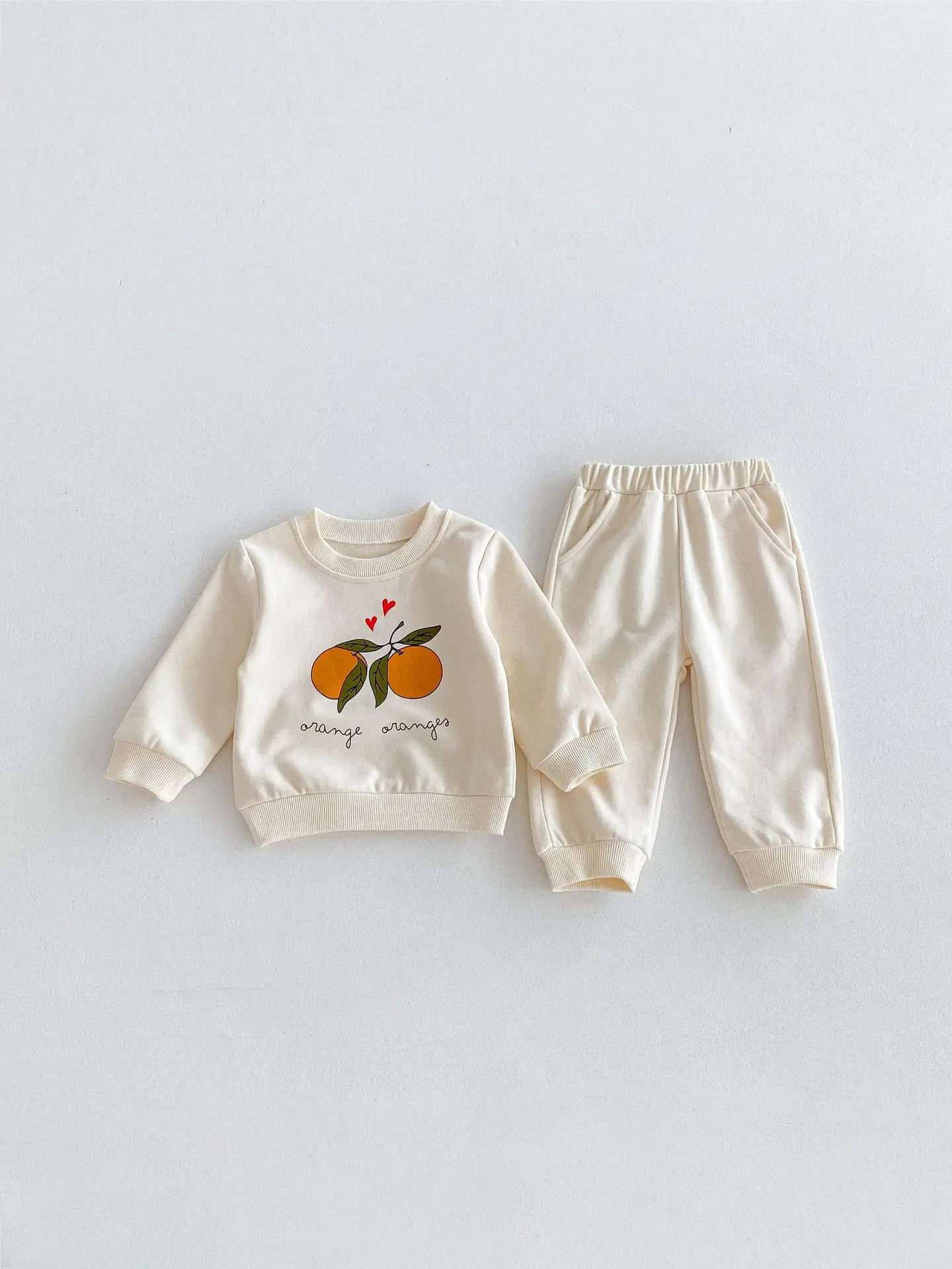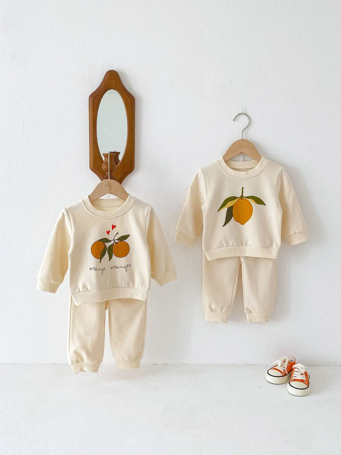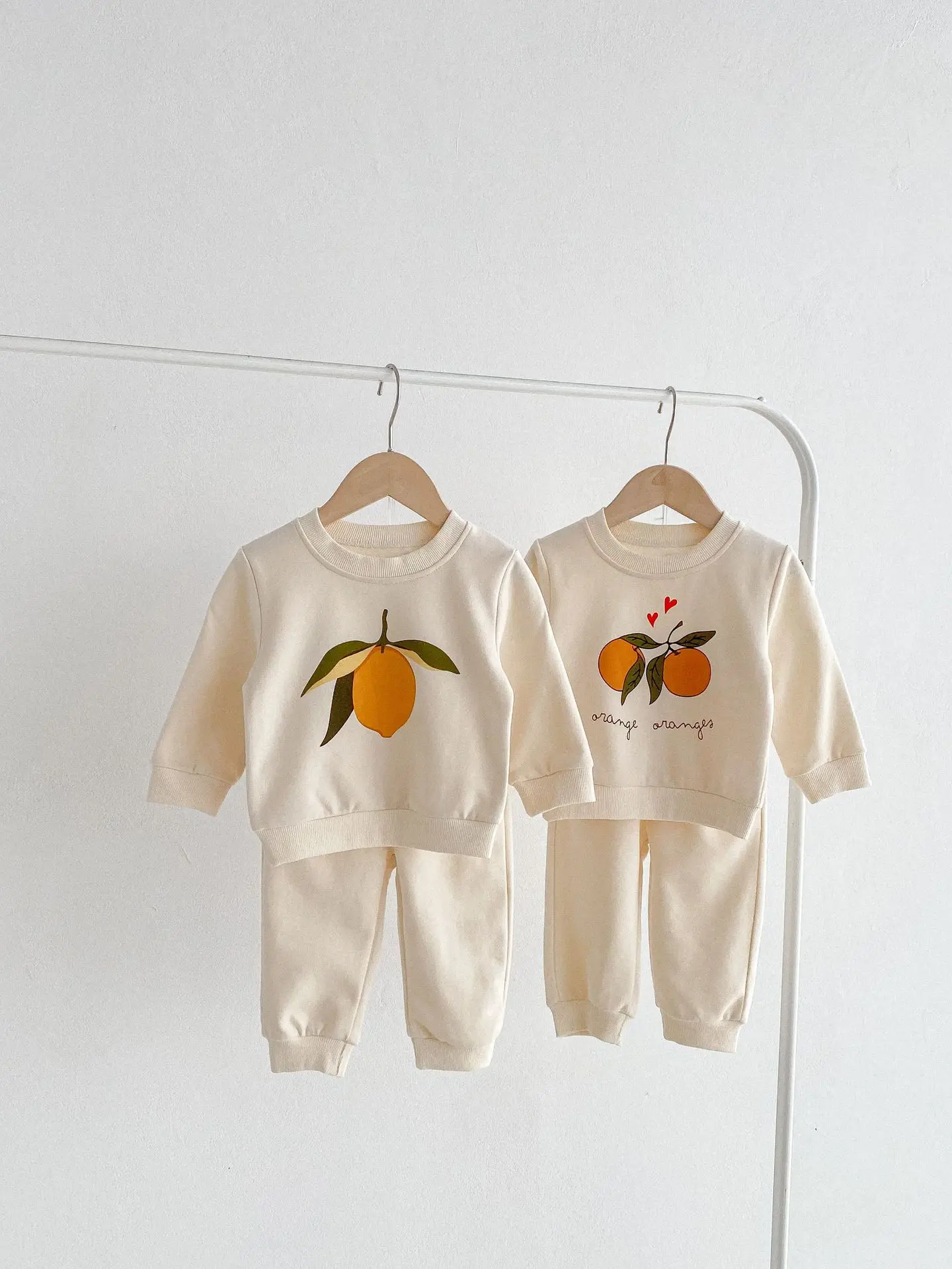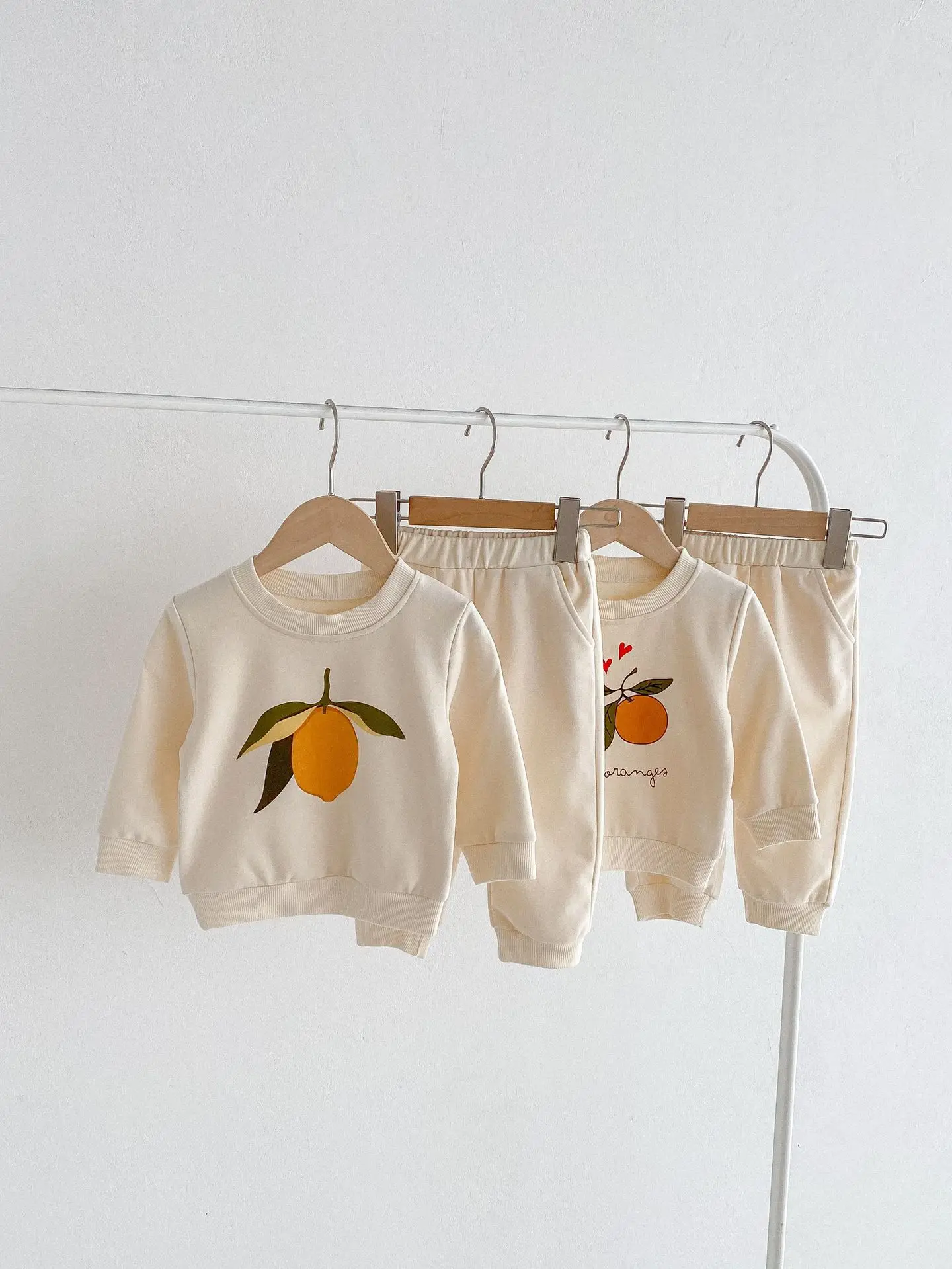 この2点セットは、赤ちゃんや子供に最適です。レモンとオレンジのフルーツプリントが可愛くてユニークです。長袖のトップスとパンツのセットで、カジュアルなスウェットシャツをおしゃれに演出します。 自然の風合いを感じるナチュラルテイストで、お子様に優しい着心地を提供します。