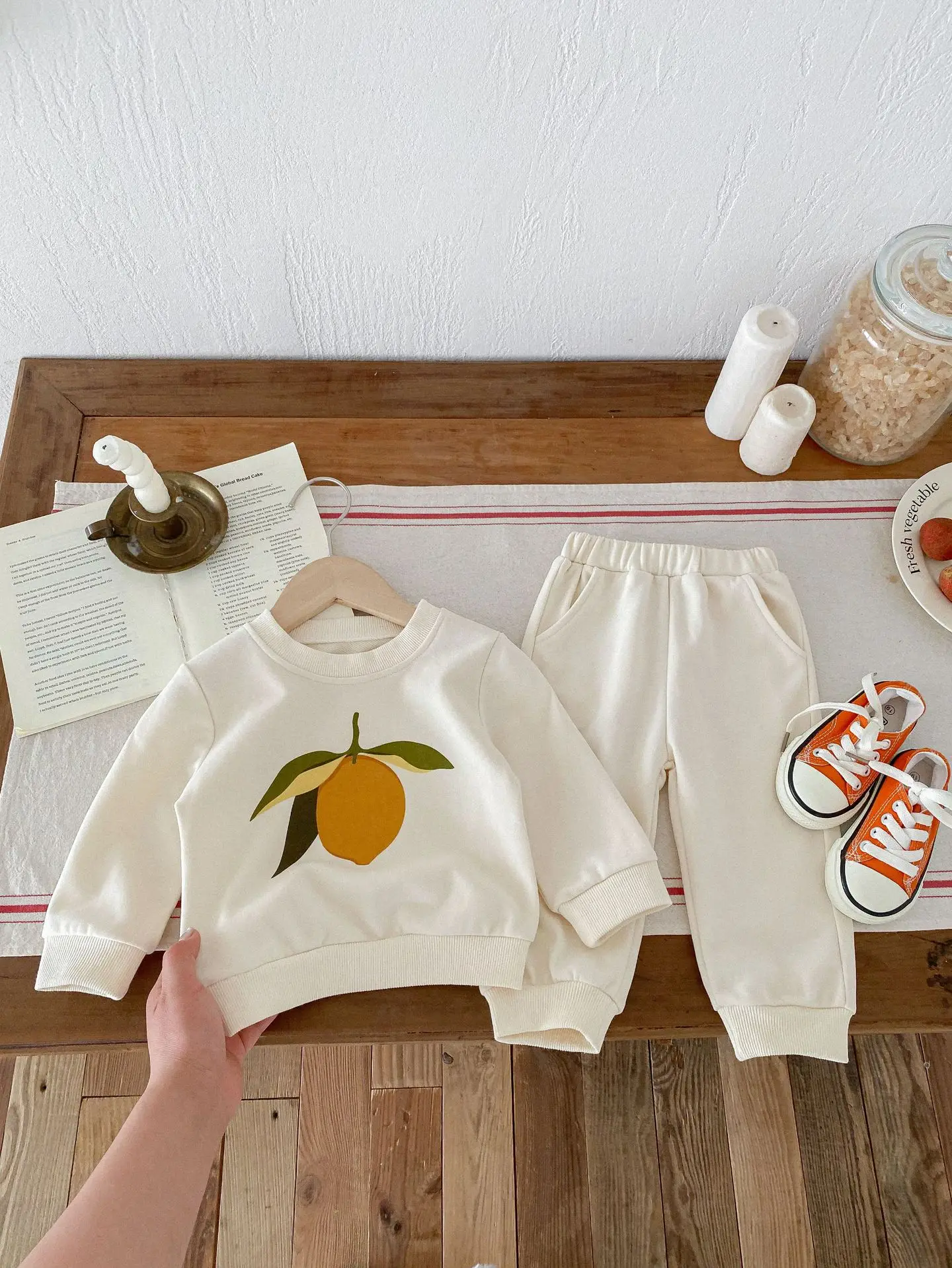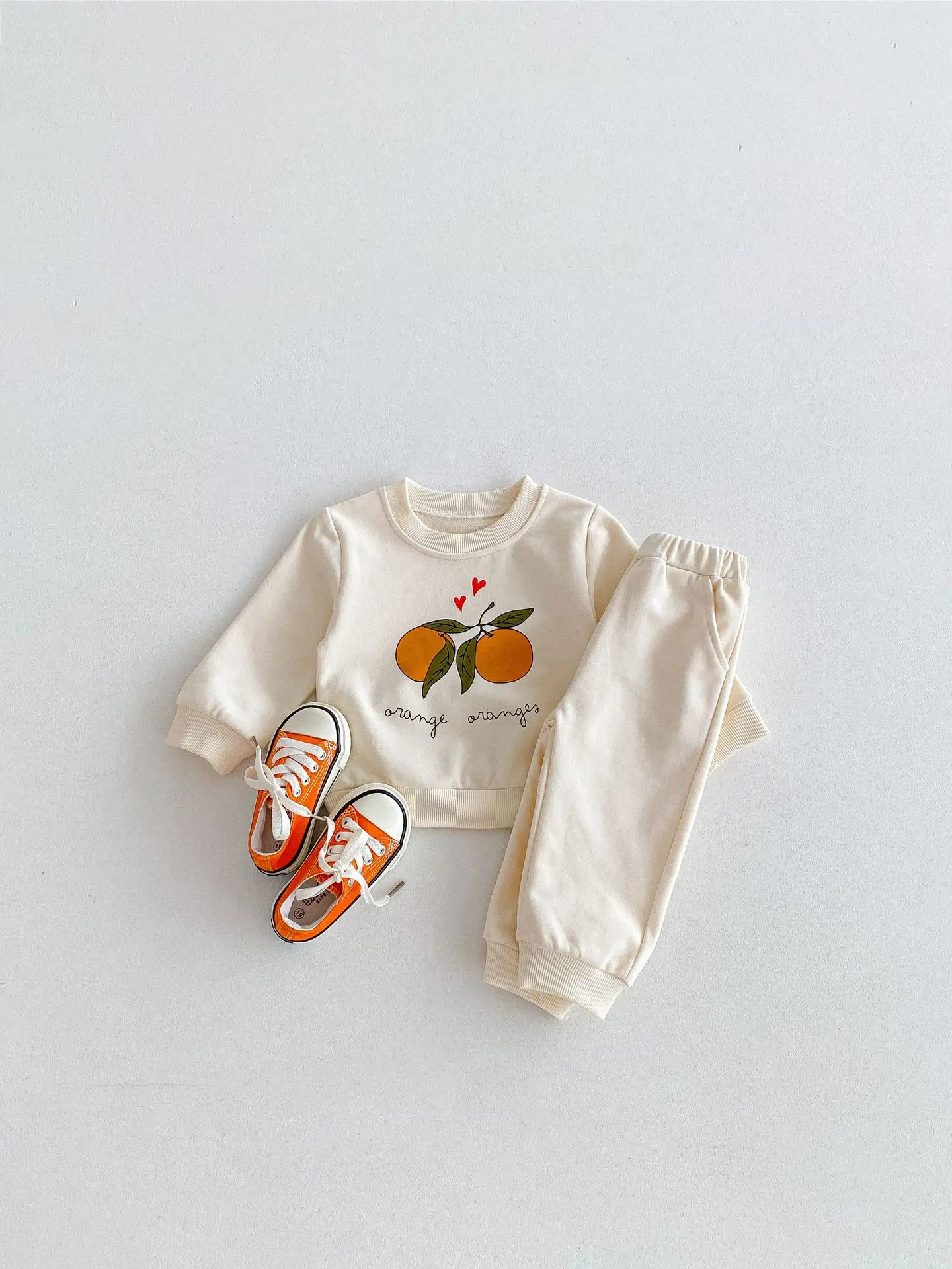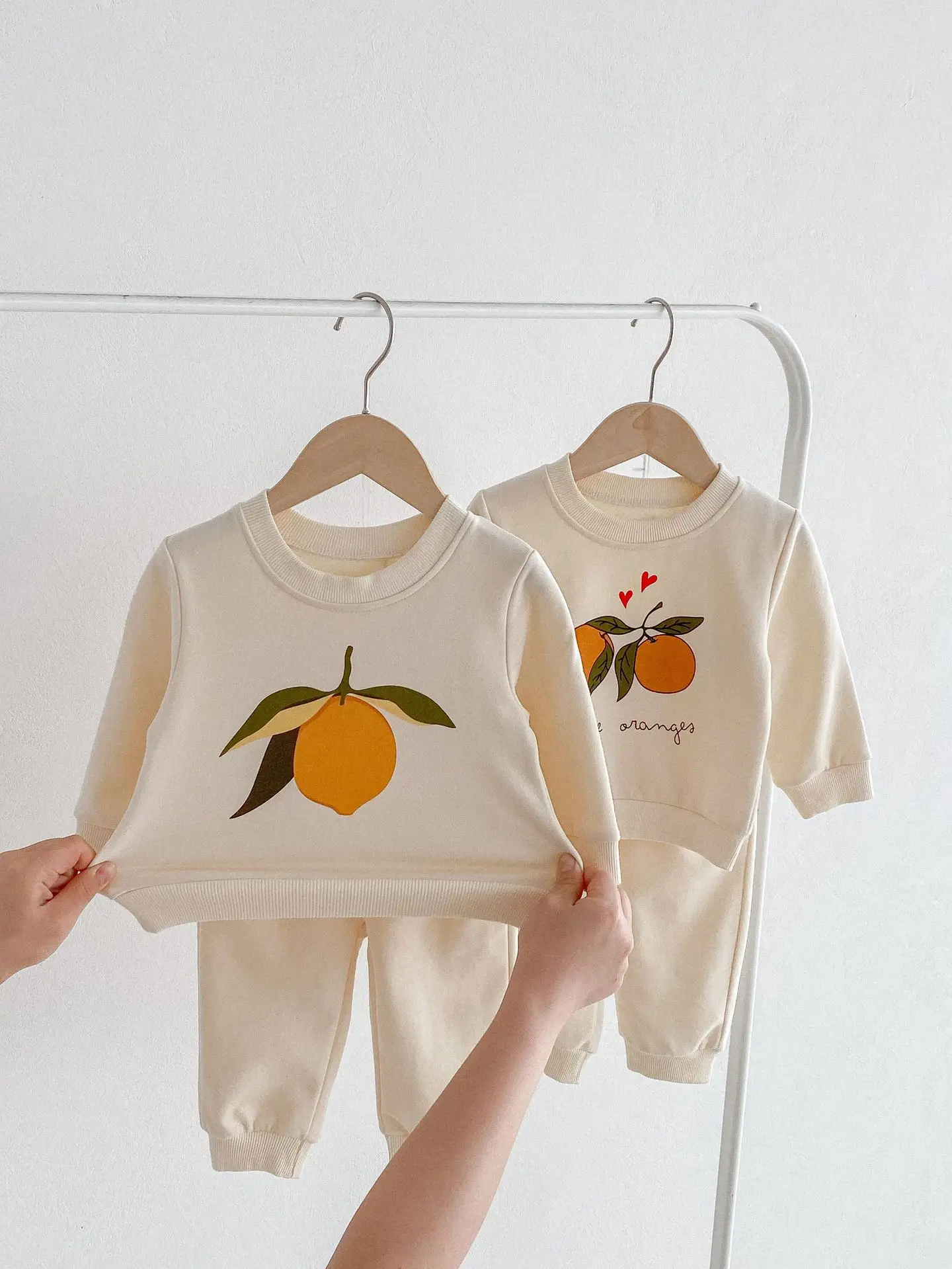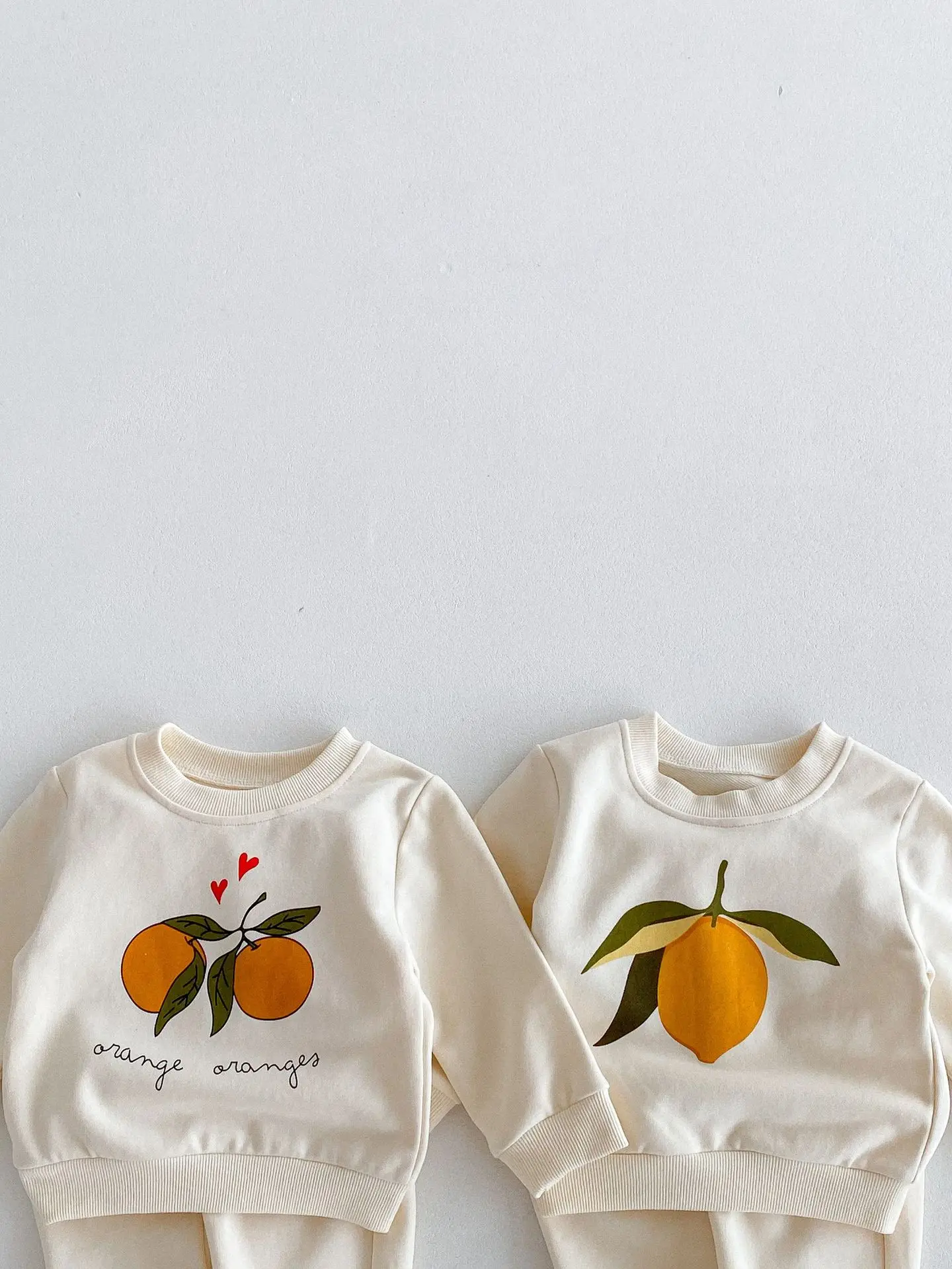 この2点セットは、赤ちゃんや子供に最適です。レモンとオレンジのフルーツプリントが可愛くてユニークです。長袖のトップスとパンツのセットで、カジュアルなスウェットシャツをおしゃれに演出します。 自然の風合いを感じるナチュラルテイストで、お子様に優しい着心地を提供します。