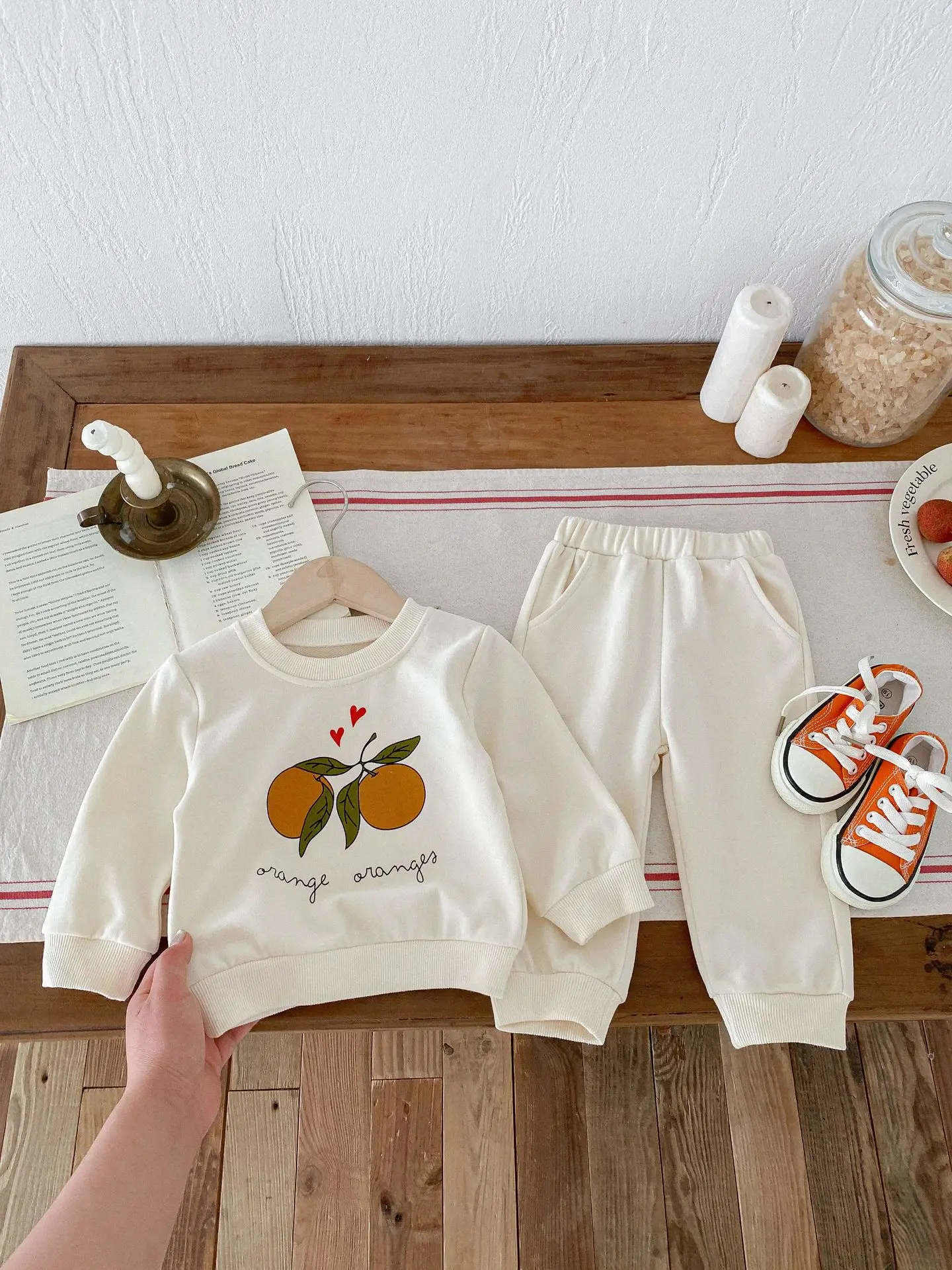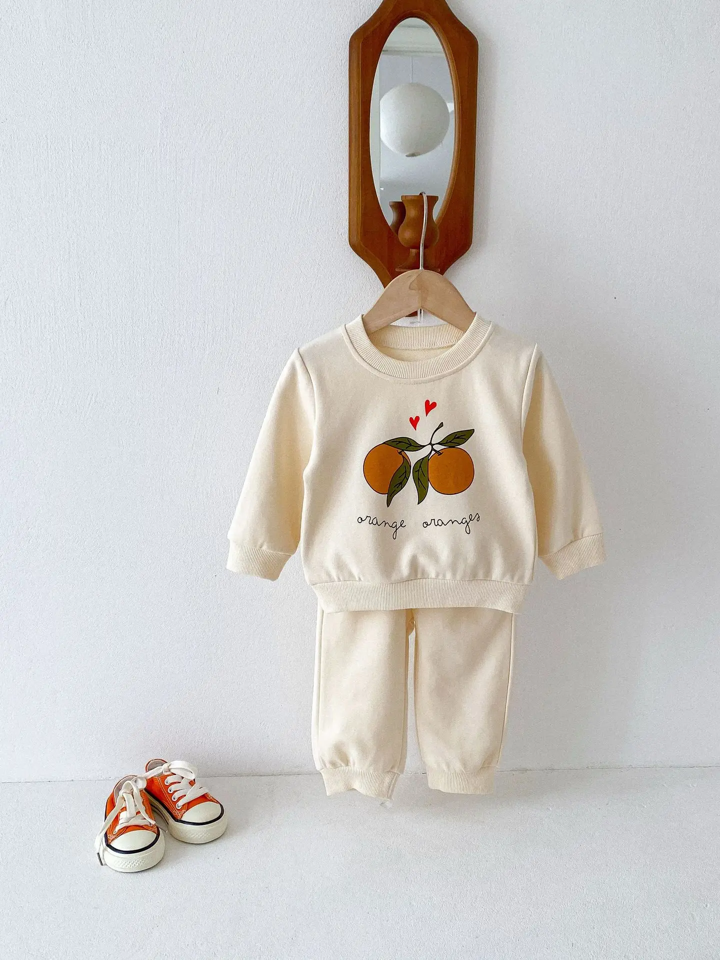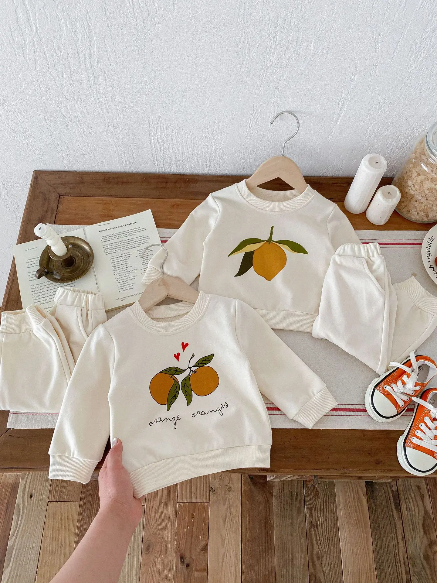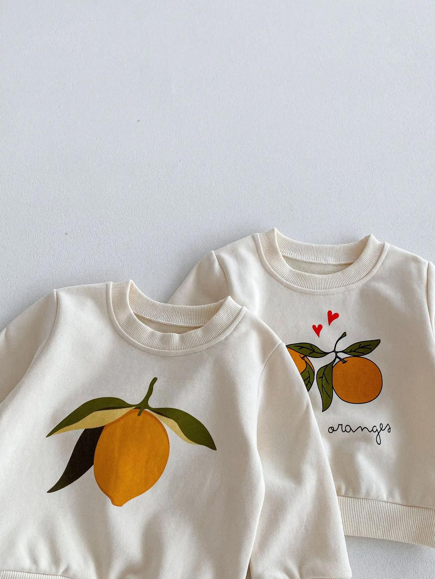 この2点セットは、赤ちゃんや子供に最適です。レモンとオレンジのフルーツプリントが可愛くてユニークです。長袖のトップスとパンツのセットで、カジュアルなスウェットシャツをおしゃれに演出します。 自然の風合いを感じるナチュラルテイストで、お子様に優しい着心地を提供します。