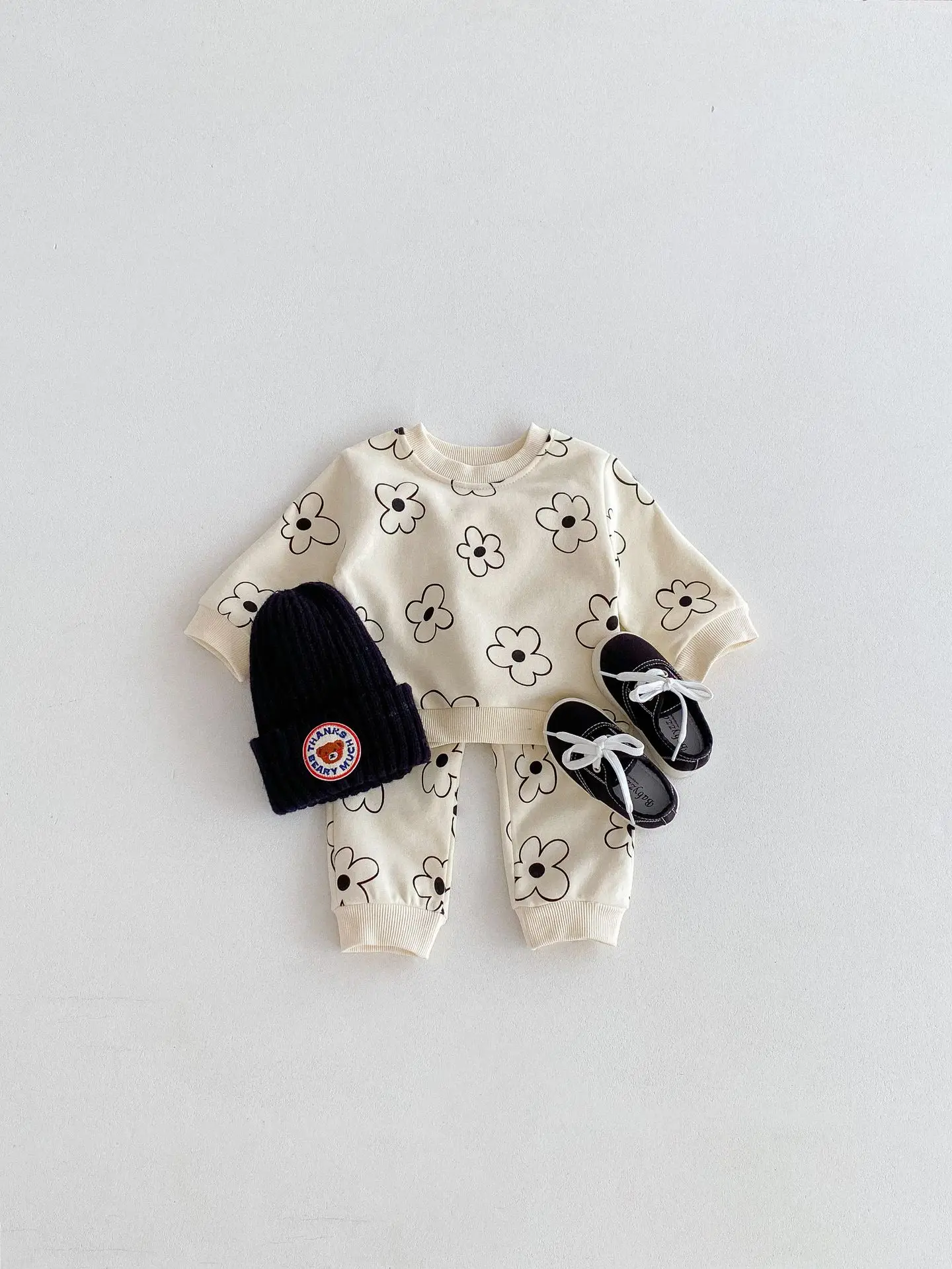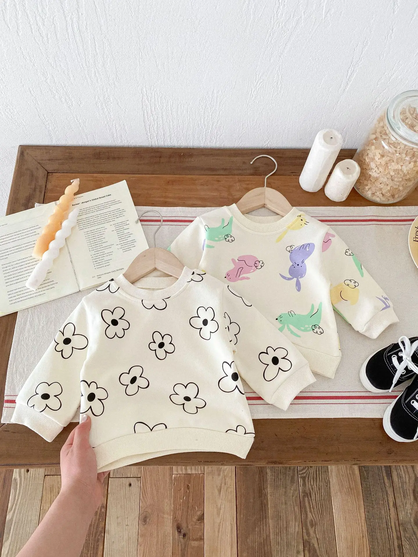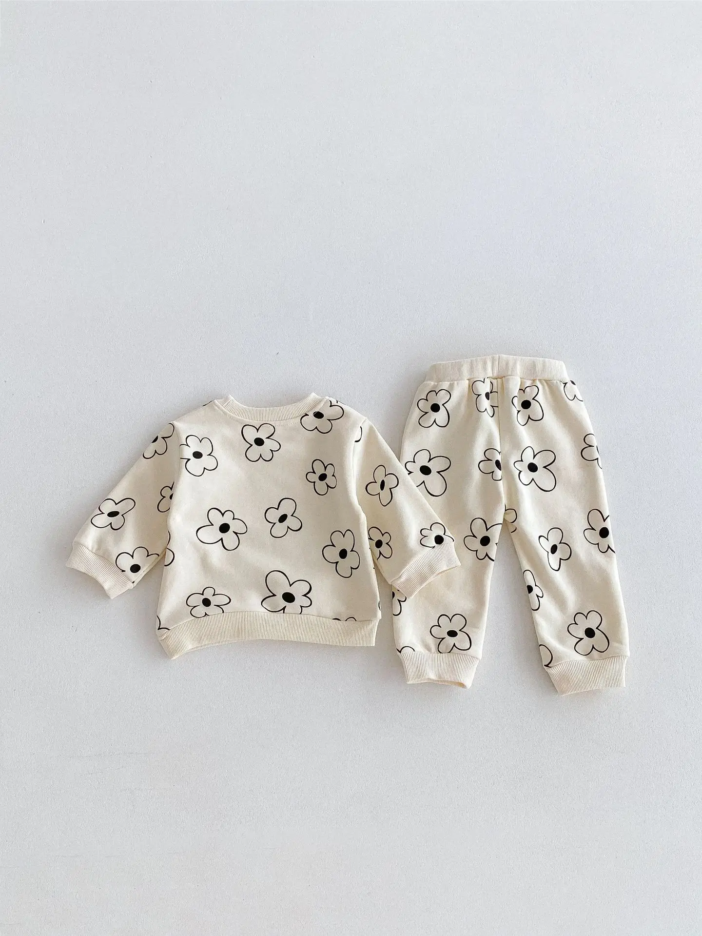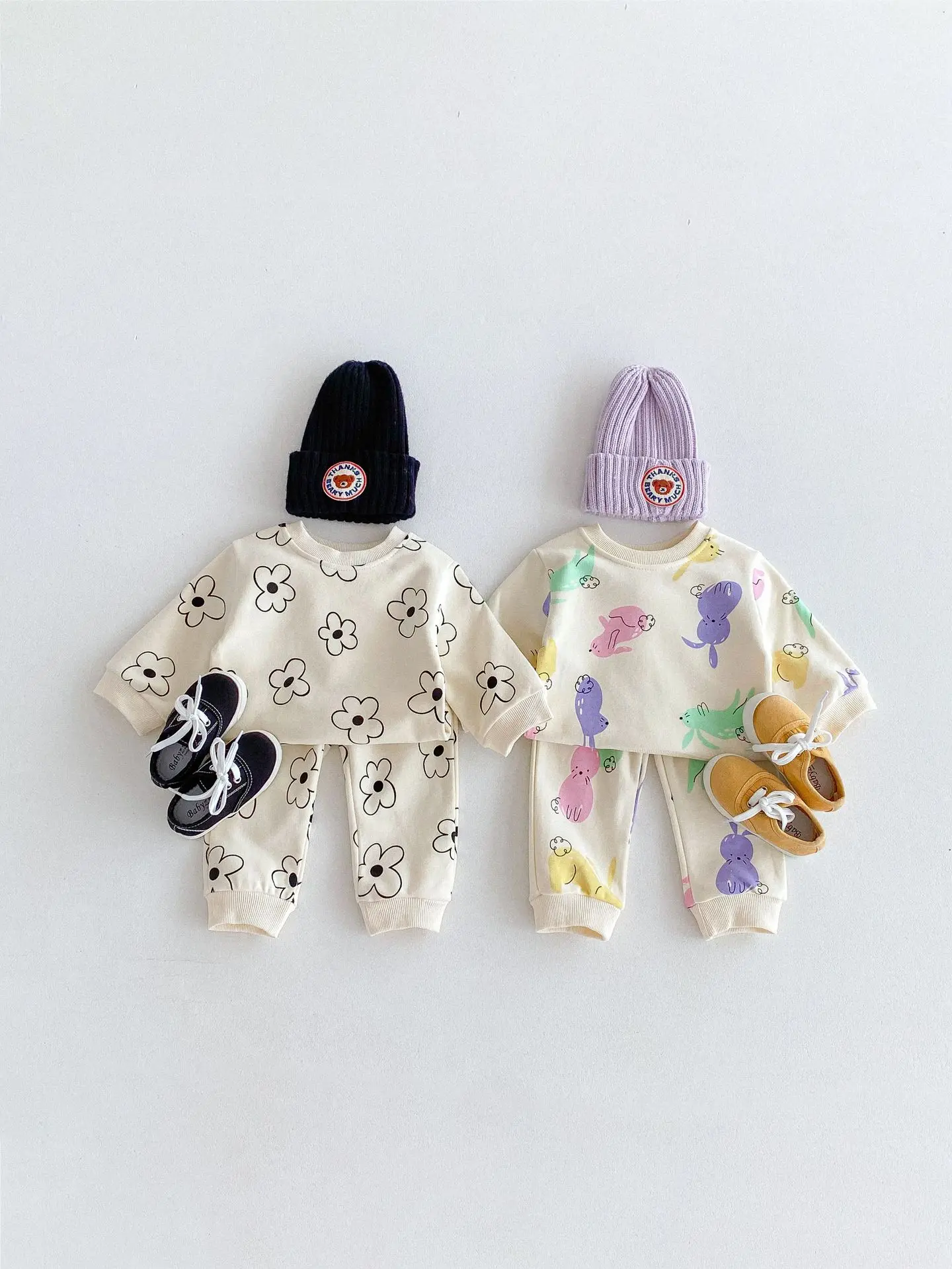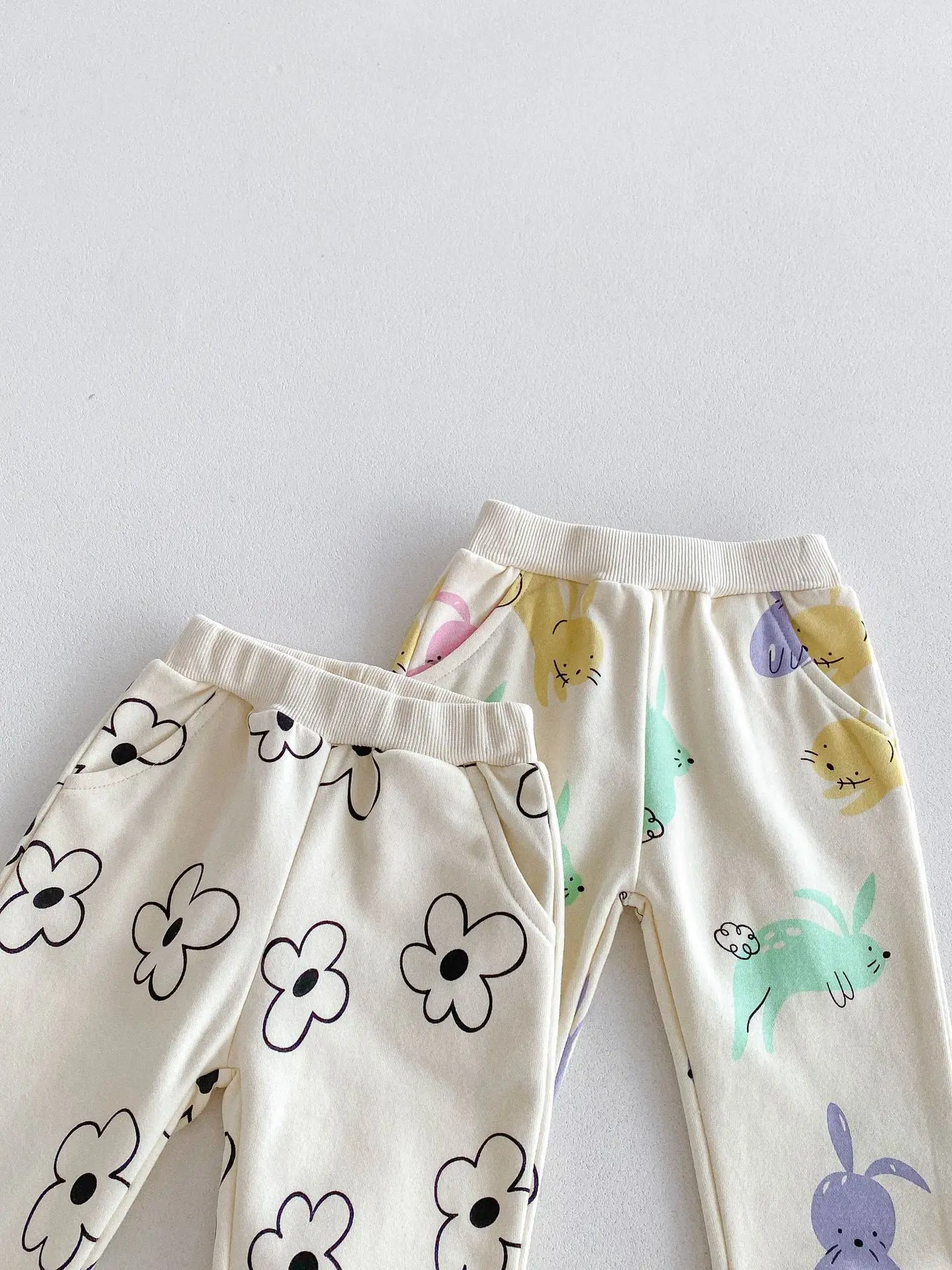 ベビーキッズセットアップ 2点セット スウェットシャツ+スウェットパンツ レトロフラワー/カラフルラビットプリント【mh0006445】