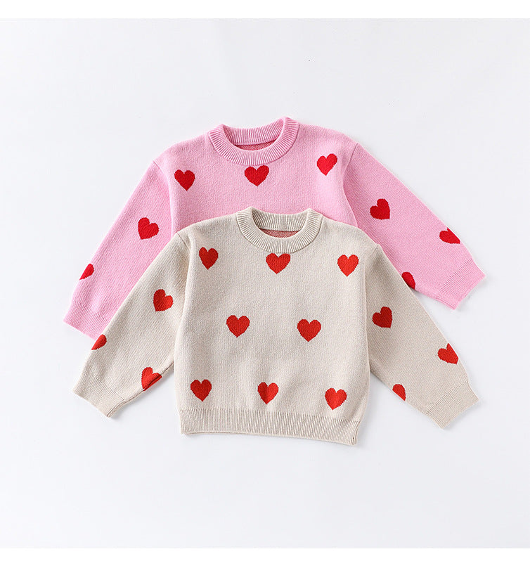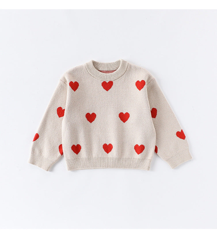 柔らかなコットンで編み上げられた、肌触りの良いベビー・幼児向けの長袖セーターです。愛らしいいちごやハートのモチーフが散りばめられたデザインは、北欧らしい温かみのある雰囲気を漂わせます。着回しやすいプルオーバータイプのニットトップスは、快適な着心地ながらもおしゃれな印象を与え、子ども服のコーディネートを華やかに彩ります。