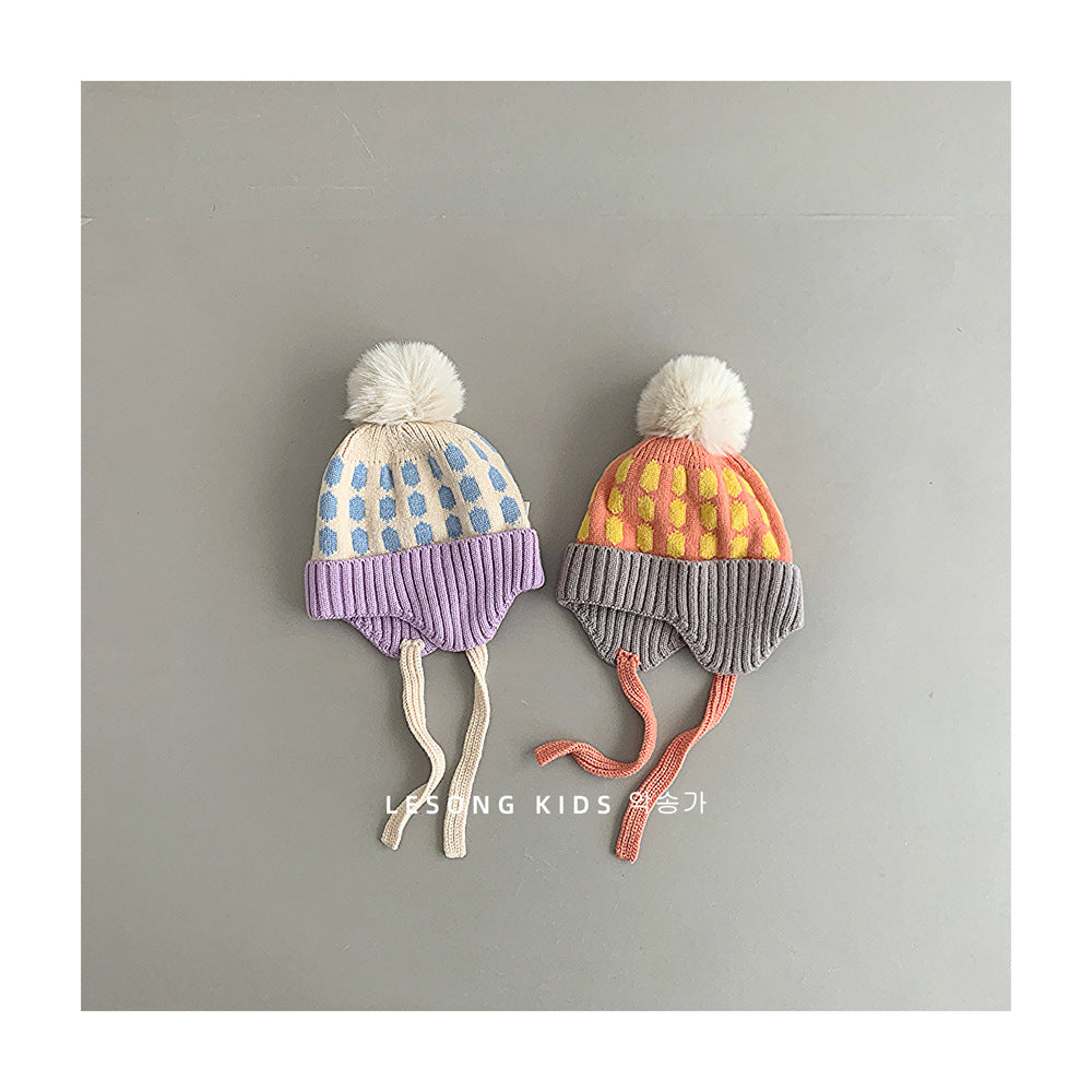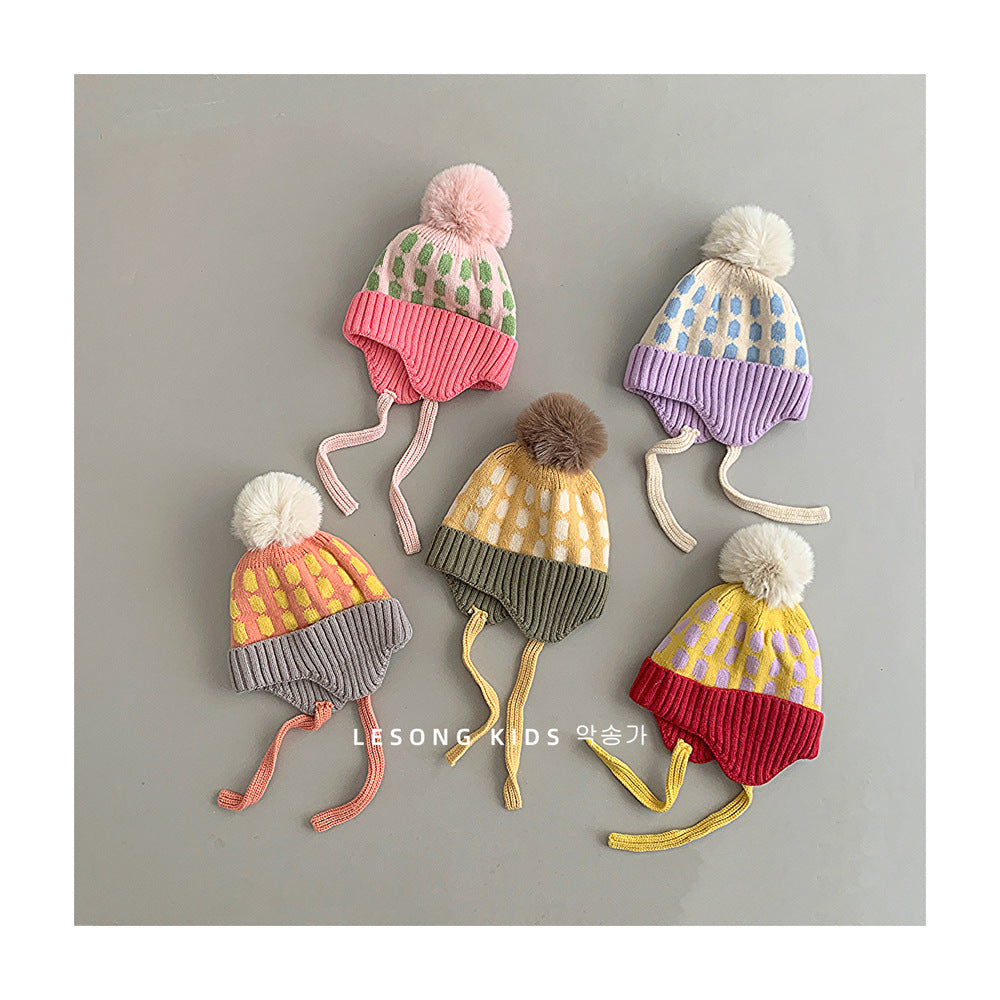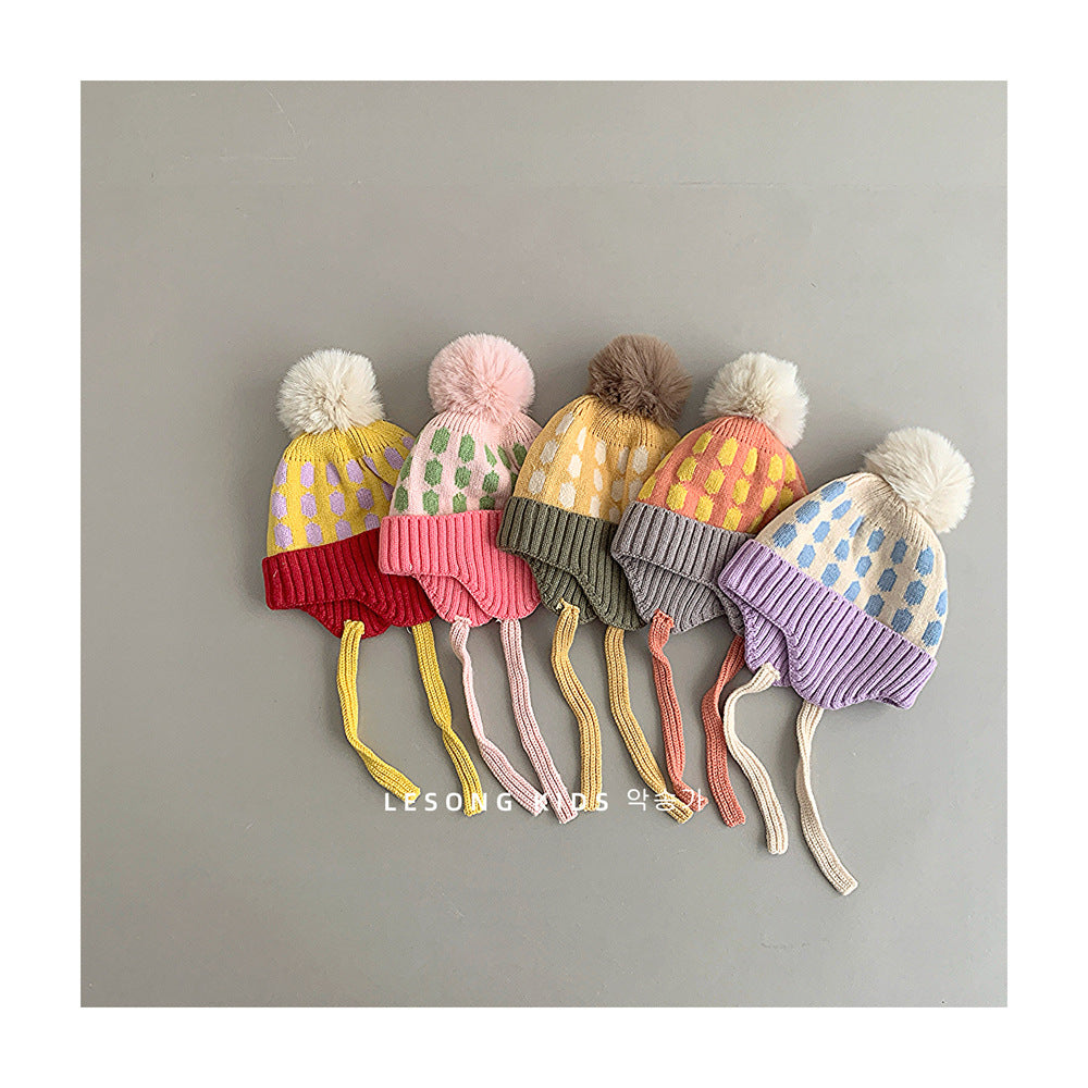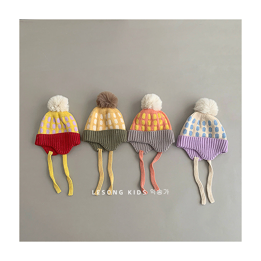キッズ帽子 ニットキャップ 耳あてぽんぽん付き カラフル 防寒【mh0011794】