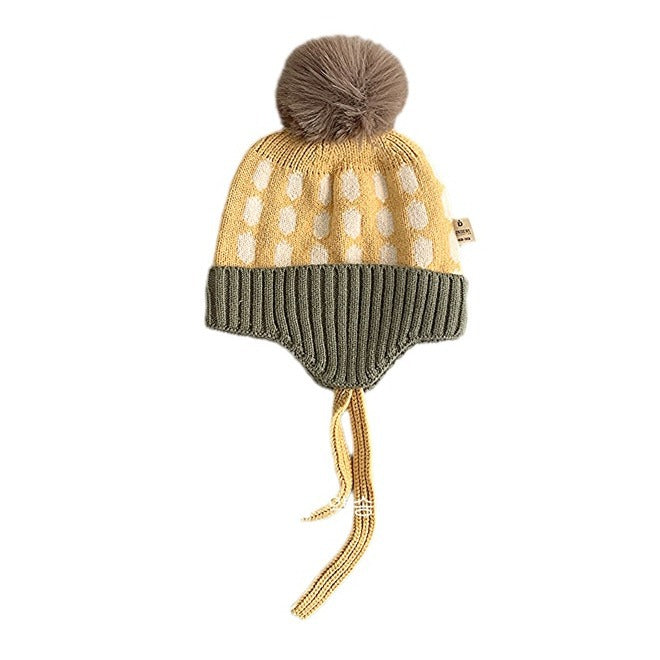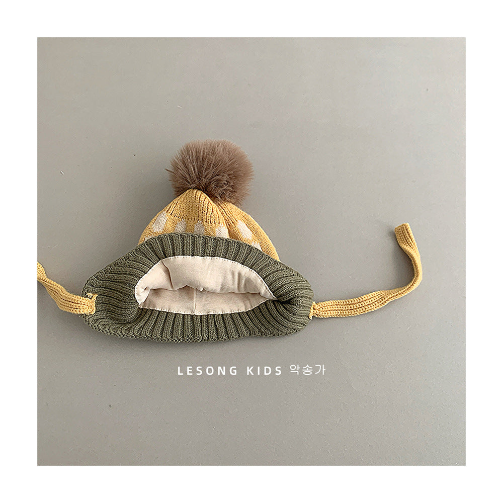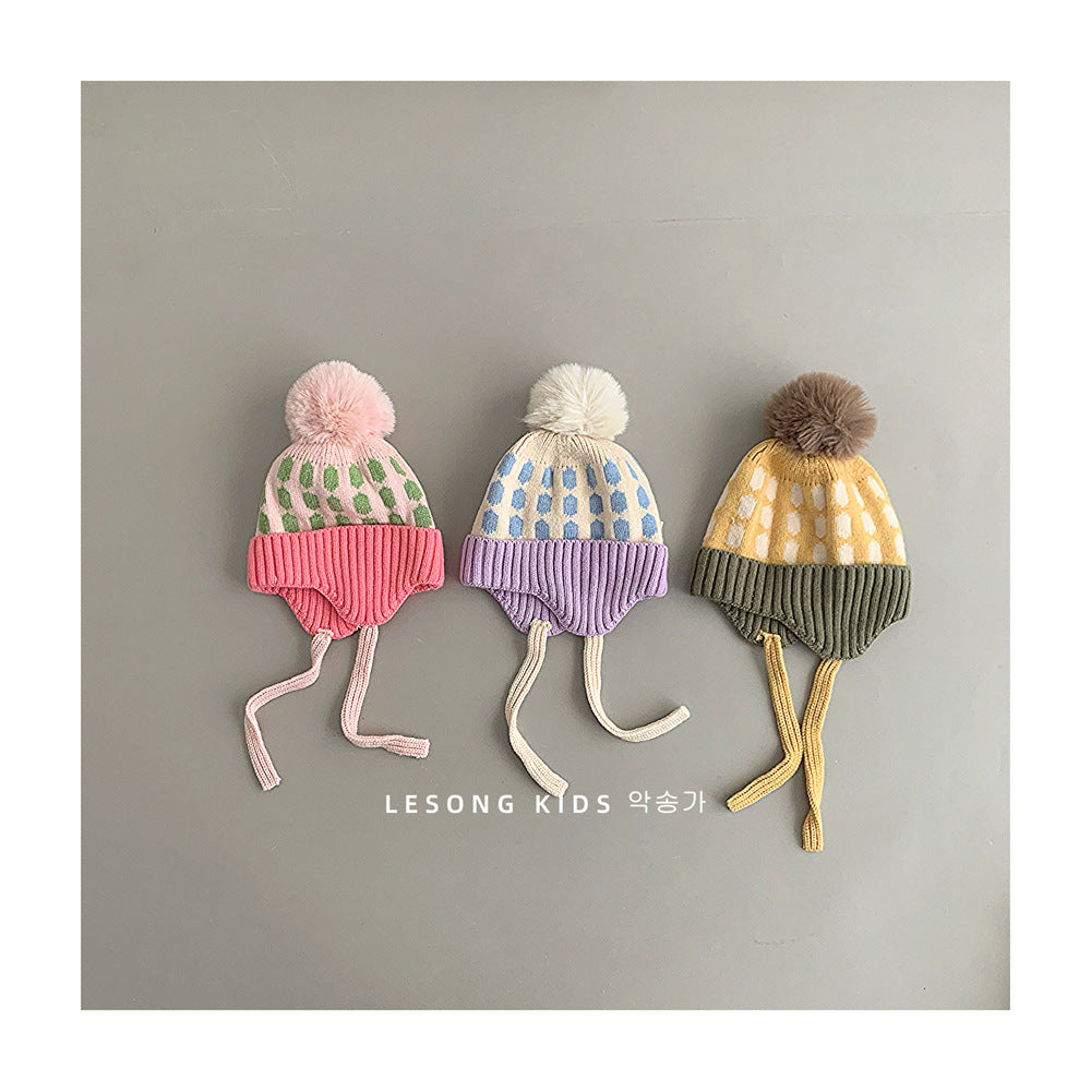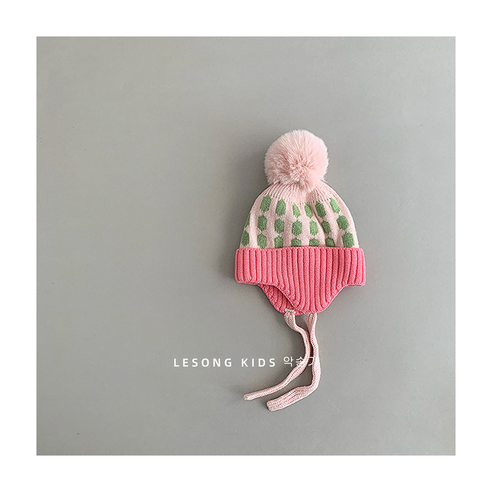 キッズ帽子 ニットキャップ 耳あてぽんぽん付き カラフル 防寒【mh0011794】