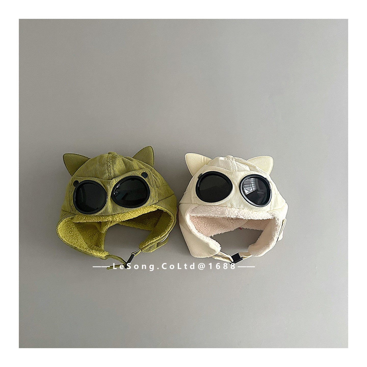 キッズ帽子 ねこ耳 サングラス フライトハット パイロットキャップ【mh0011811】