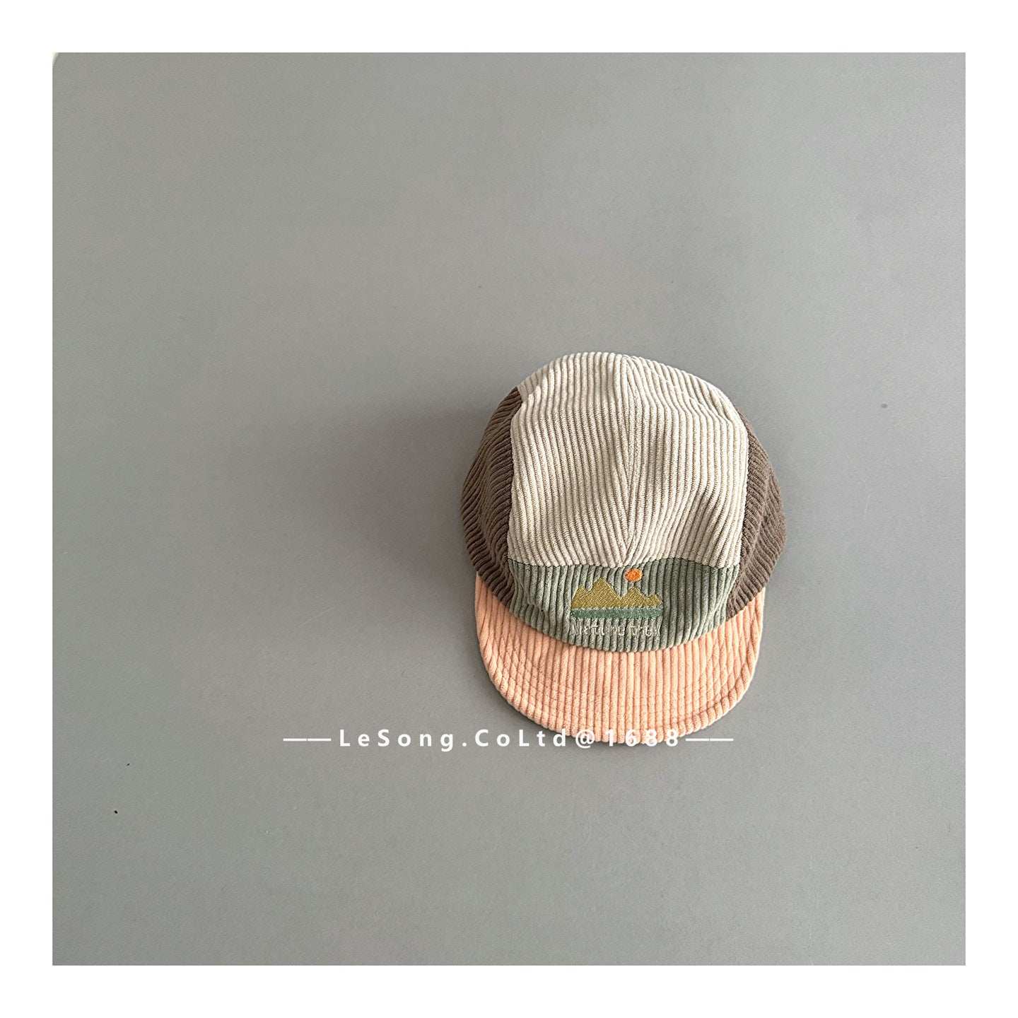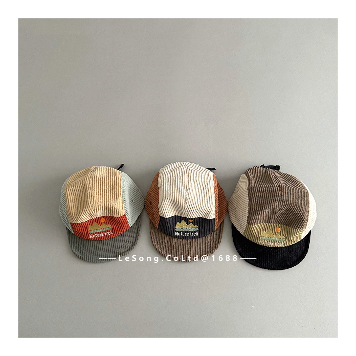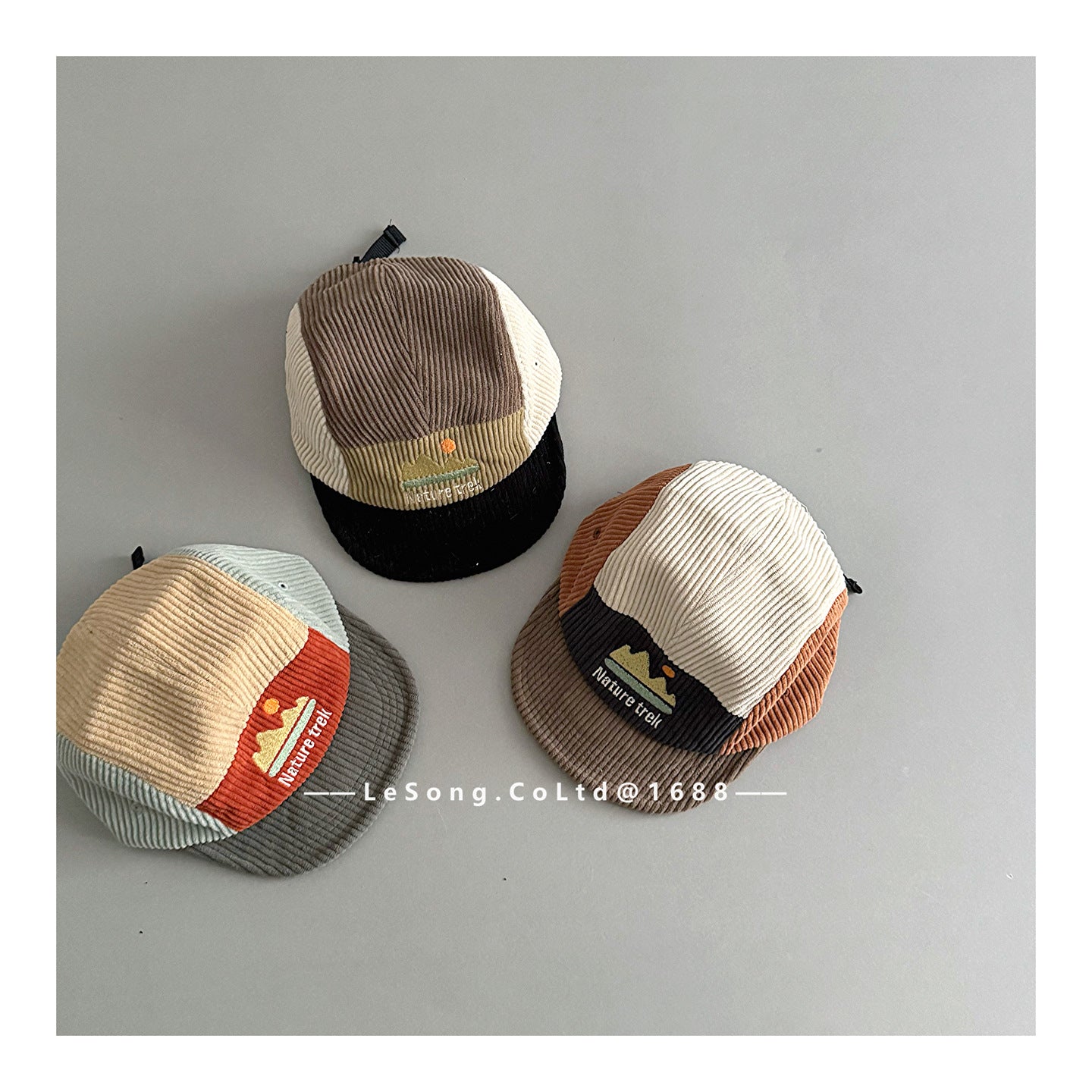 キッズ帽子 コーデュロイ カラーブロック 野球帽【mh0011813】