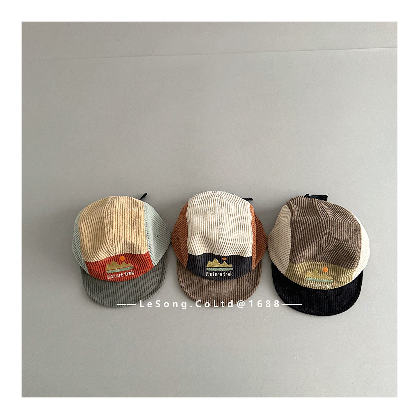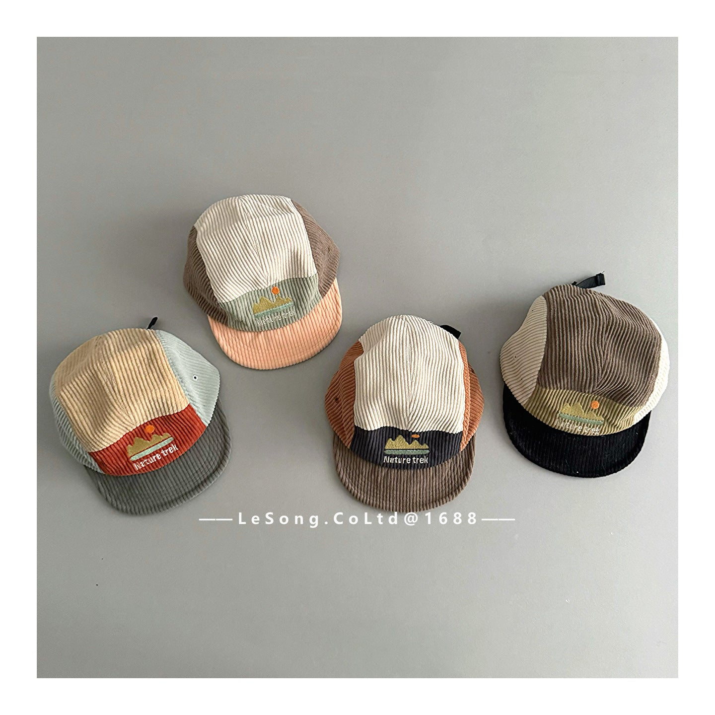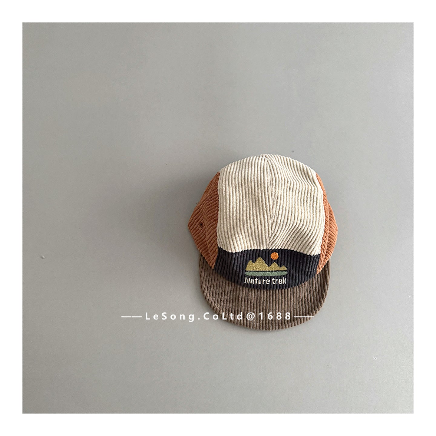 キッズ帽子 コーデュロイ カラーブロック 野球帽【mh0011813】