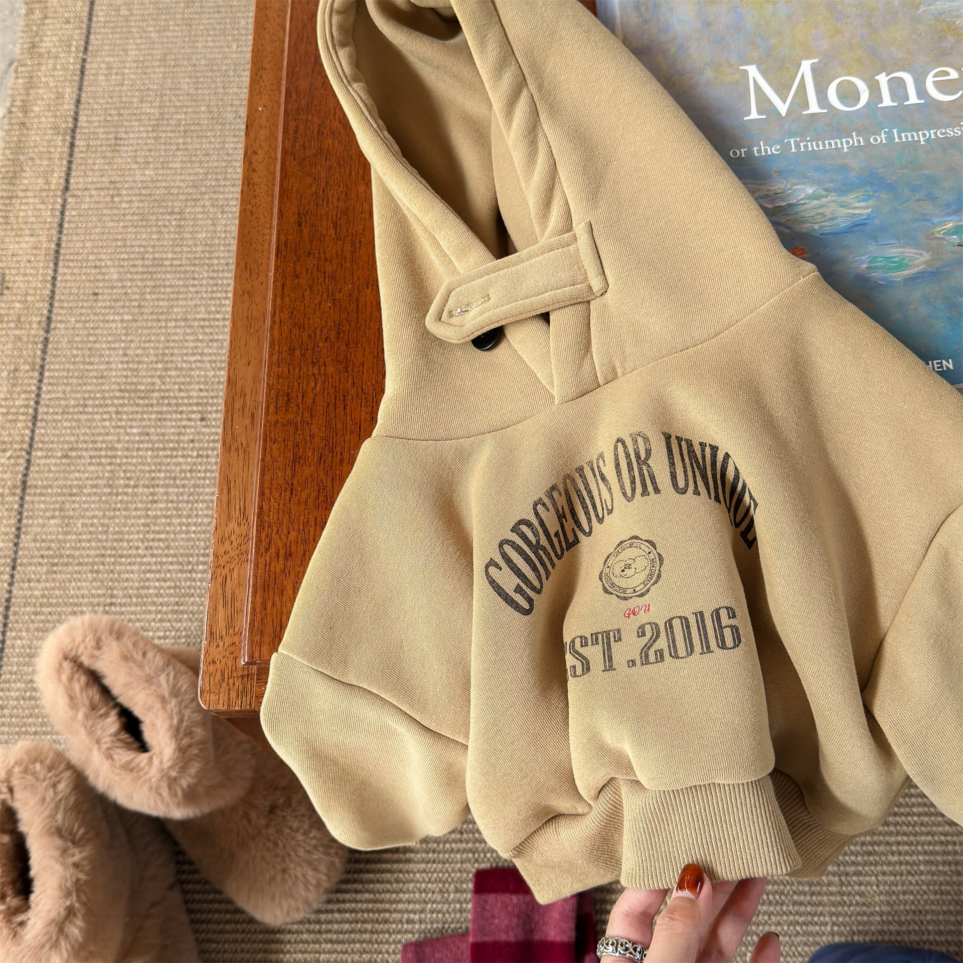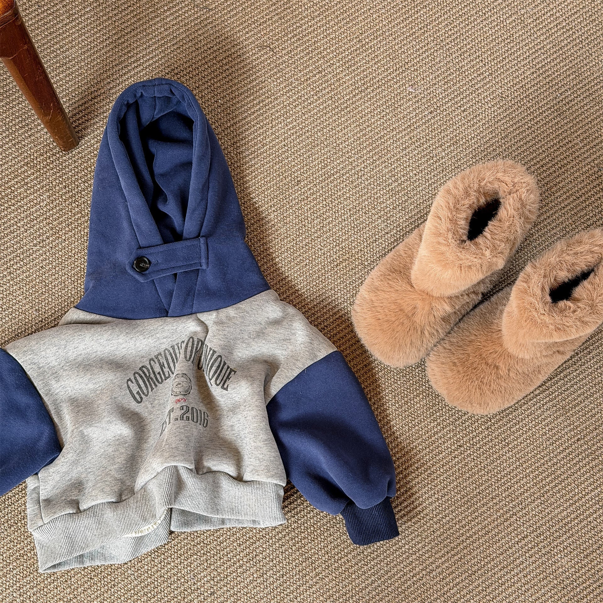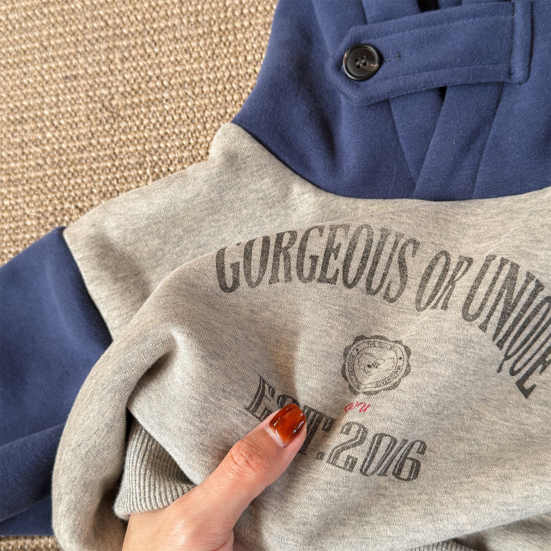 柔らかな裏起毛素材を使用し、高い保温性と快適な着心地を両立したフード付きのスウェットトレーナーです。フロントに施されたロゴプリントと、現代的なエッセンスを加えるパッチワークデザインが目を引き、一枚で主役級の存在感を放ちつつ、冬のコーディネートにスポーティーで洗練された印象を与えます。性別を問わず着用できるユニセックスなシルエットに仕上げられており、通学や遊びなど日常のあらゆるシーンにおいて、アウターのインナーとしても一枚着としても重宝する、冬のワードローブに欠かせない機能的でファッショナブルな一着です。