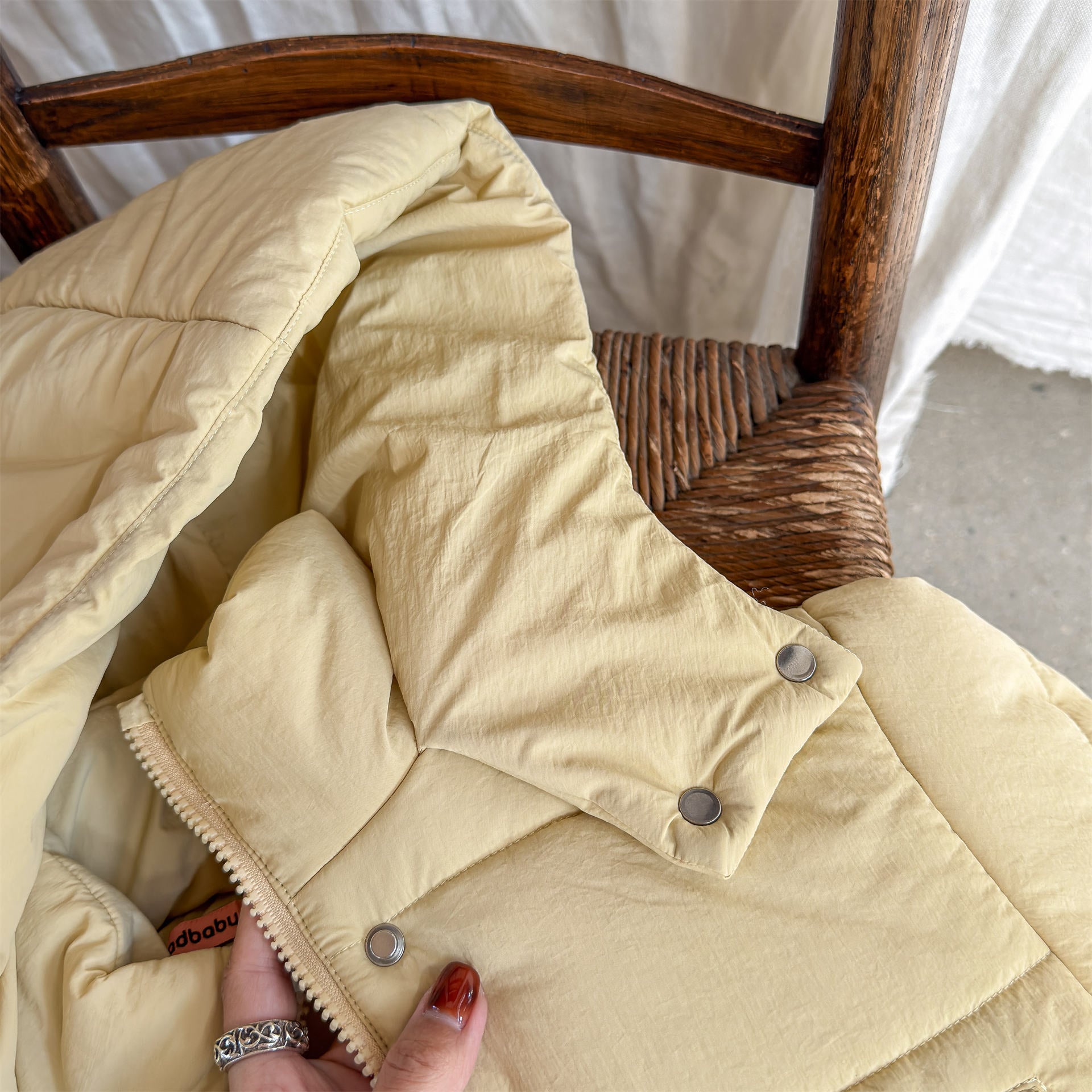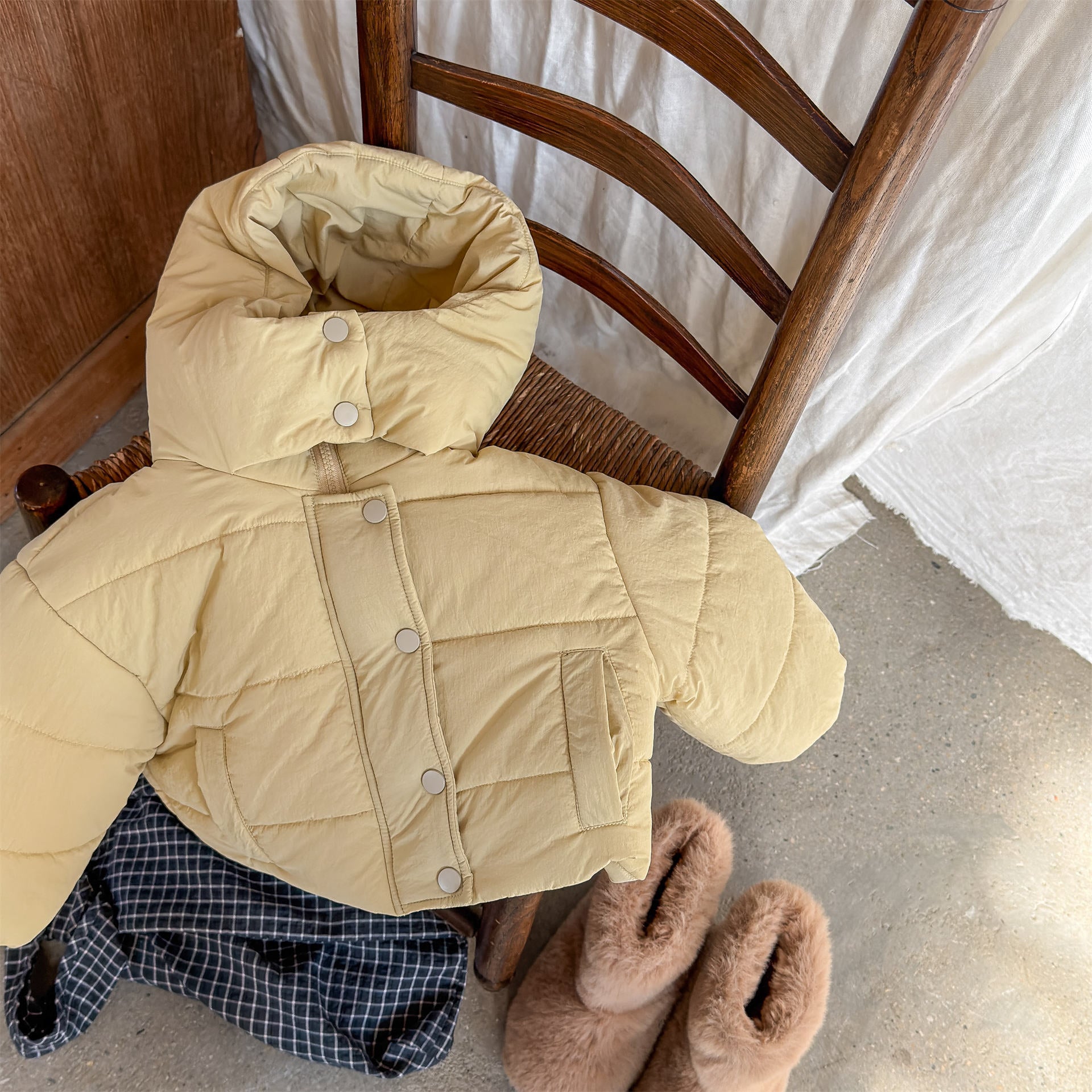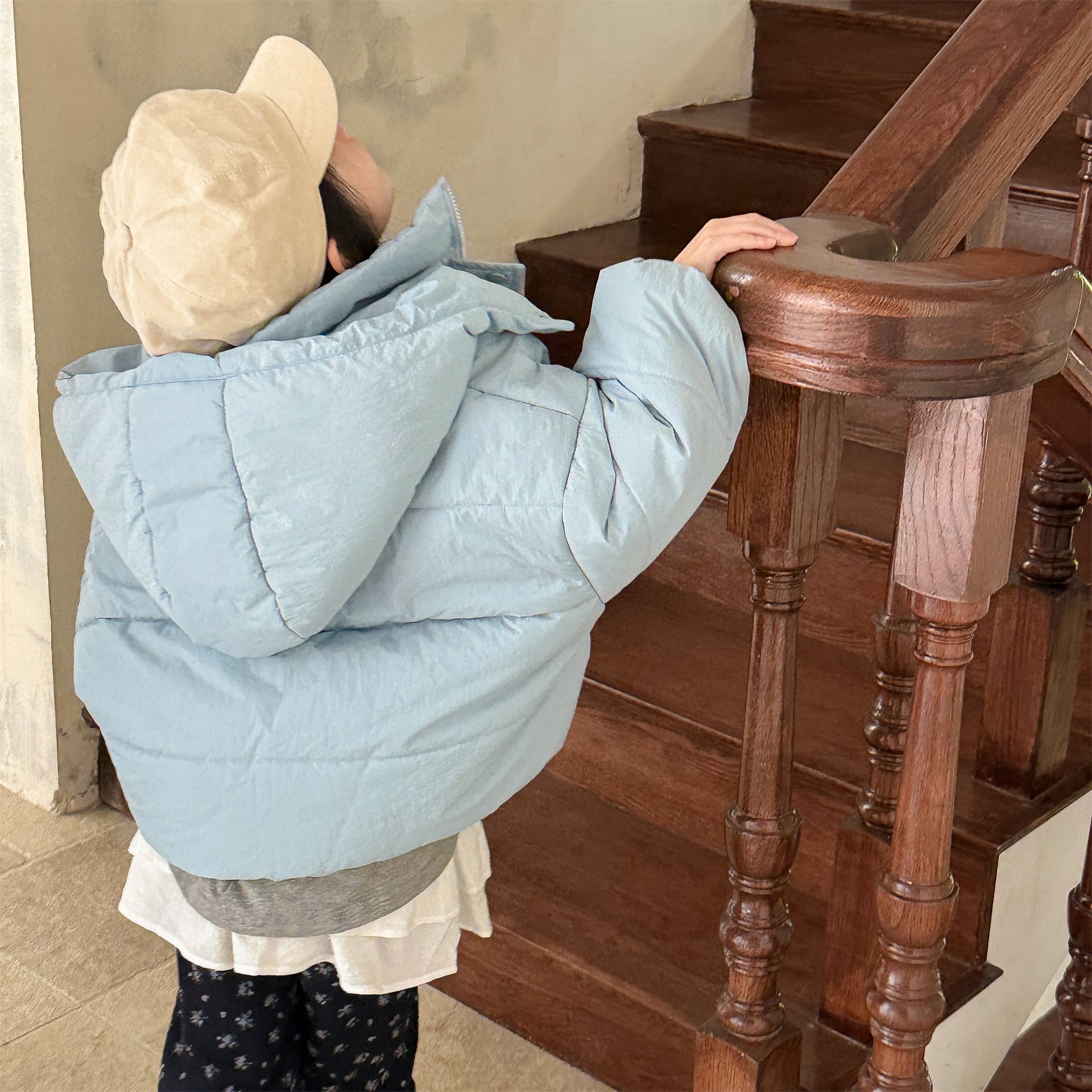 ふっくらとボリュームのある丸いフォルムが特徴的な、フード付きの中綿ボンバージャケットです。たっぷりと詰め込まれた中綿が優れた断熱効果を発揮し、厳しい冬の寒さからお子様を暖かく守り抜きます。最新のトレンドを取り入れたシンプルかつ洗練されたデザインは、男の子にも女の子にも似合うユニセックスな仕様で、首元をしっかりと覆うフードが防寒性をさらに高めています。デイリーな通学から冬のアウトドアまで幅広く活躍する、軽やかさと圧倒的な暖かさを両立した頼れるメインアウターです。