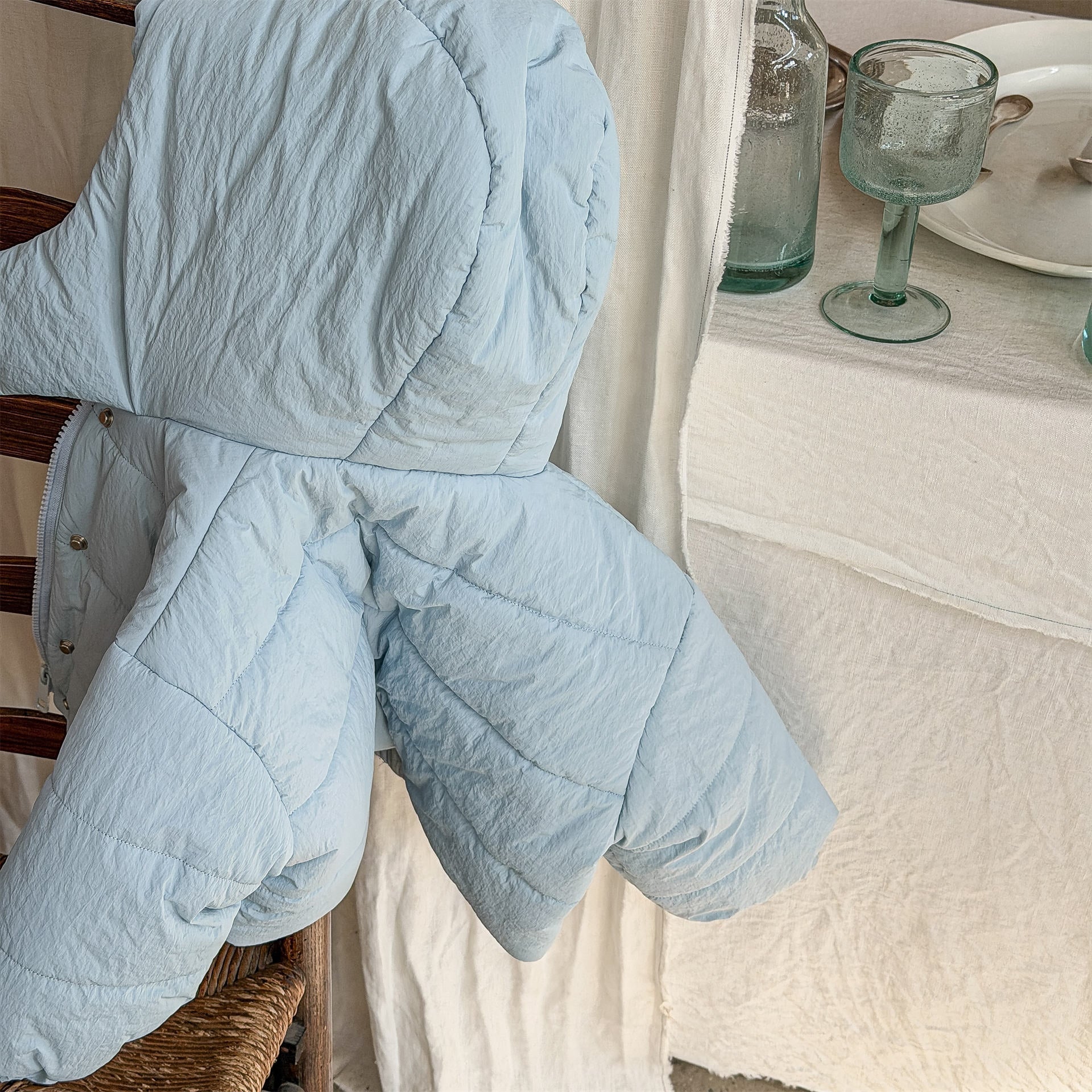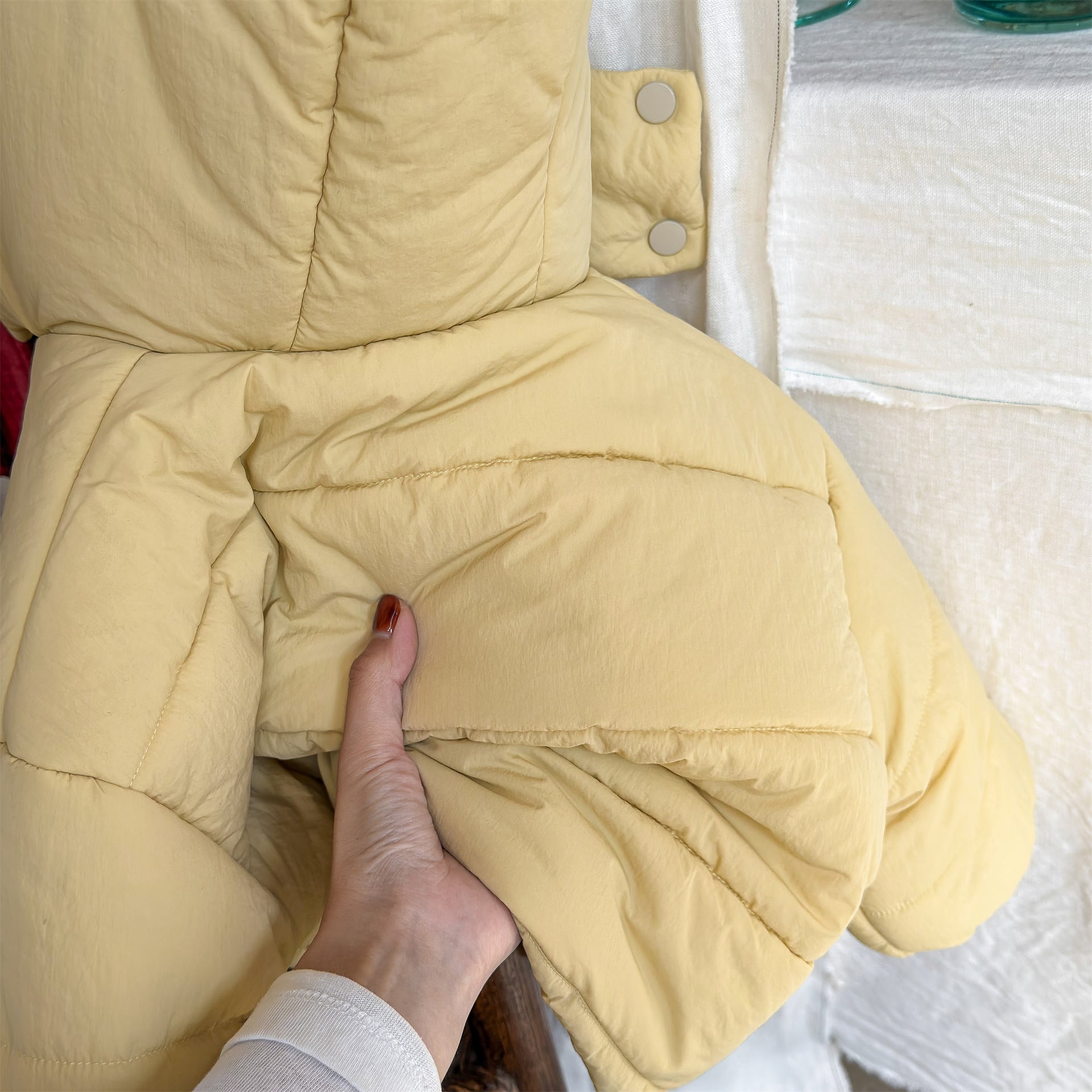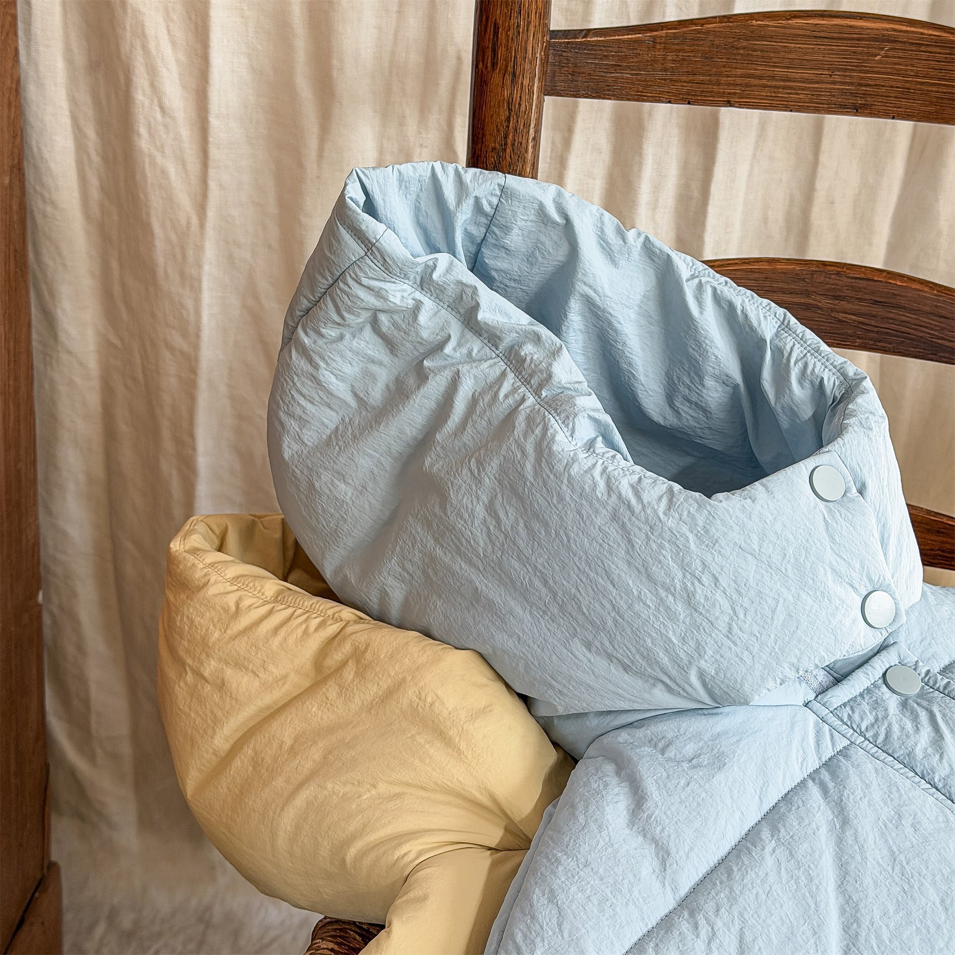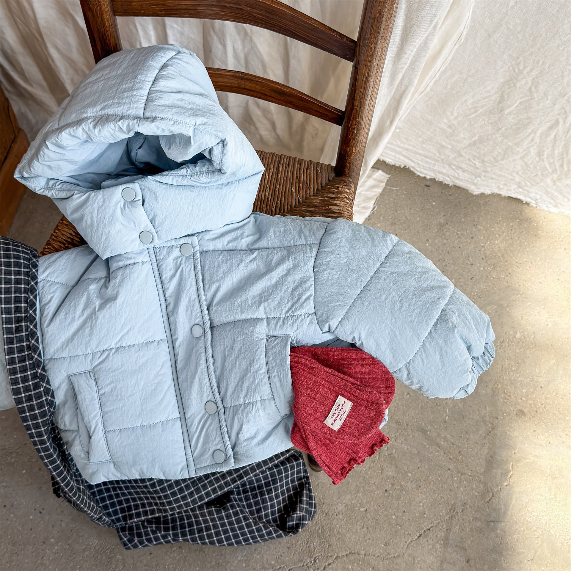 ふっくらとボリュームのある丸いフォルムが特徴的な、フード付きの中綿ボンバージャケットです。たっぷりと詰め込まれた中綿が優れた断熱効果を発揮し、厳しい冬の寒さからお子様を暖かく守り抜きます。最新のトレンドを取り入れたシンプルかつ洗練されたデザインは、男の子にも女の子にも似合うユニセックスな仕様で、首元をしっかりと覆うフードが防寒性をさらに高めています。デイリーな通学から冬のアウトドアまで幅広く活躍する、軽やかさと圧倒的な暖かさを両立した頼れるメインアウターです。