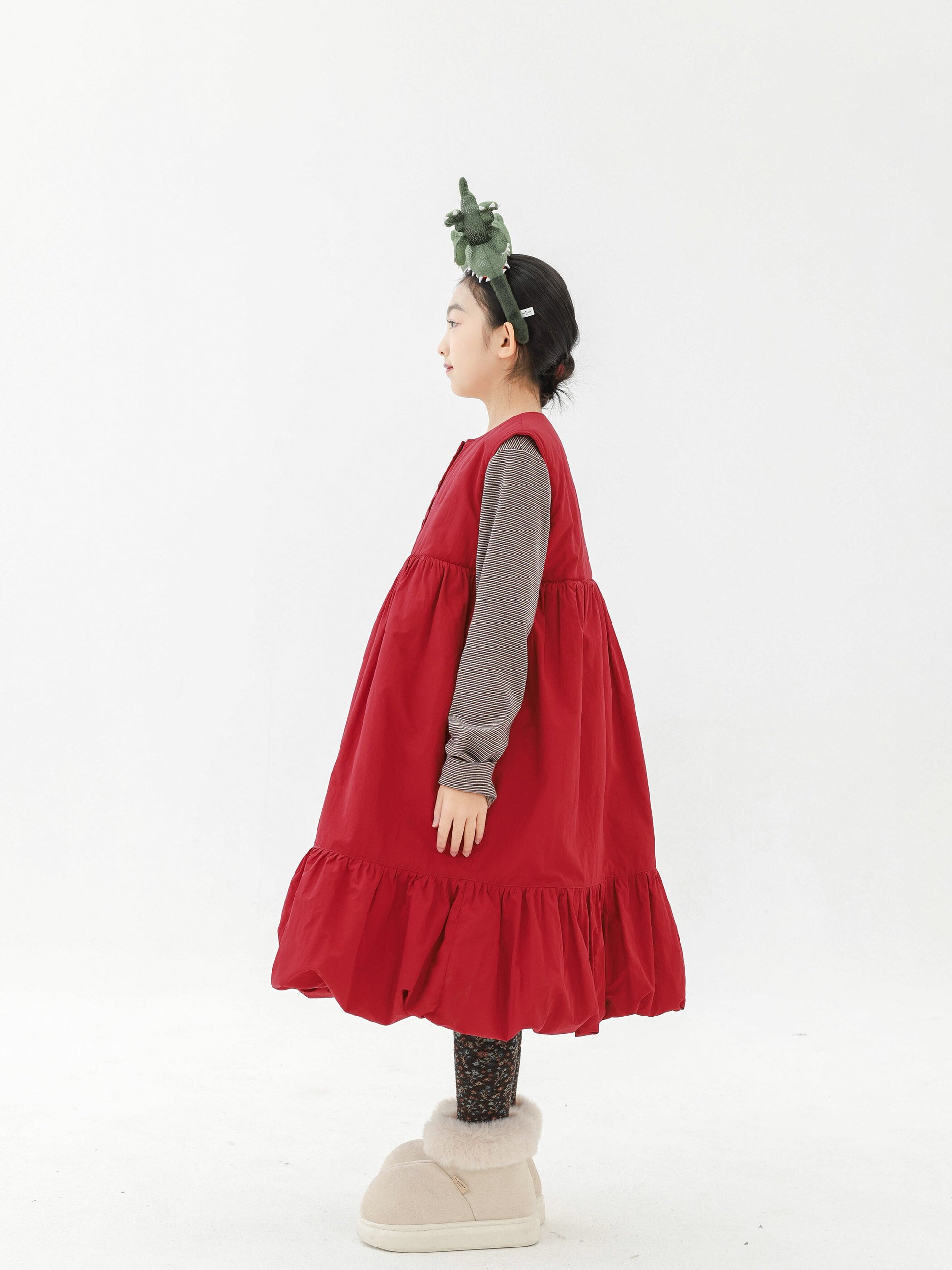 ふんわり中綿で暖かさを閉じ込めた、バルーン裾のスイート・サンドレス