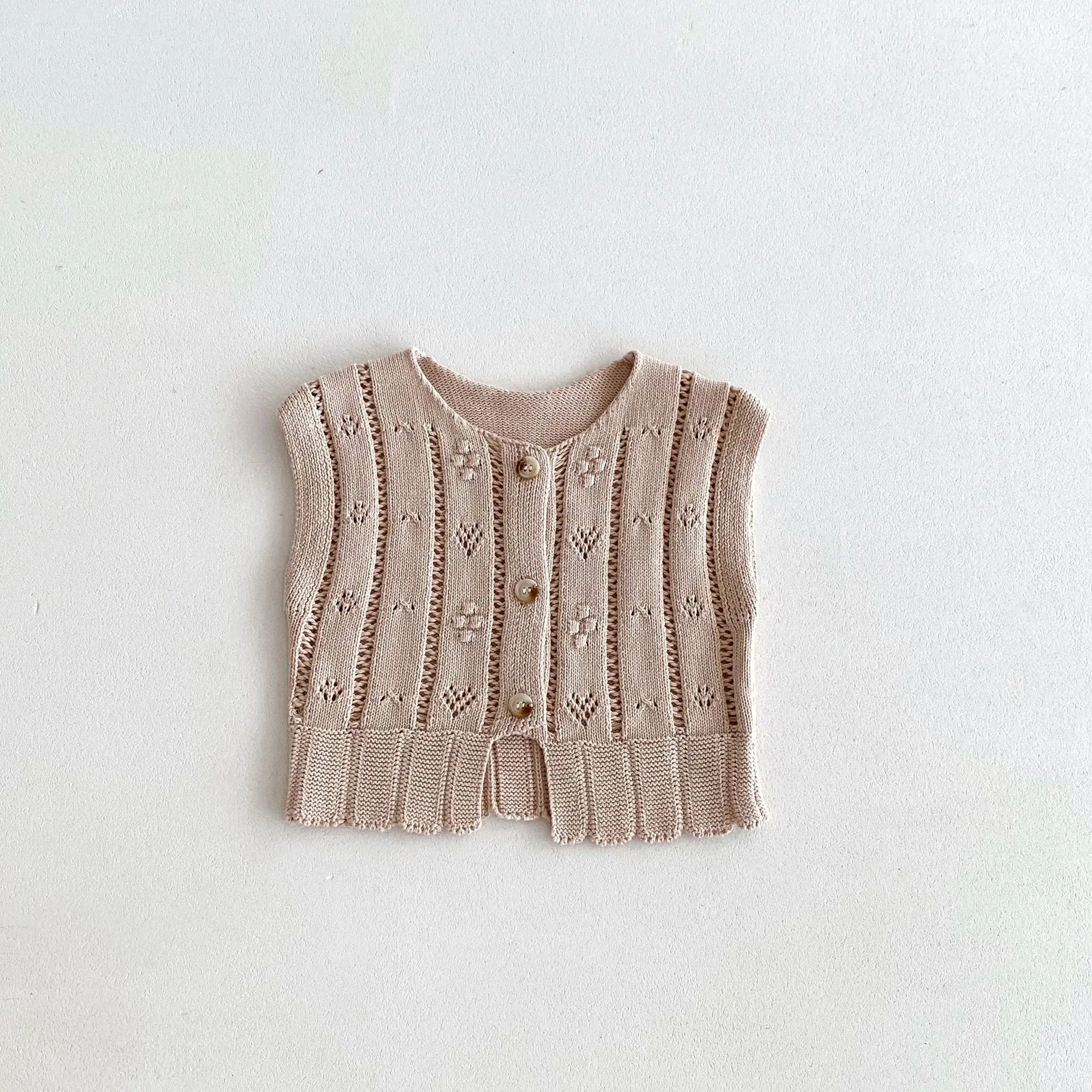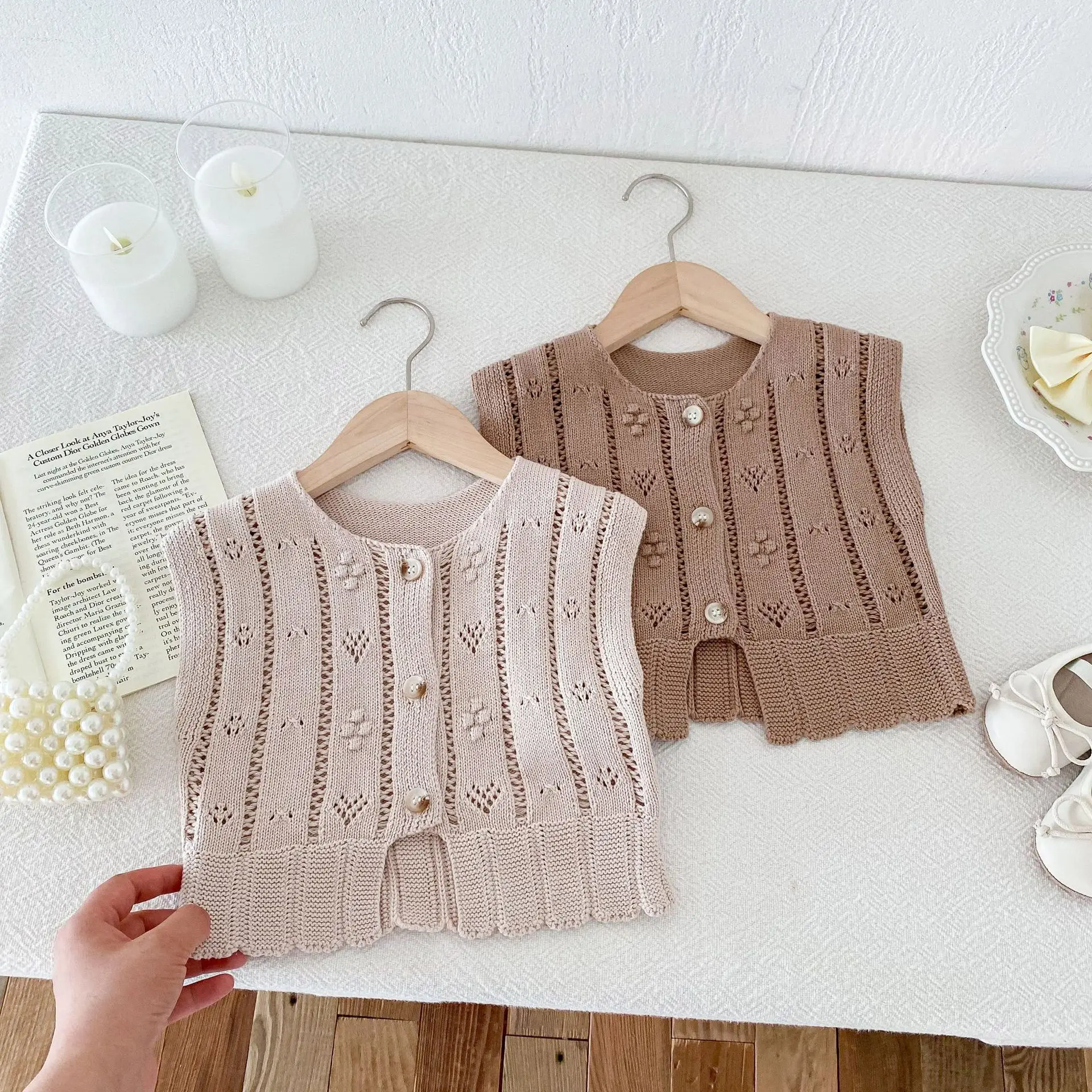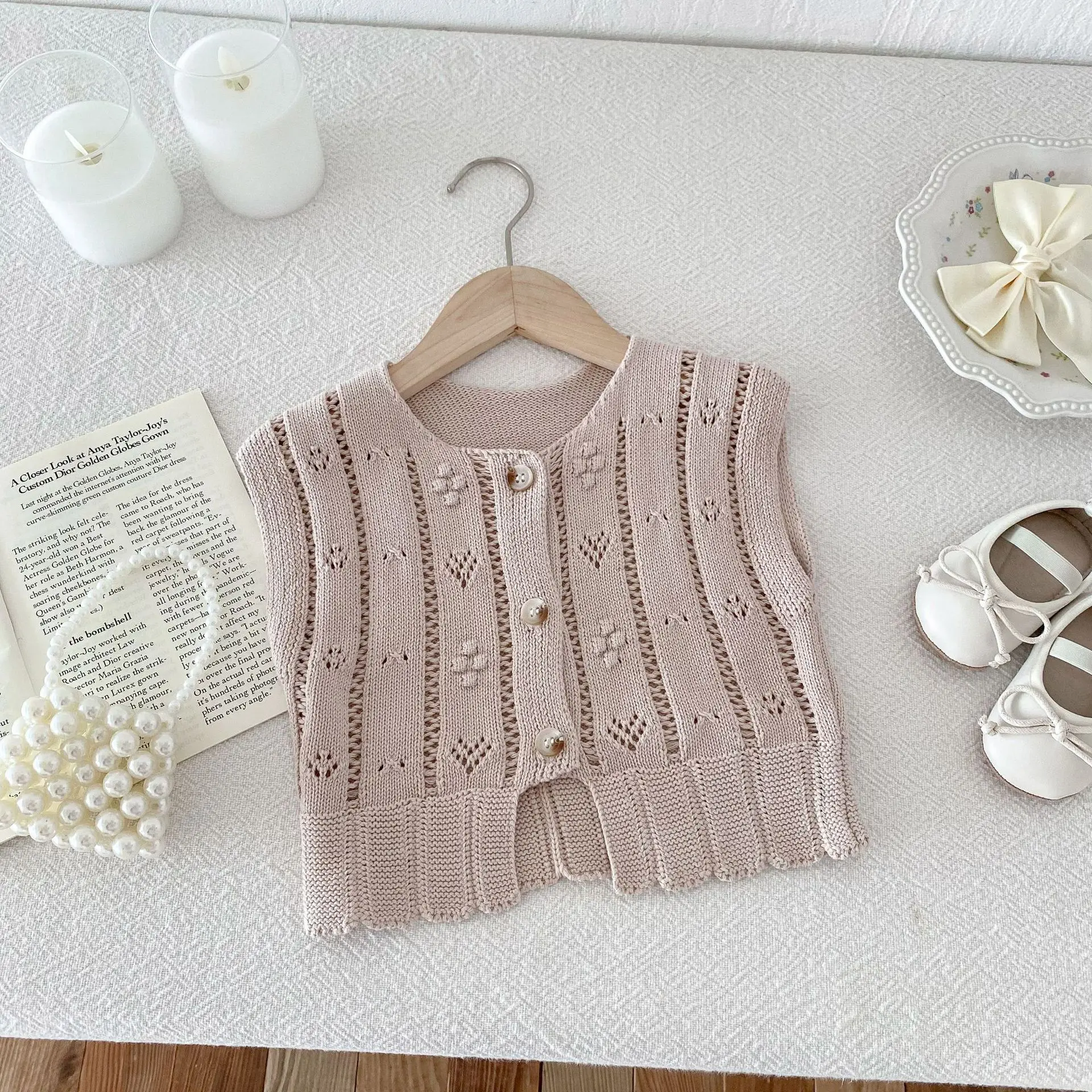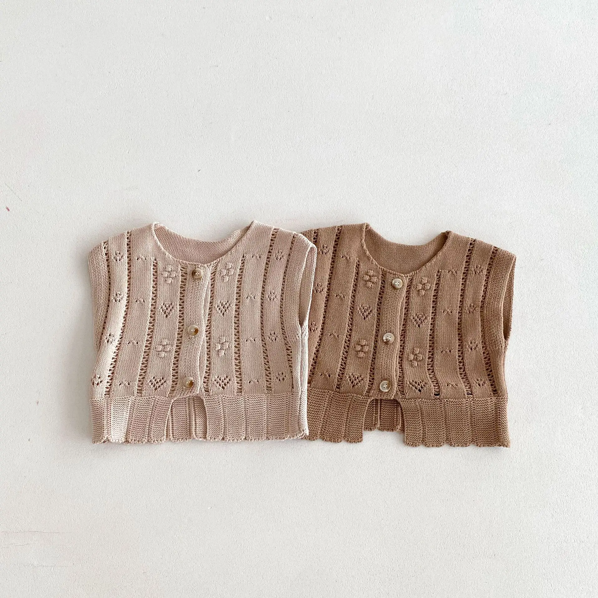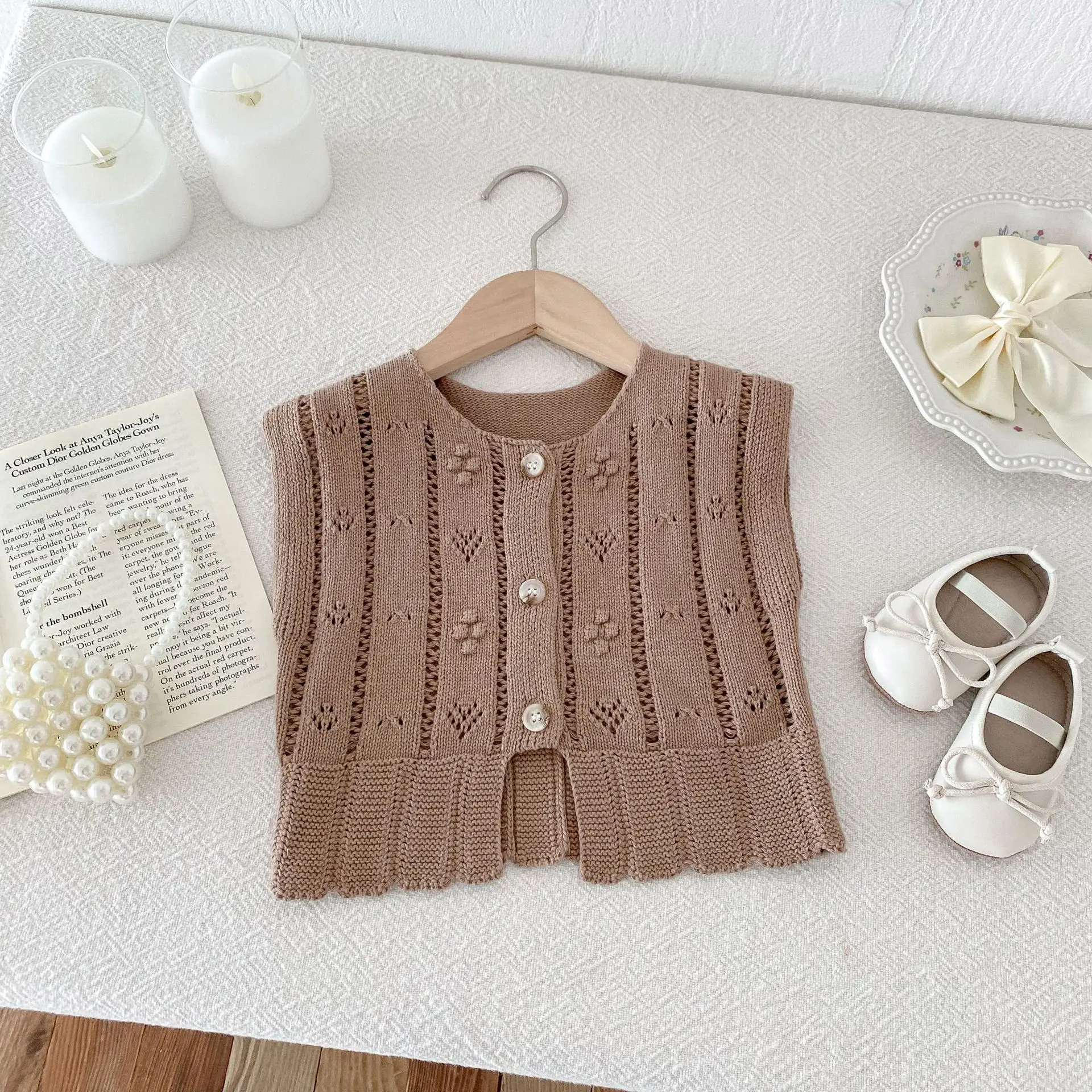キッズベスト レースニット 前あきショートベスト 2カラー【mh0006666】