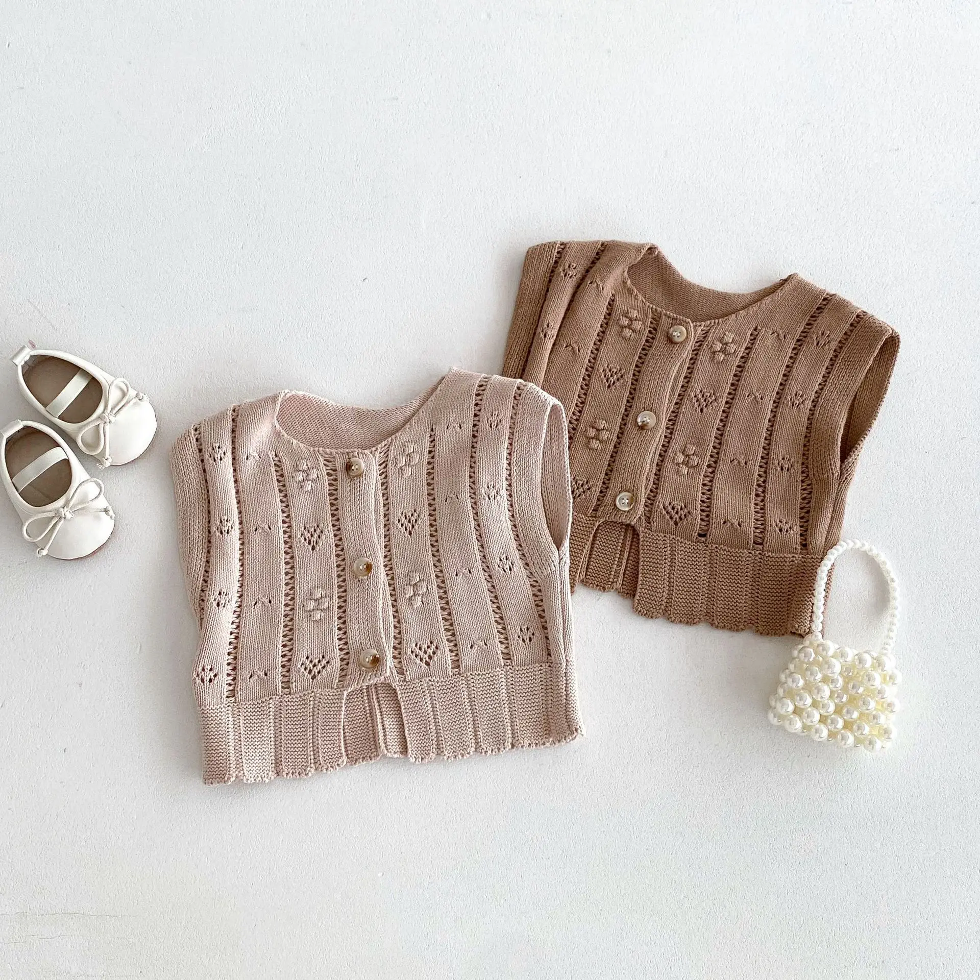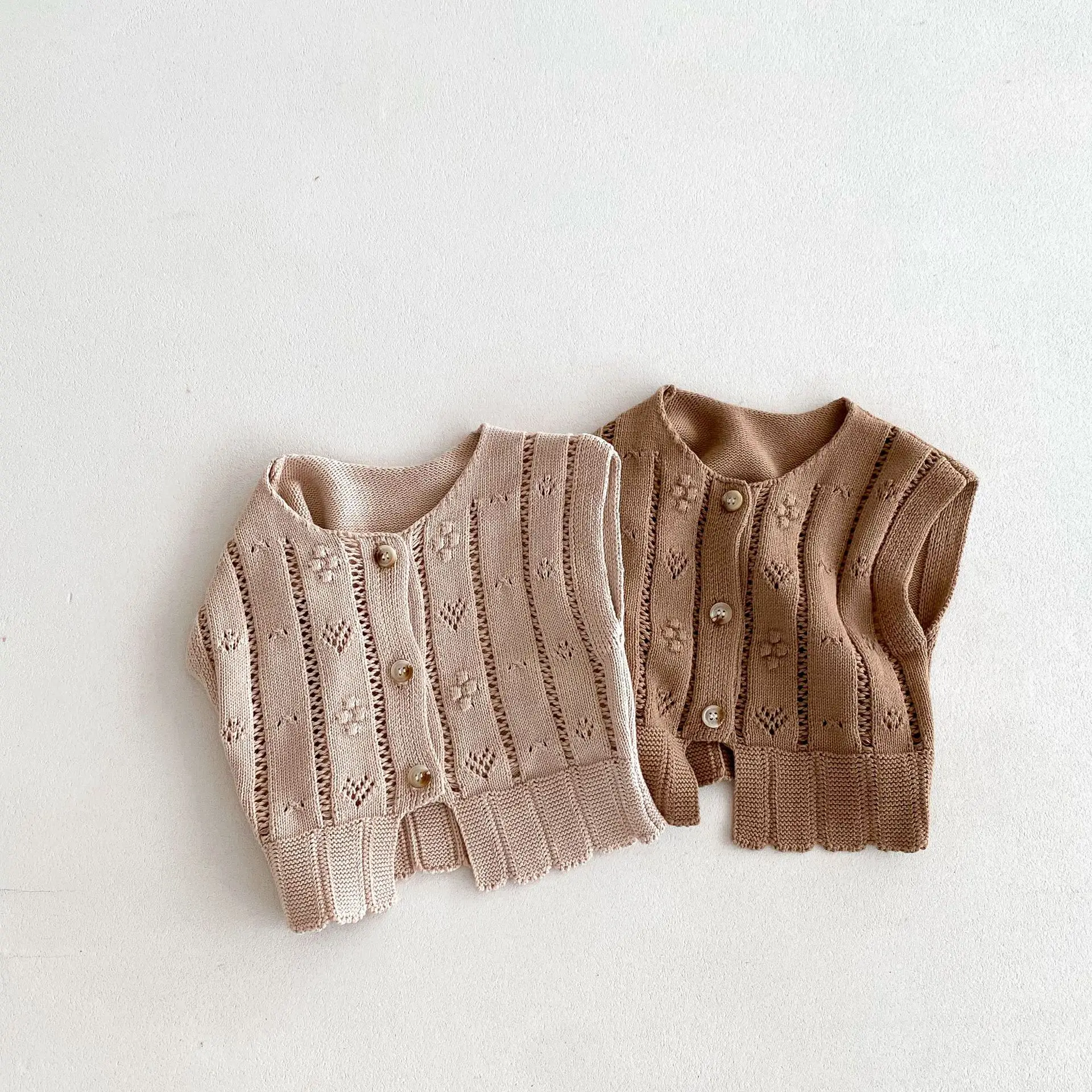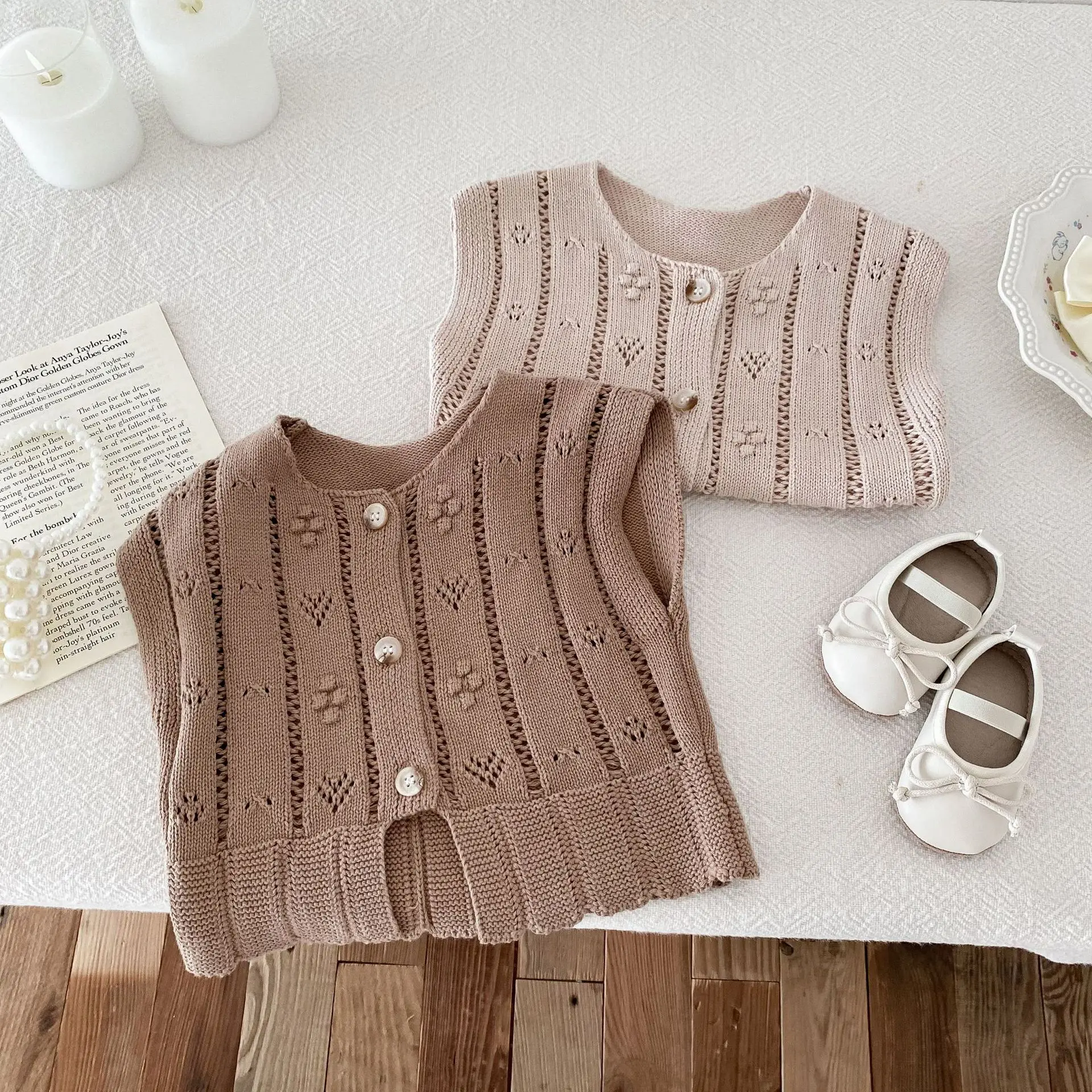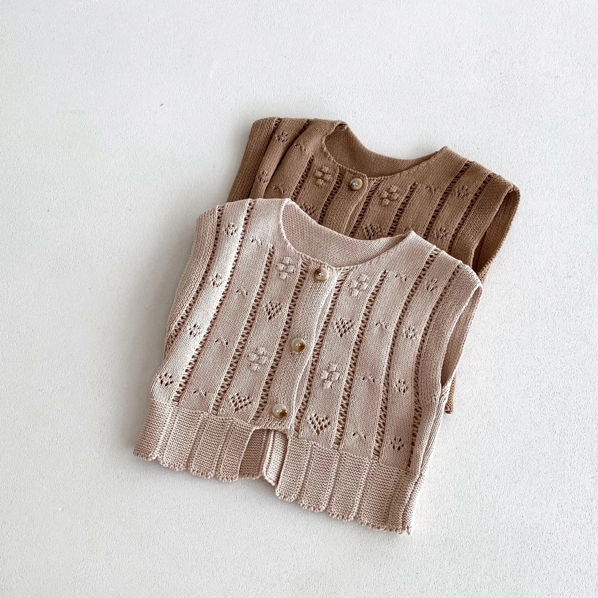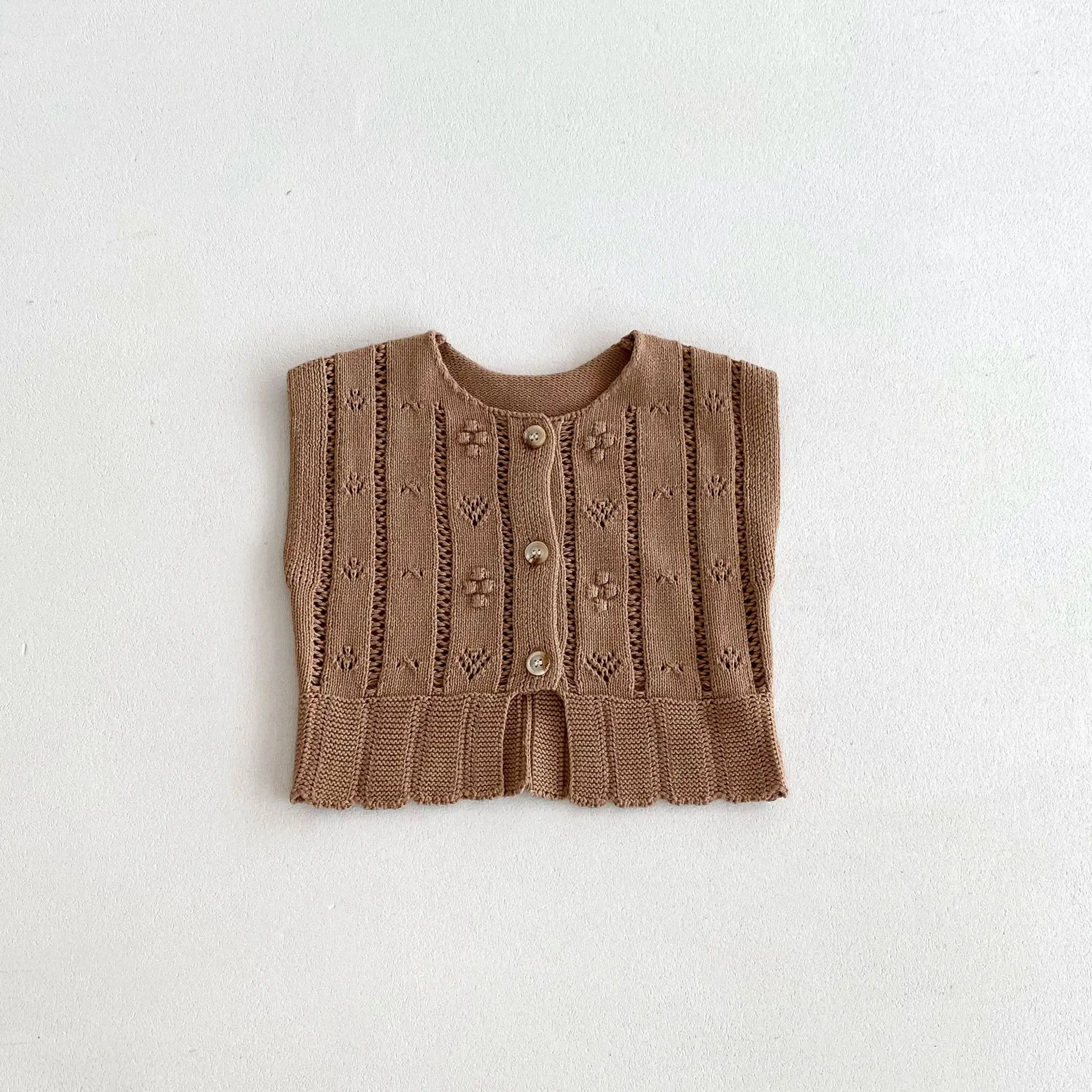 キッズベスト レースニット 前あきショートベスト 2カラー【mh0006666】