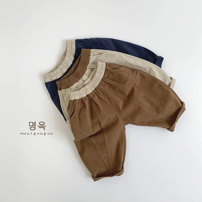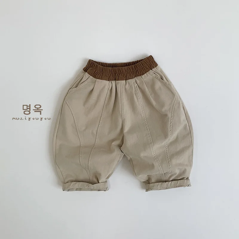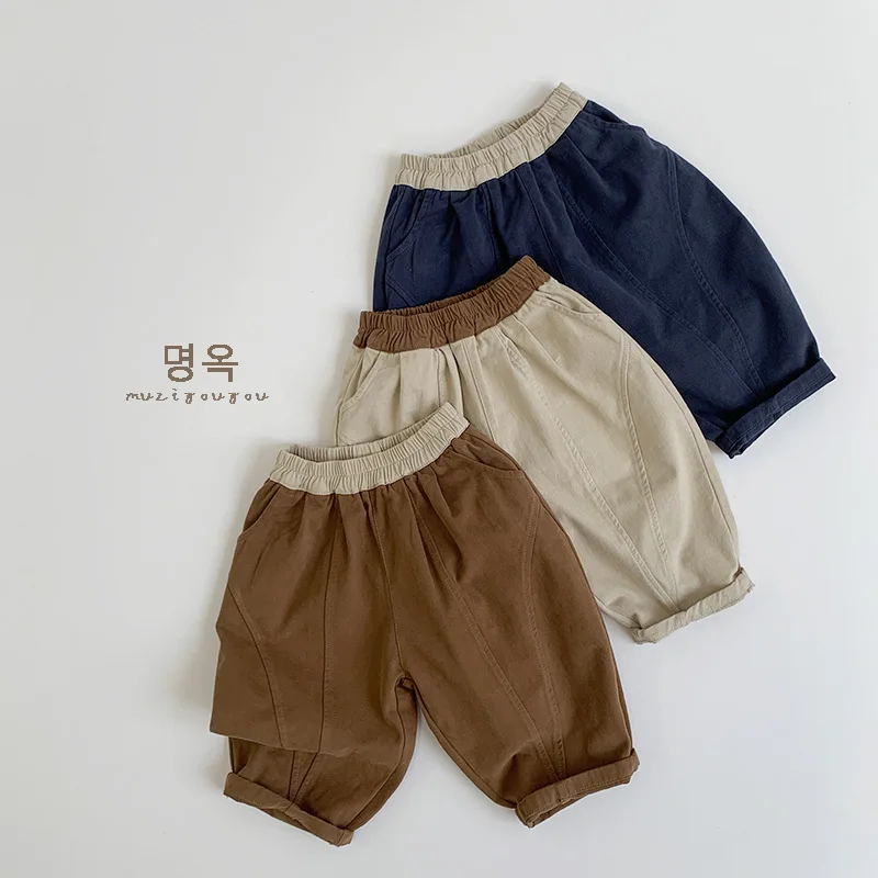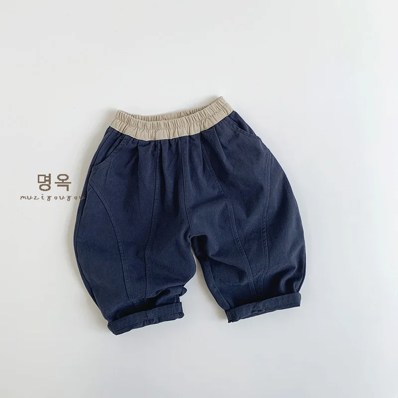 キッズパンツ ウエストパッチワーク切り替えロングルーズパンツ 3カラー【mh0006676】