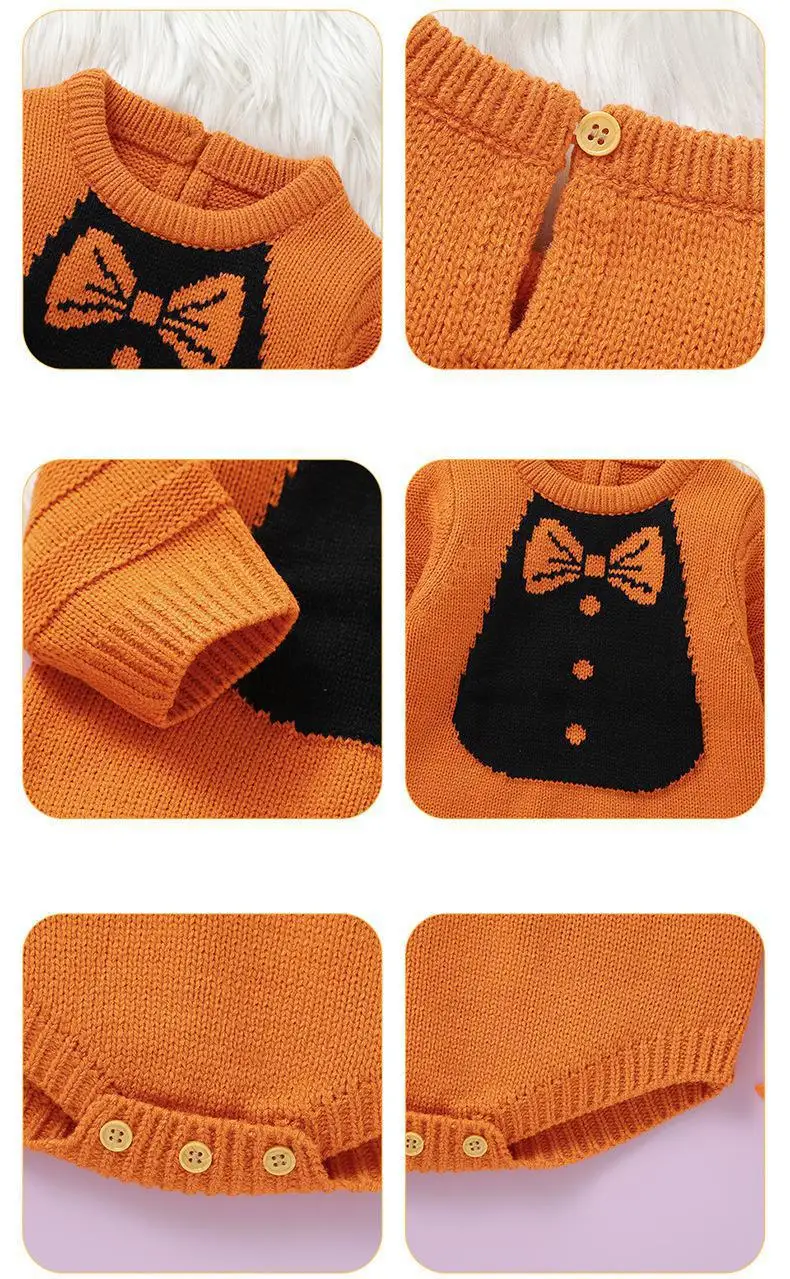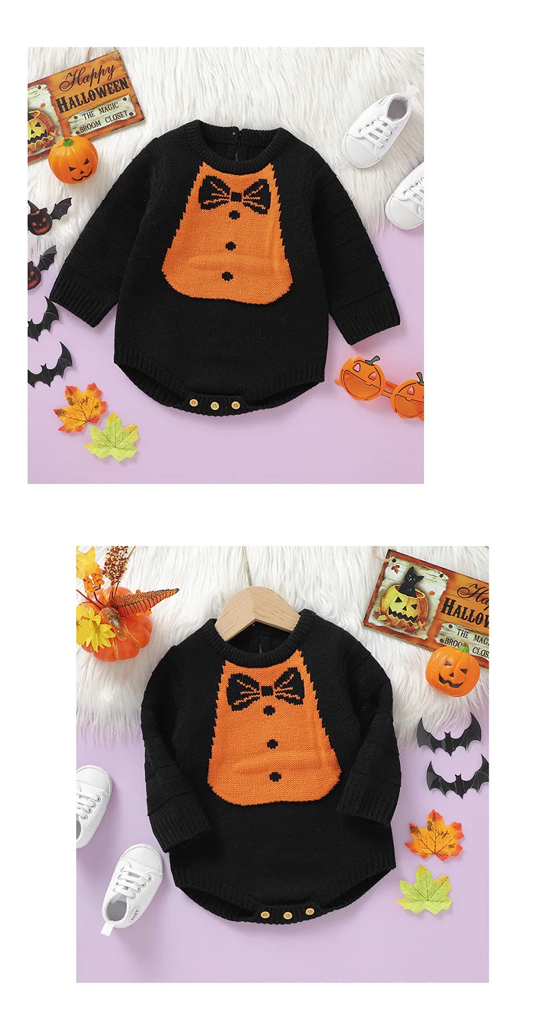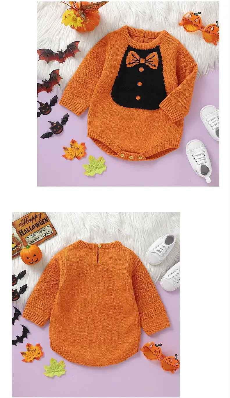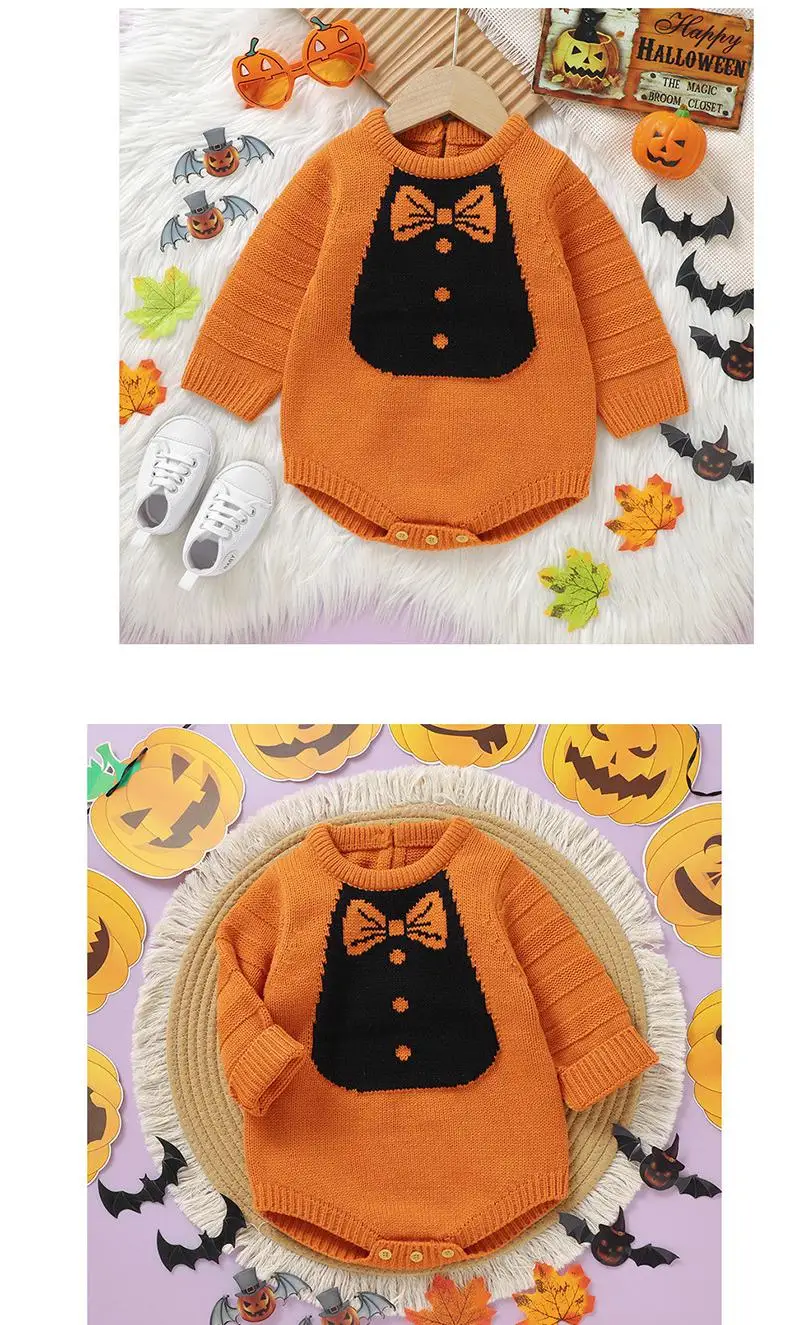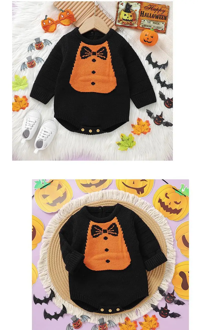 ベビーロンパース 蝶ネクタイ柄ニット長袖ボディスーツ ハロウィンHalloween 👻 2カラー【mh0006798】