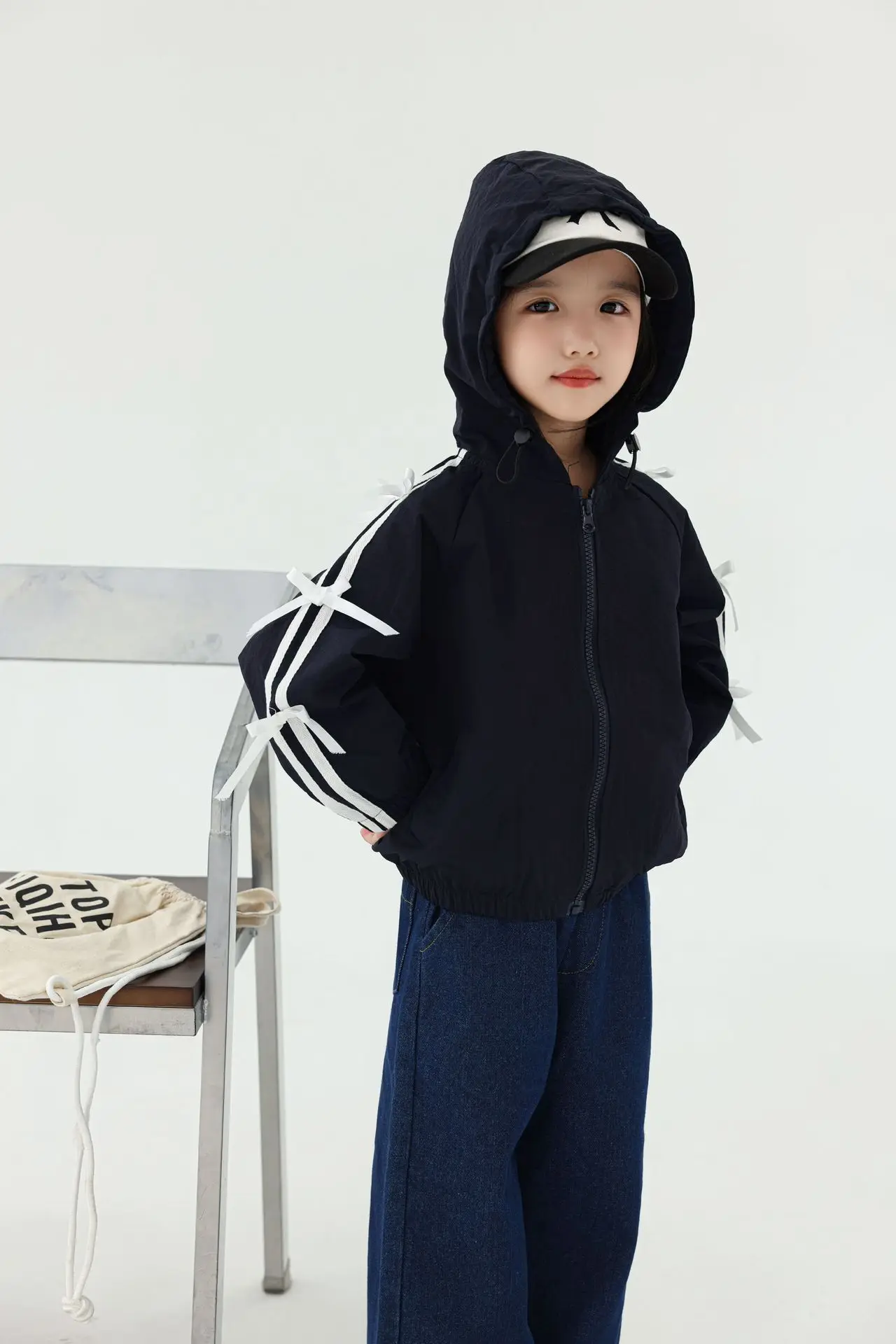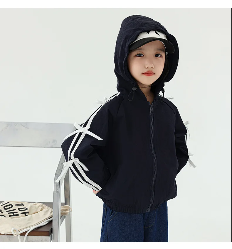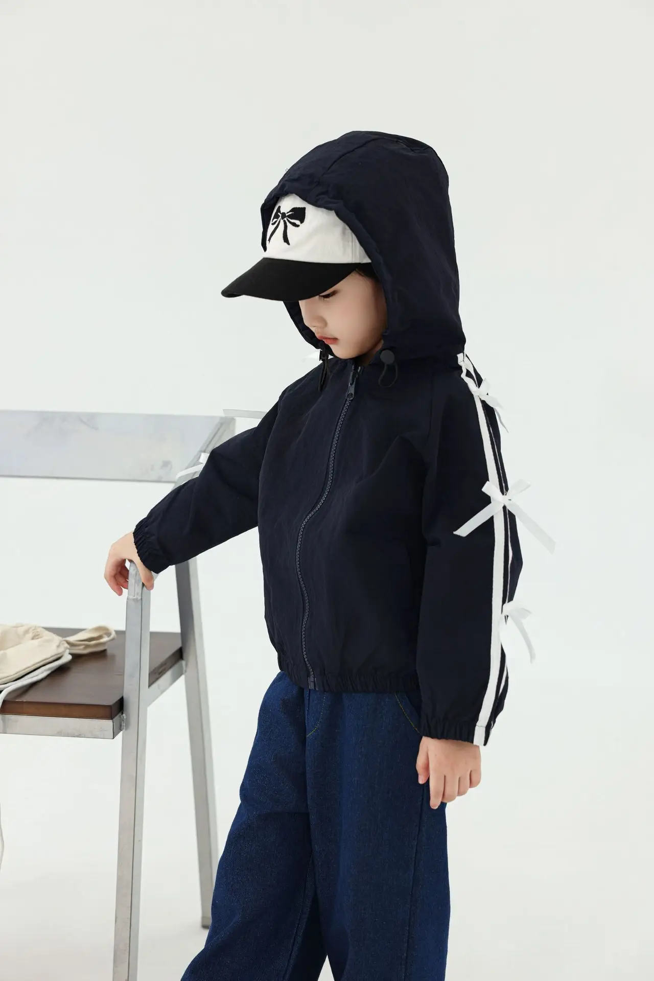 #キッズトップス #フーディ #ジップアップパーカー #サイドリボン #カジュアルコーデ #子供服
