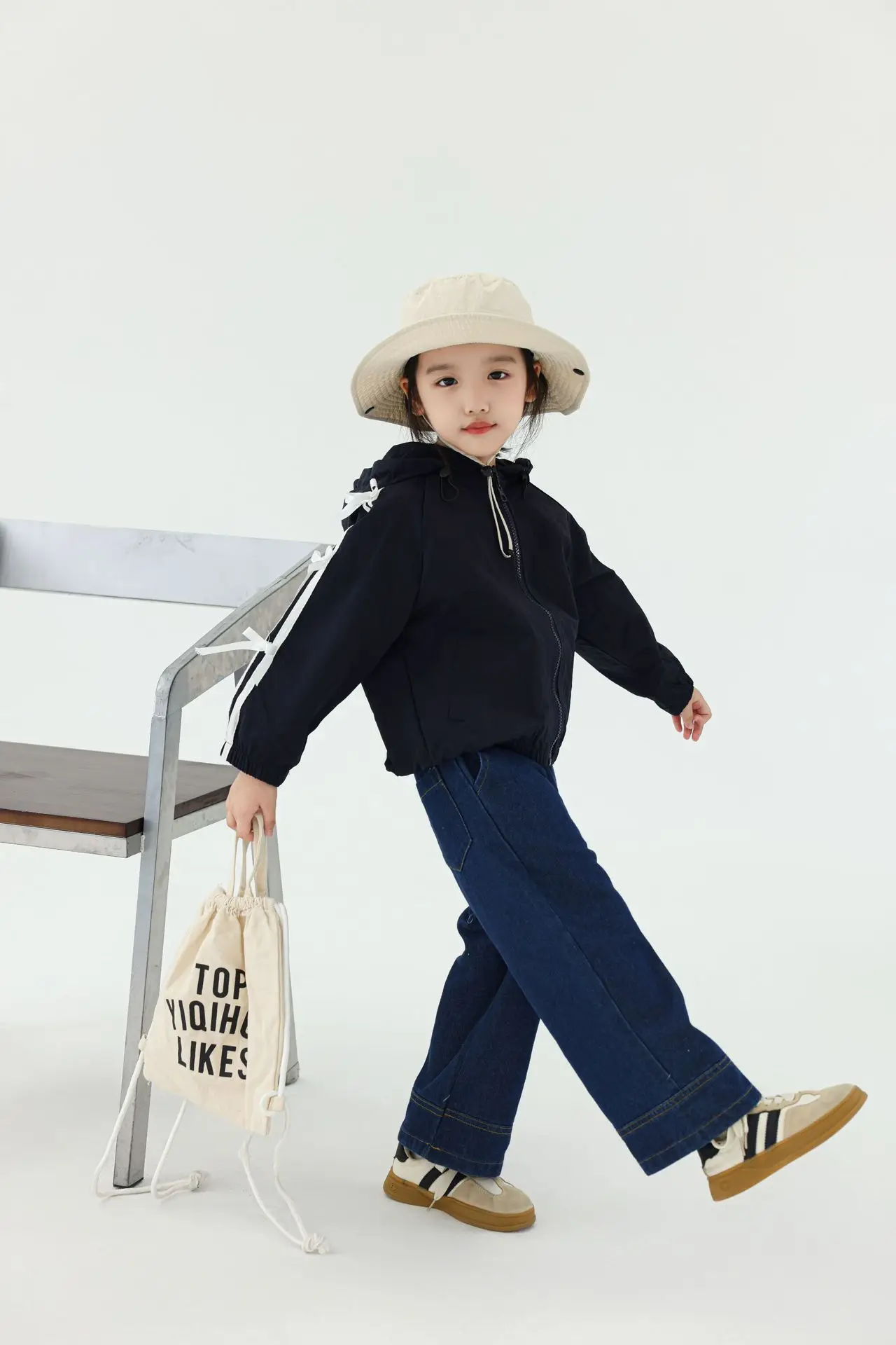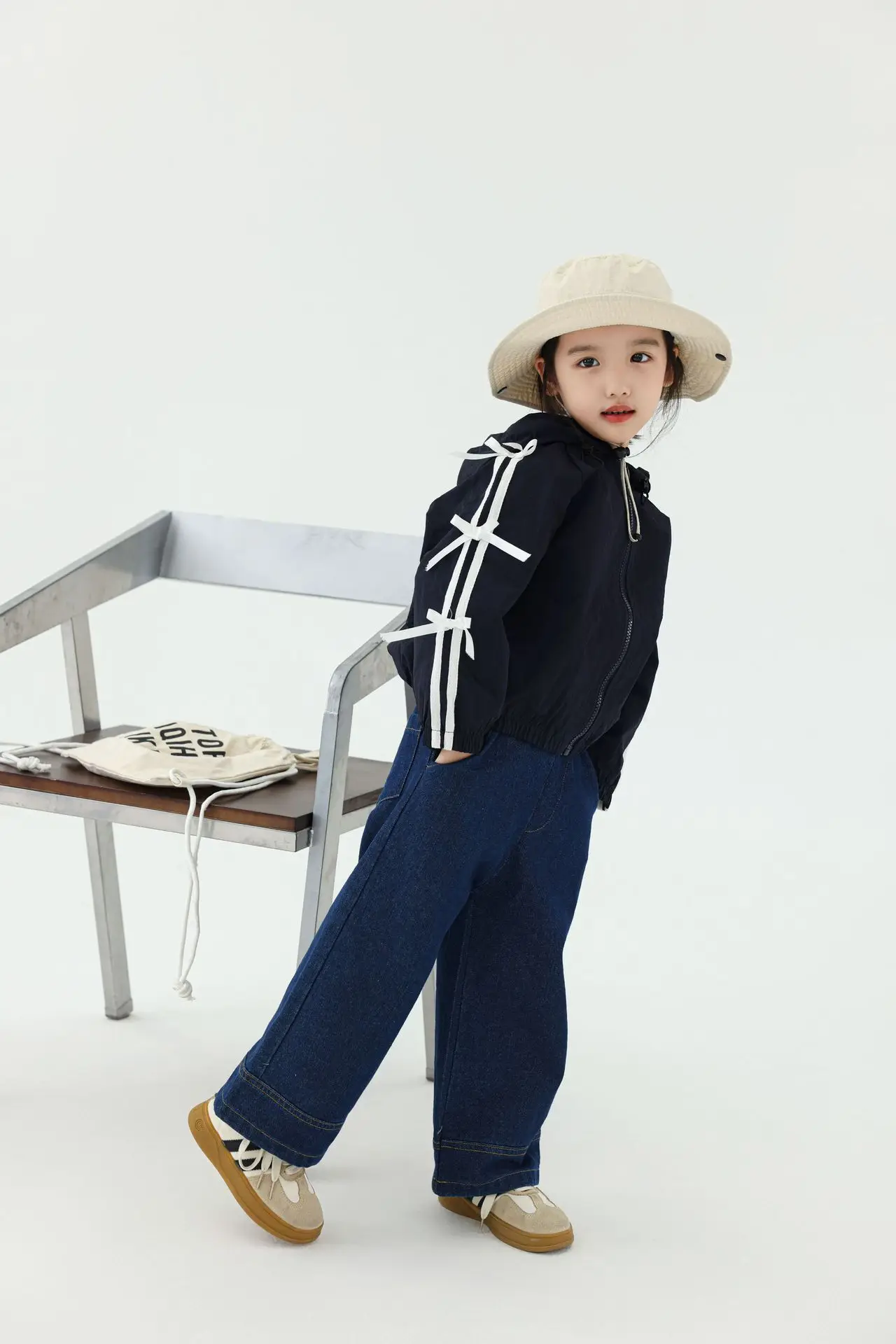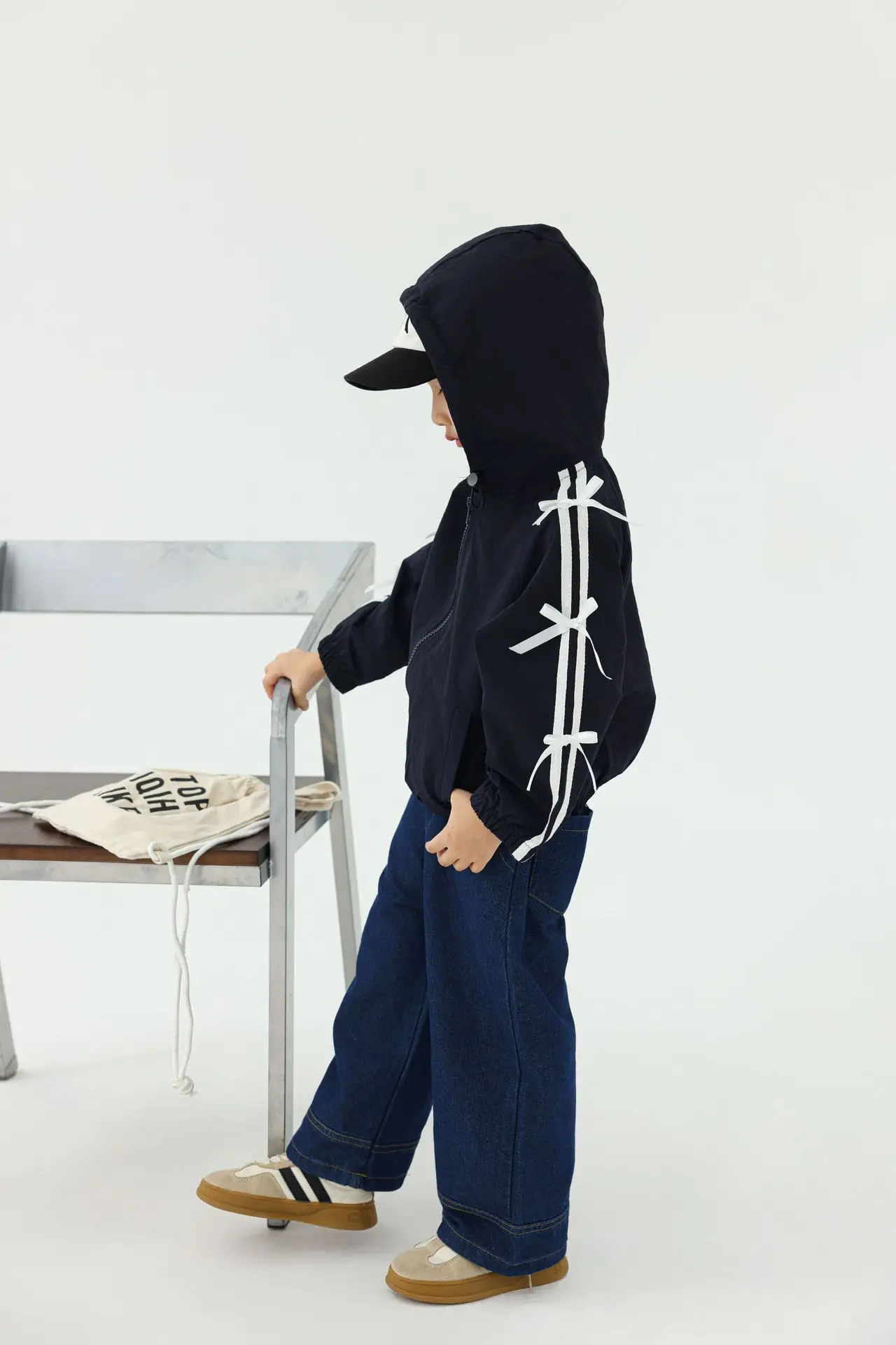 #キッズトップス #フーディ #ジップアップパーカー #サイドリボン #カジュアルコーデ #子供服