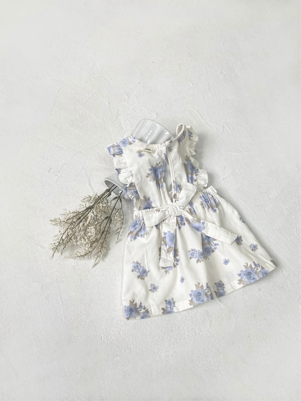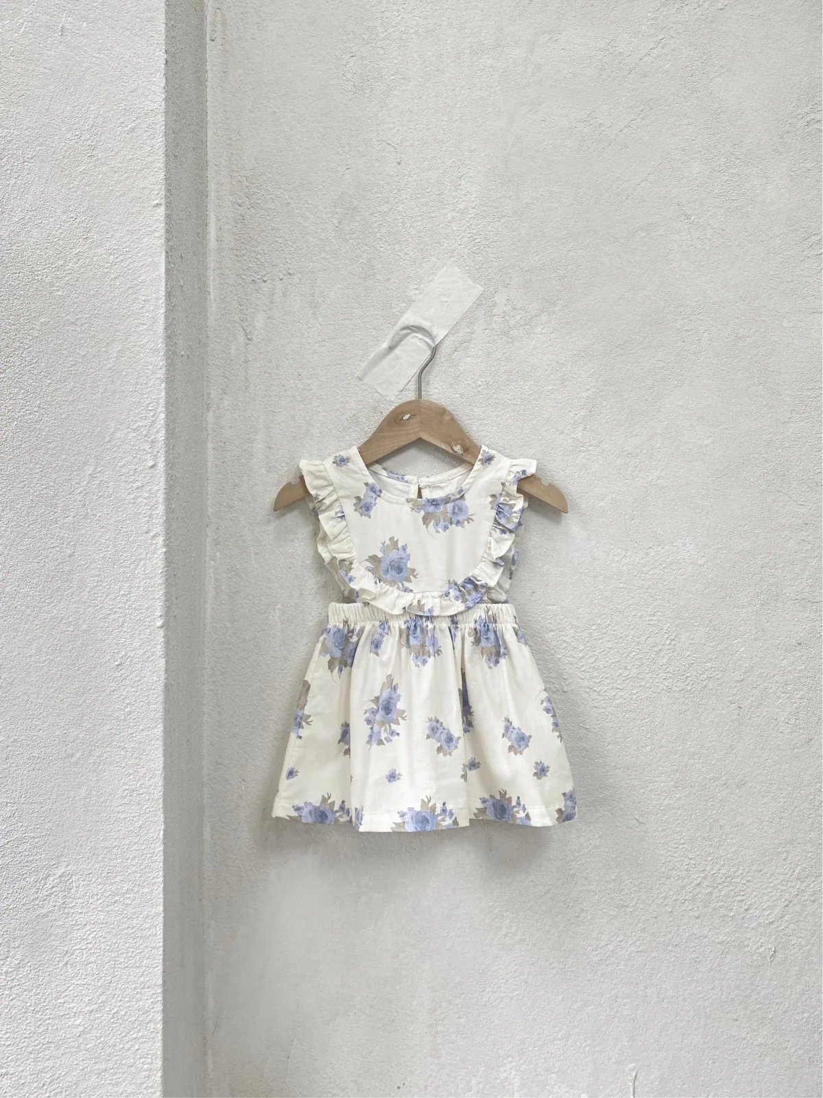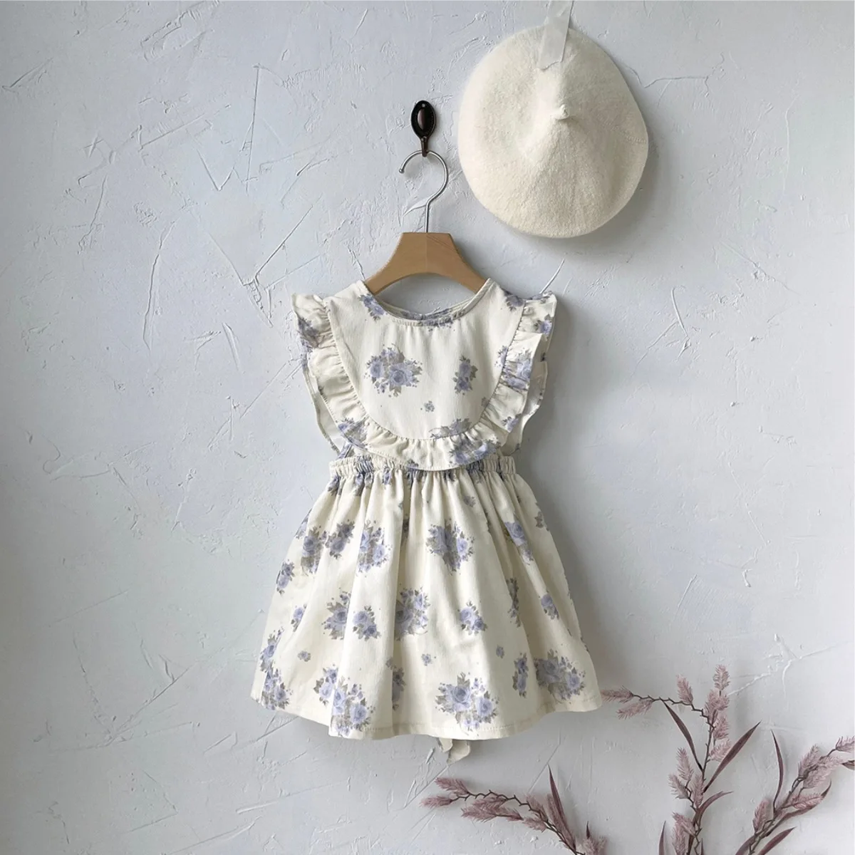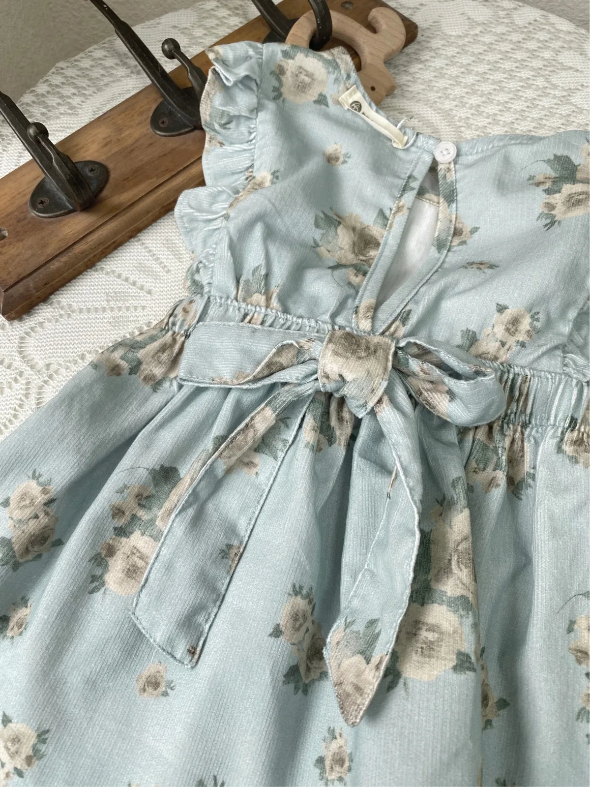 ベビーワンピース フラワープリントフリルショルダーノースリーブコーデュロイエプロンドレスワンピース 2カラー【mh0006955】