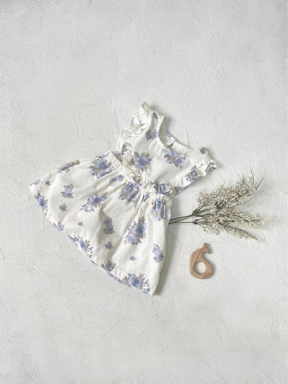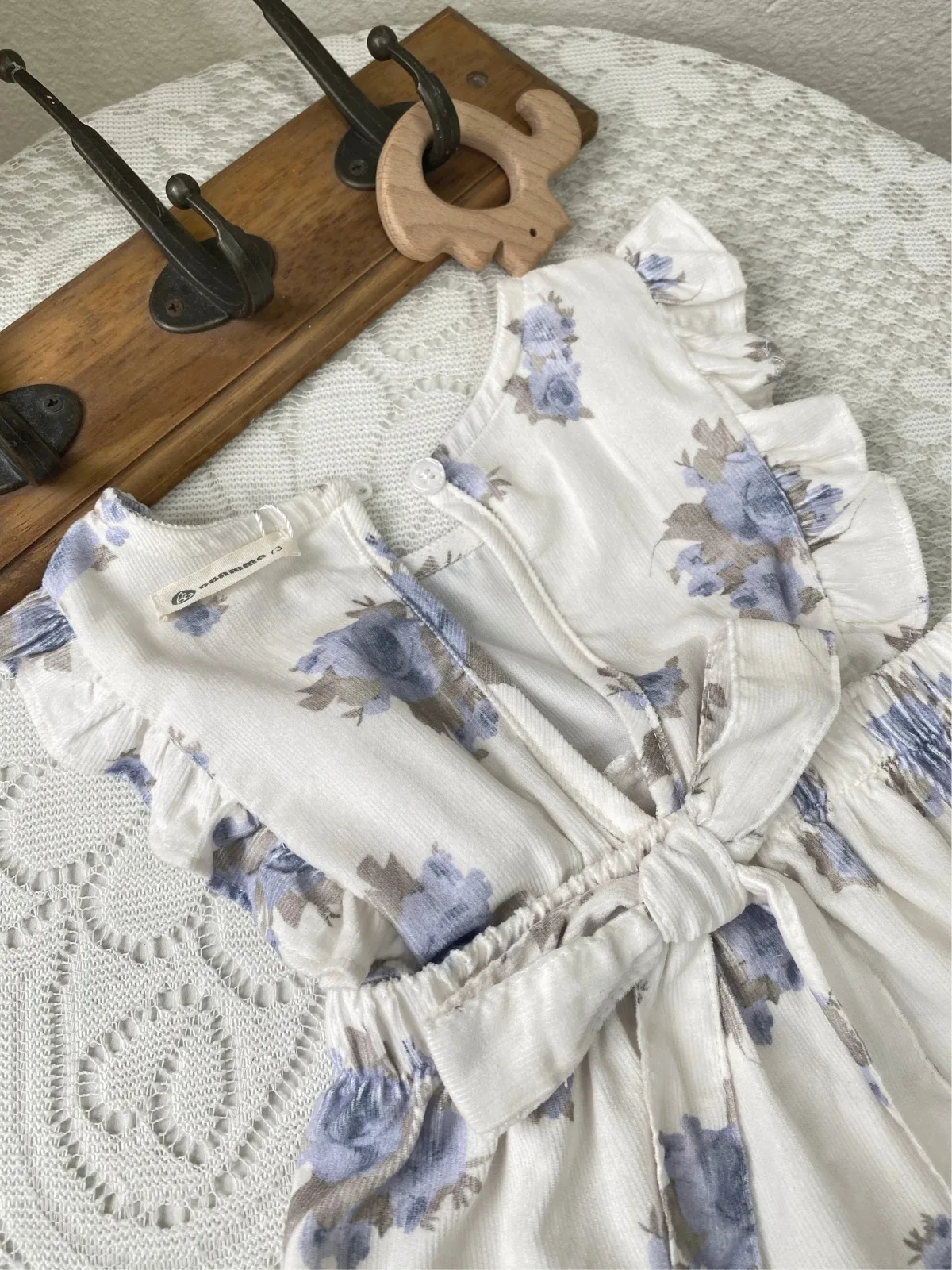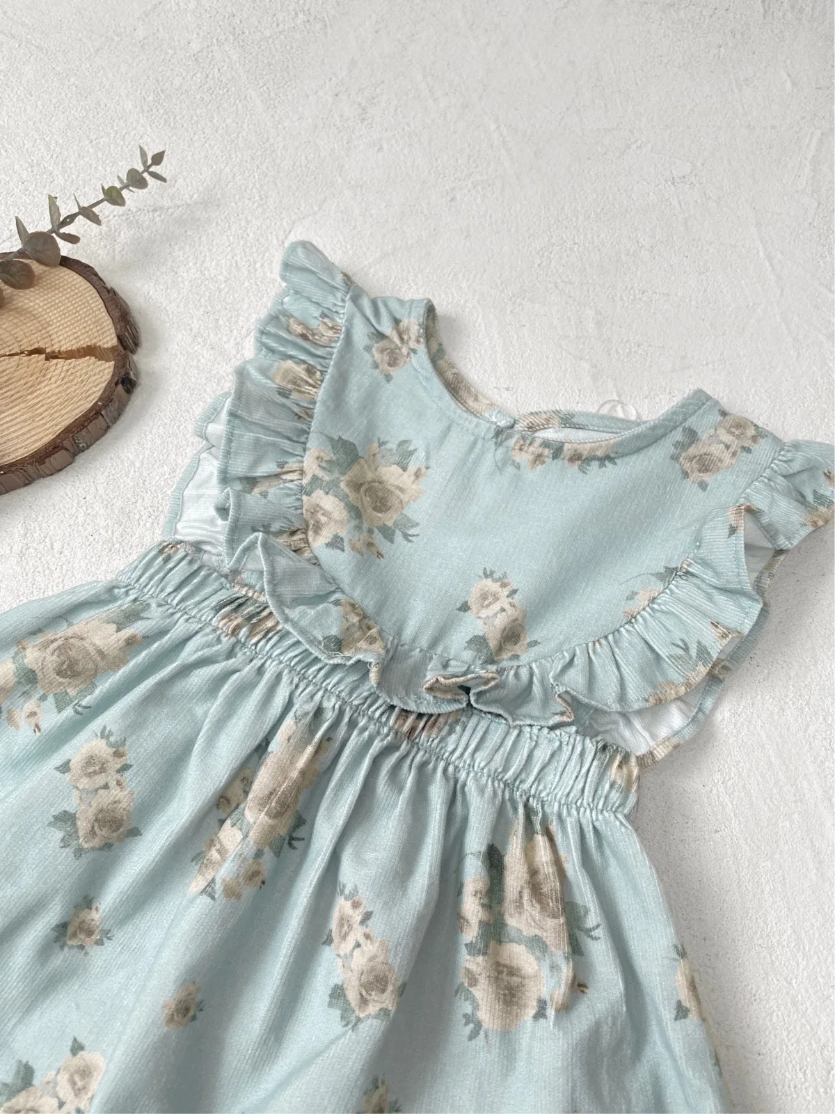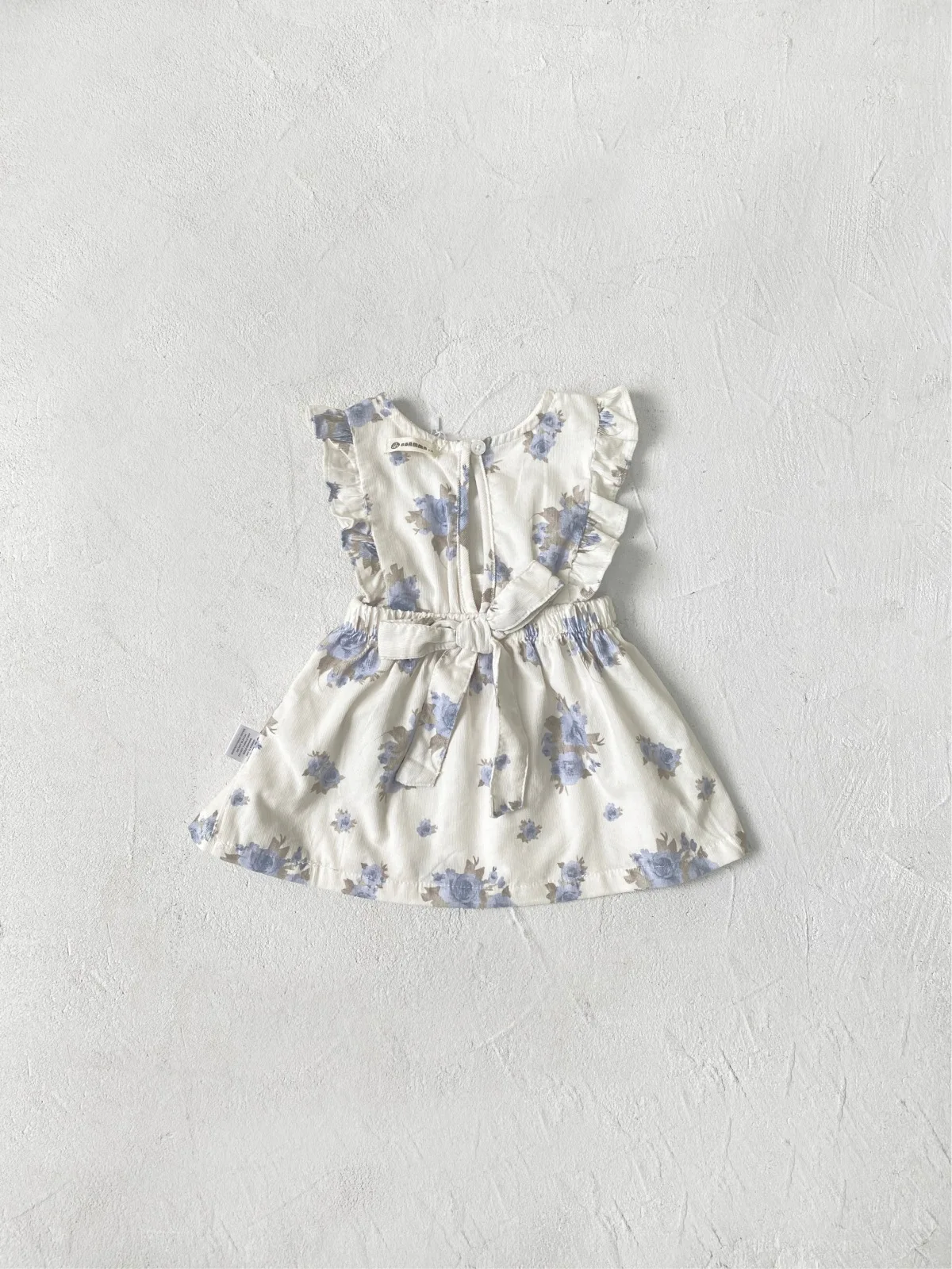 ベビーワンピース フラワープリントフリルショルダーノースリーブコーデュロイエプロンドレスワンピース 2カラー【mh0006955】