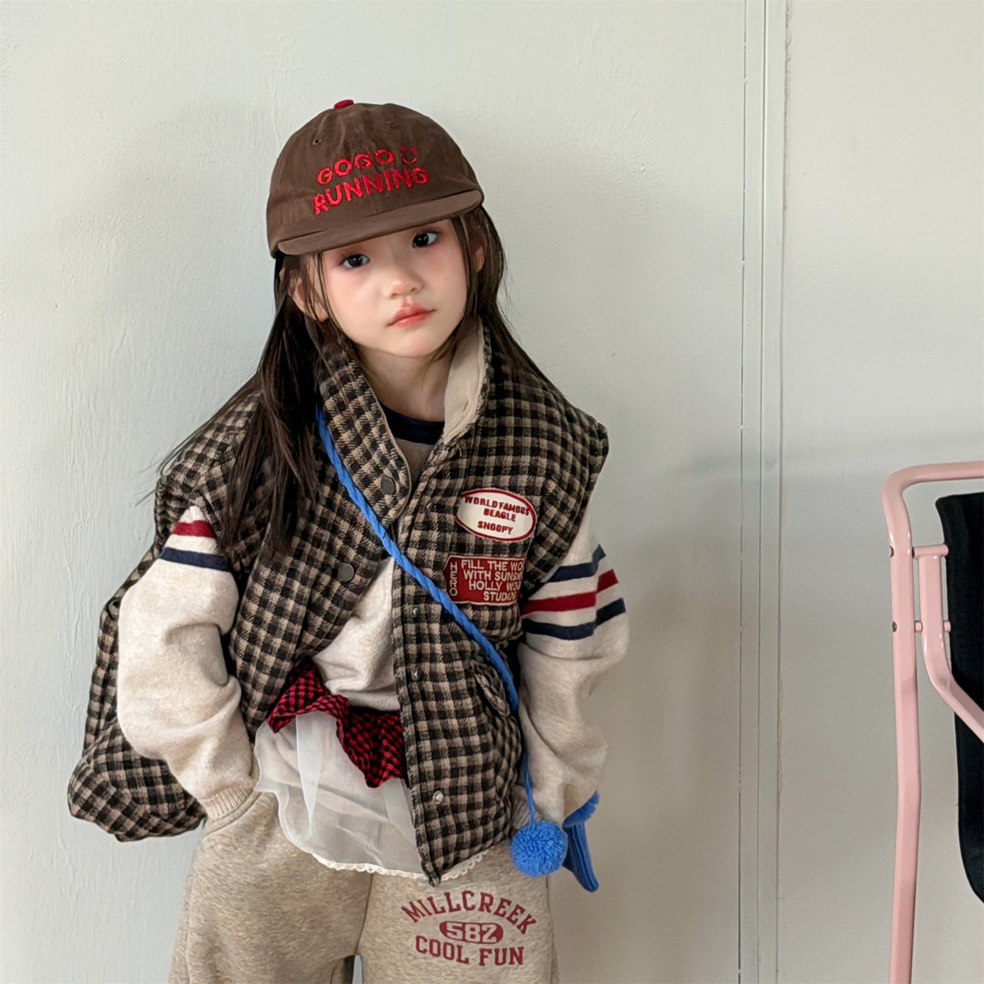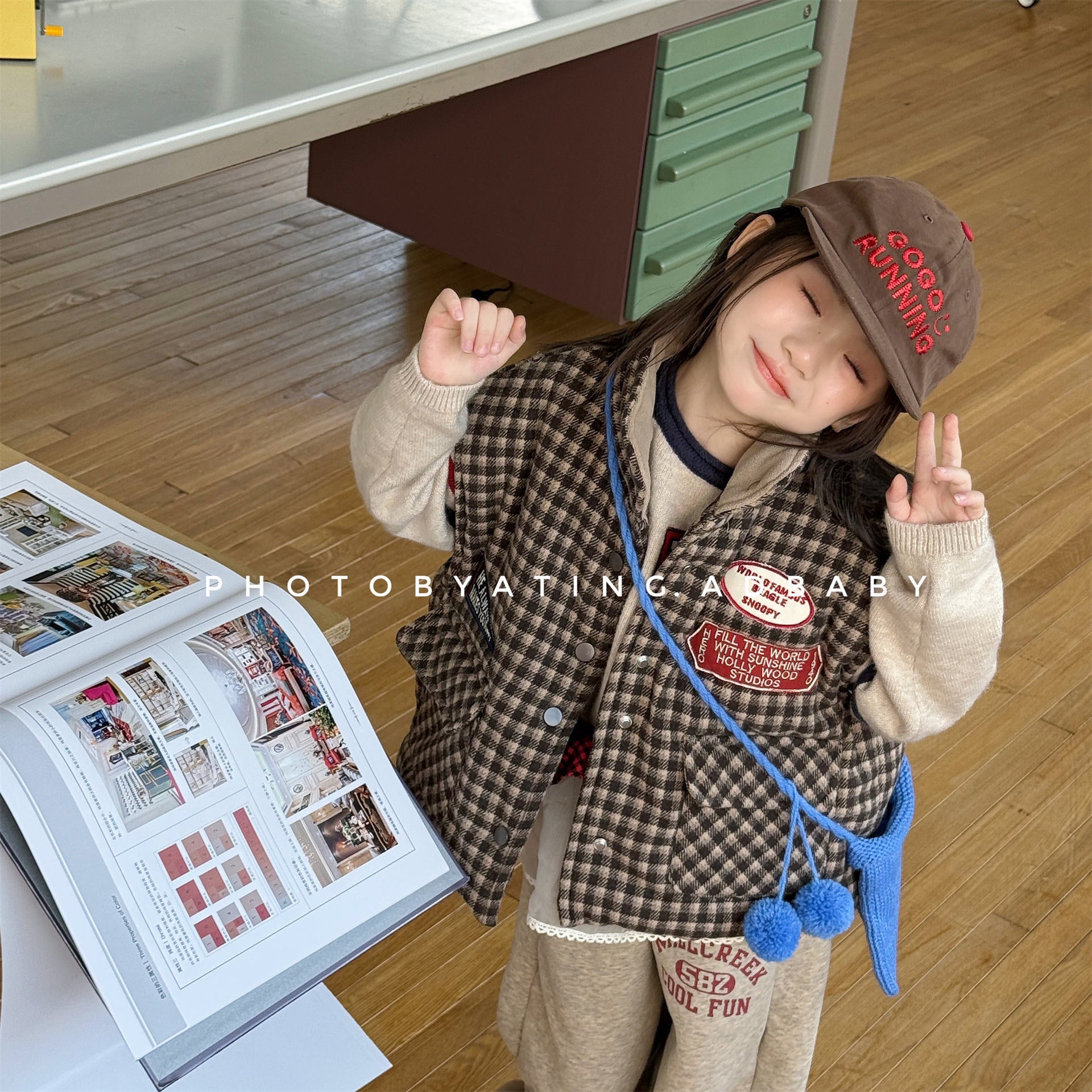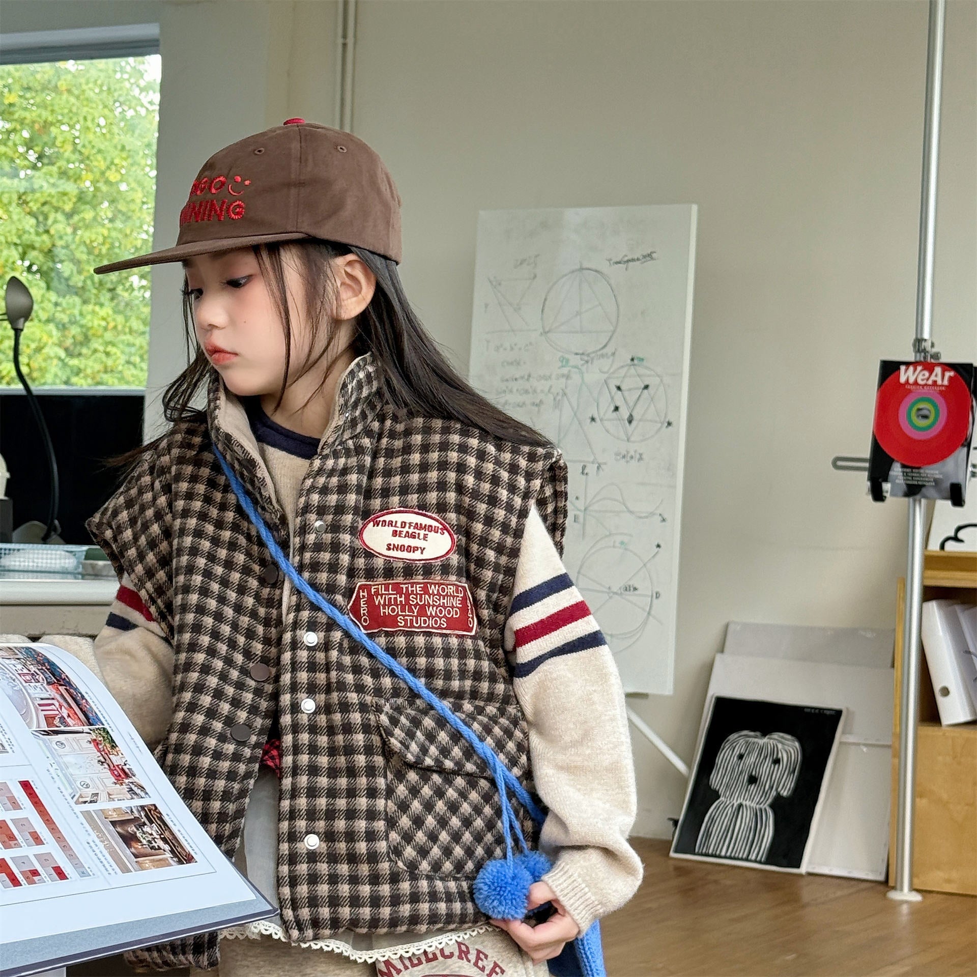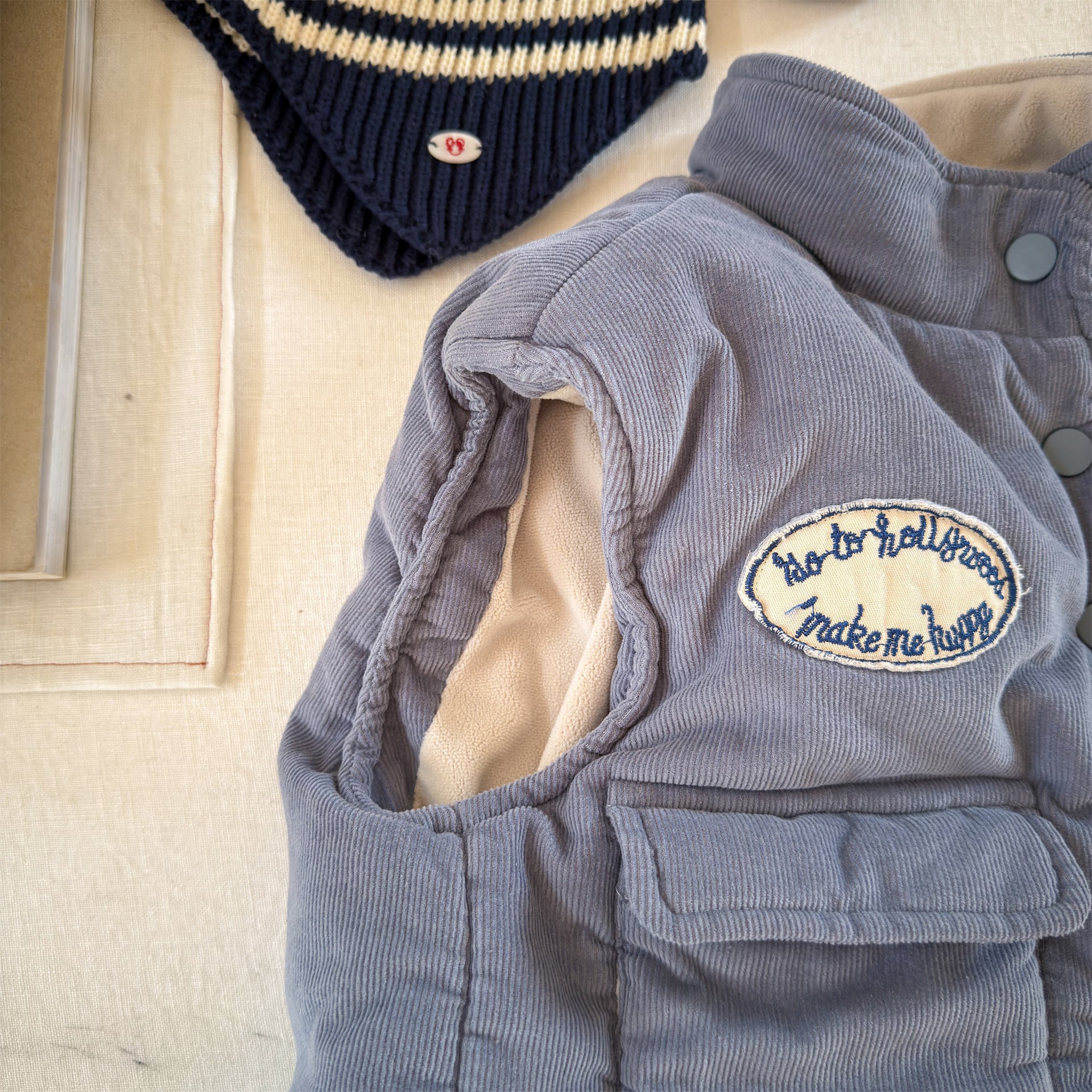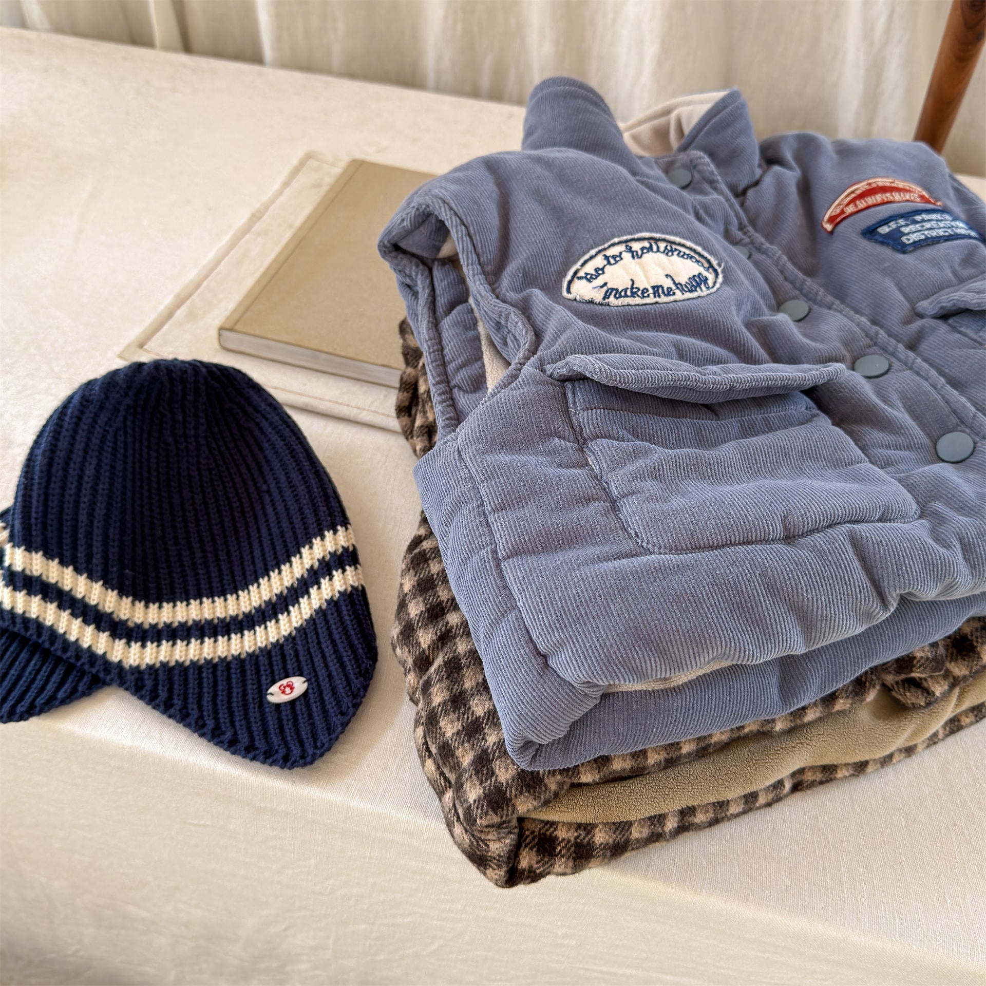 マットな質感の表地に、保温性に優れた中綿と柔らかな裏フリースを組み合わせた、機能的なフィッシャーマン風ベストです。首元までしっかりとカバーする立ち襟のデザインが冬の冷たい風を防ぎ、ボリュームのある中綿が体温を逃さずにお子様を暖かく包み込みます。性別を問わず着用できるユニセックスなシルエットと、現代的なエッセンスを加えた洗練されたデザインが特徴で、セーターやスウェットの上に重ねるだけで、動きやすさと防寒性を両立した冬のレイヤードスタイルが完成する汎用性の高いアウターウェアです。