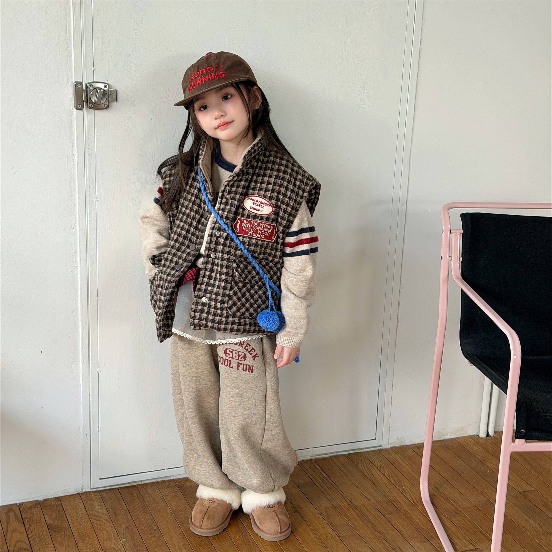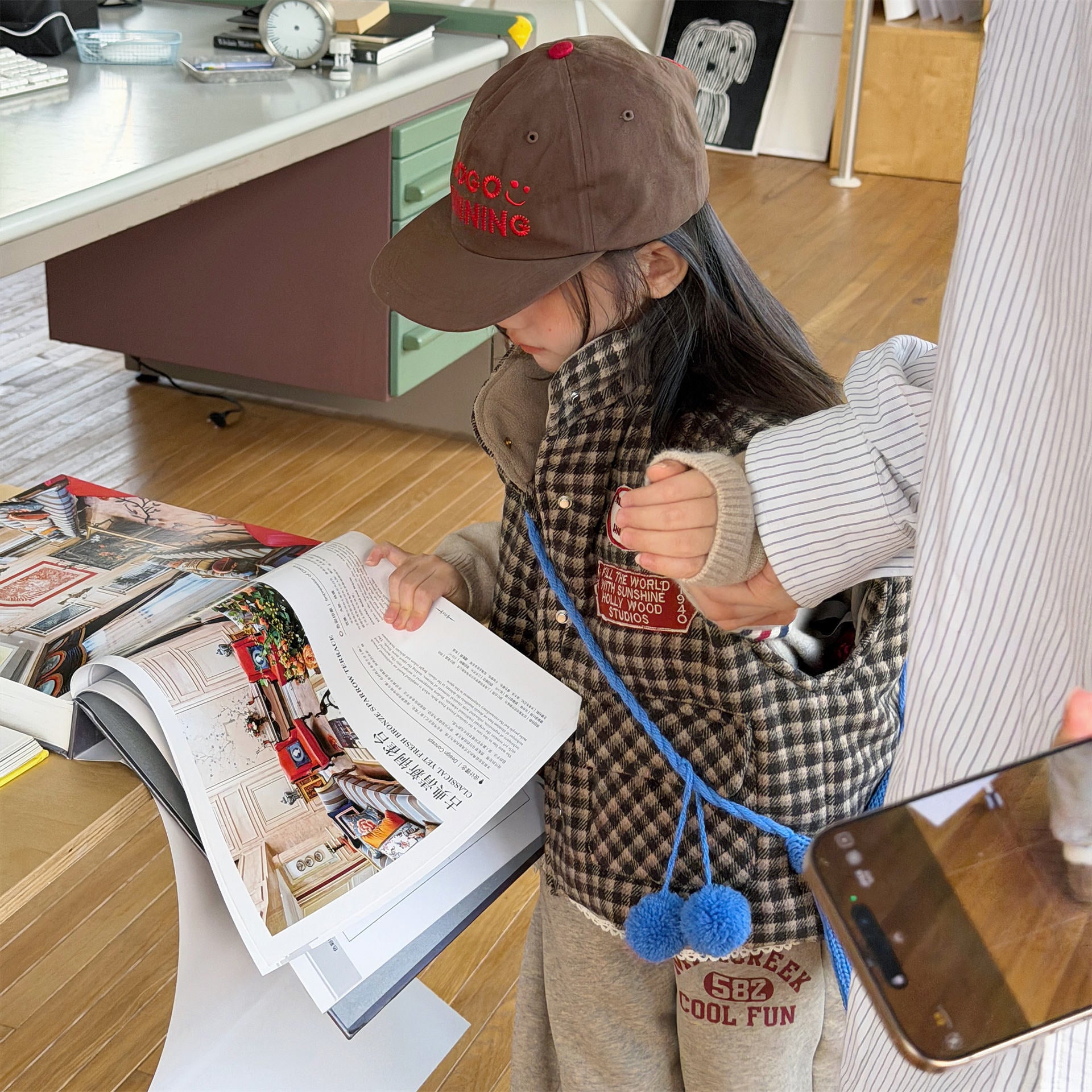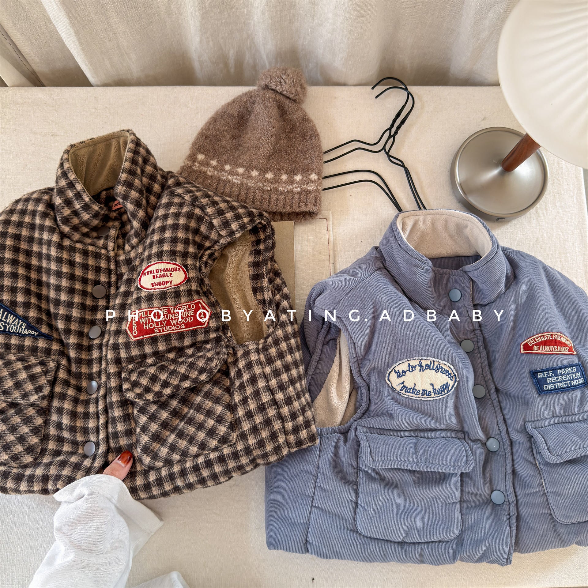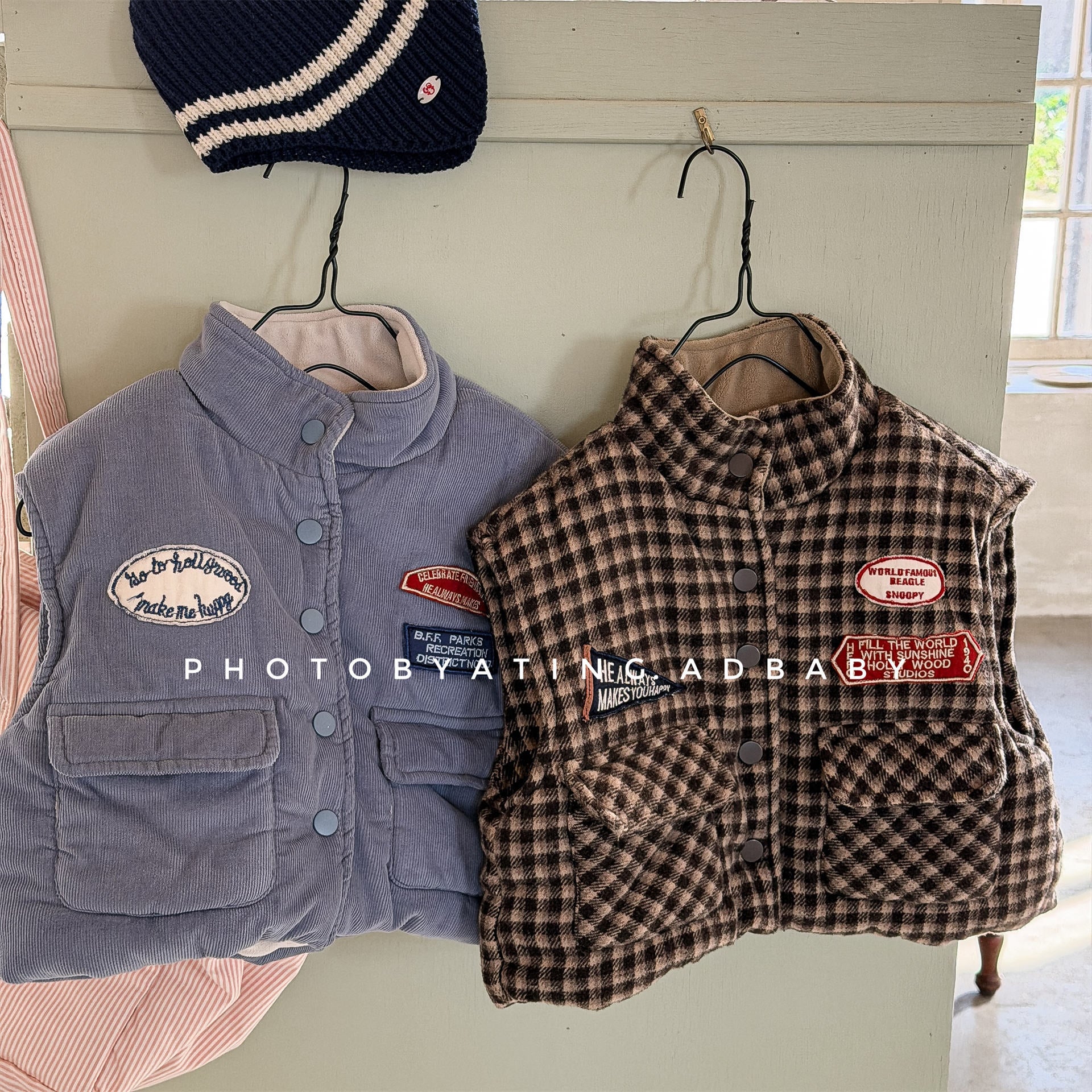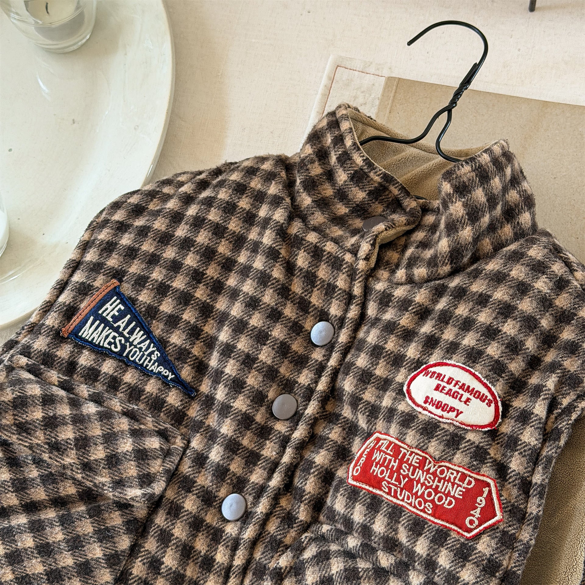 マットな質感の表地に、保温性に優れた中綿と柔らかな裏フリースを組み合わせた、機能的なフィッシャーマン風ベストです。首元までしっかりとカバーする立ち襟のデザインが冬の冷たい風を防ぎ、ボリュームのある中綿が体温を逃さずにお子様を暖かく包み込みます。性別を問わず着用できるユニセックスなシルエットと、現代的なエッセンスを加えた洗練されたデザインが特徴で、セーターやスウェットの上に重ねるだけで、動きやすさと防寒性を両立した冬のレイヤードスタイルが完成する汎用性の高いアウターウェアです。