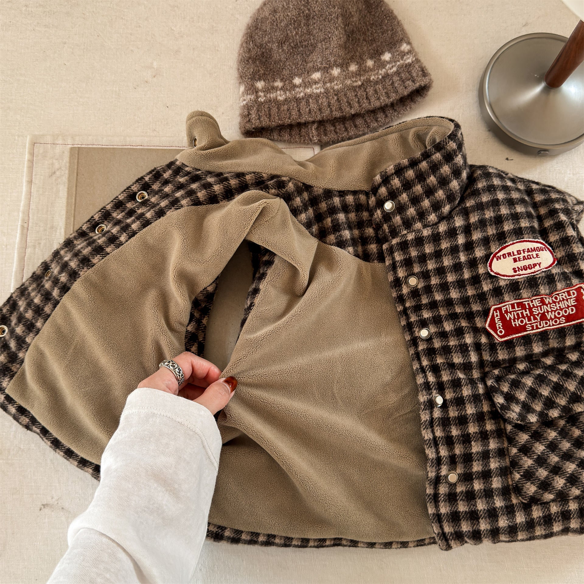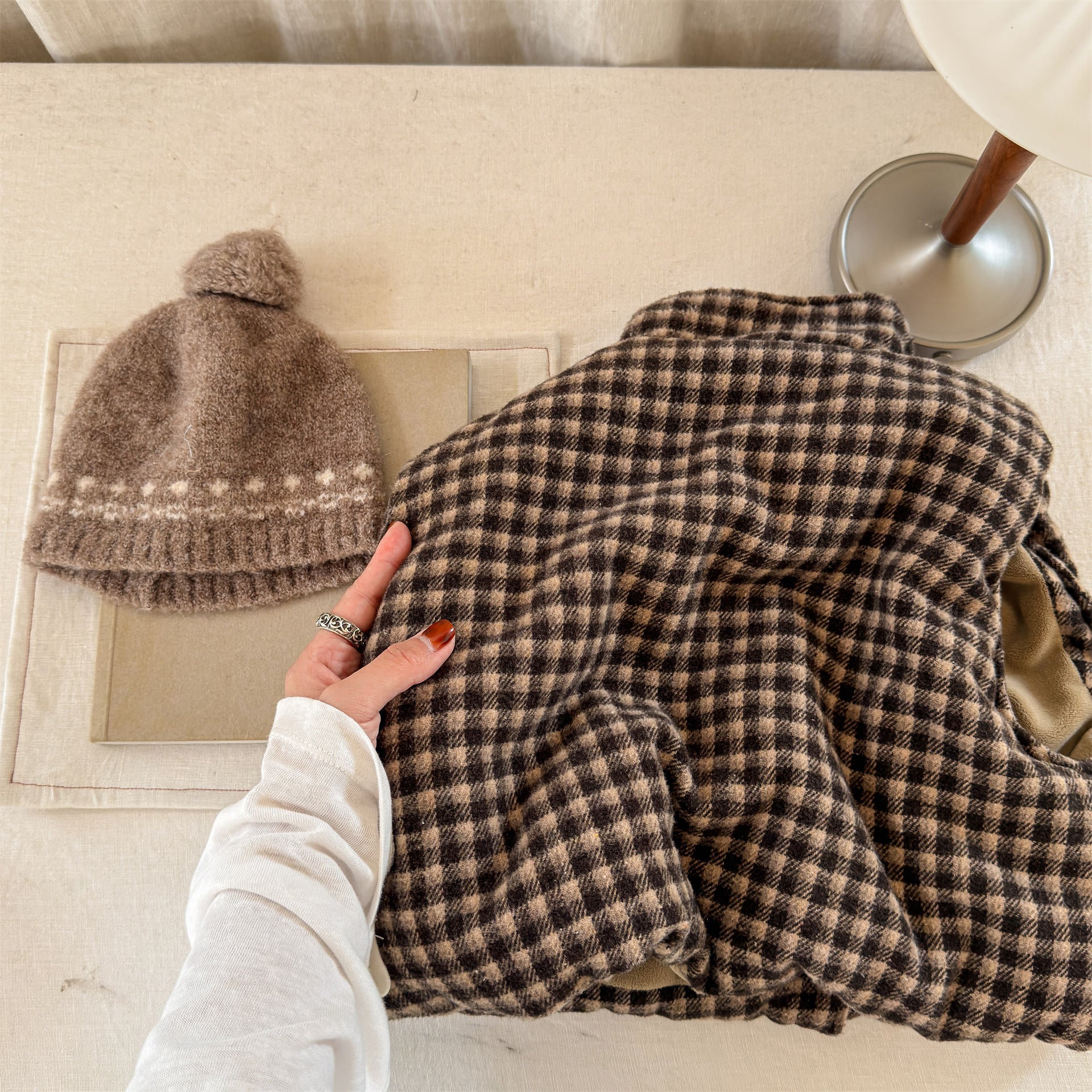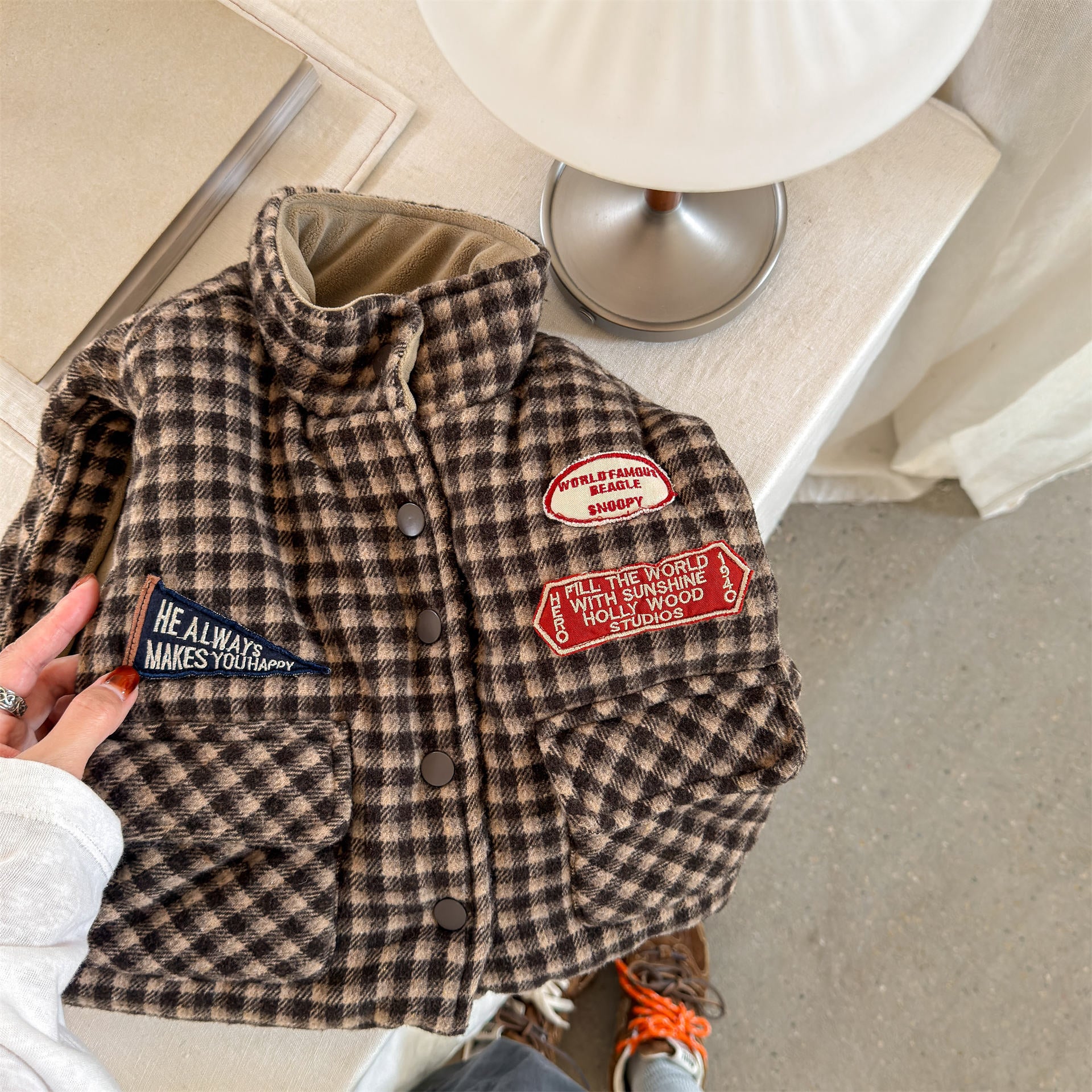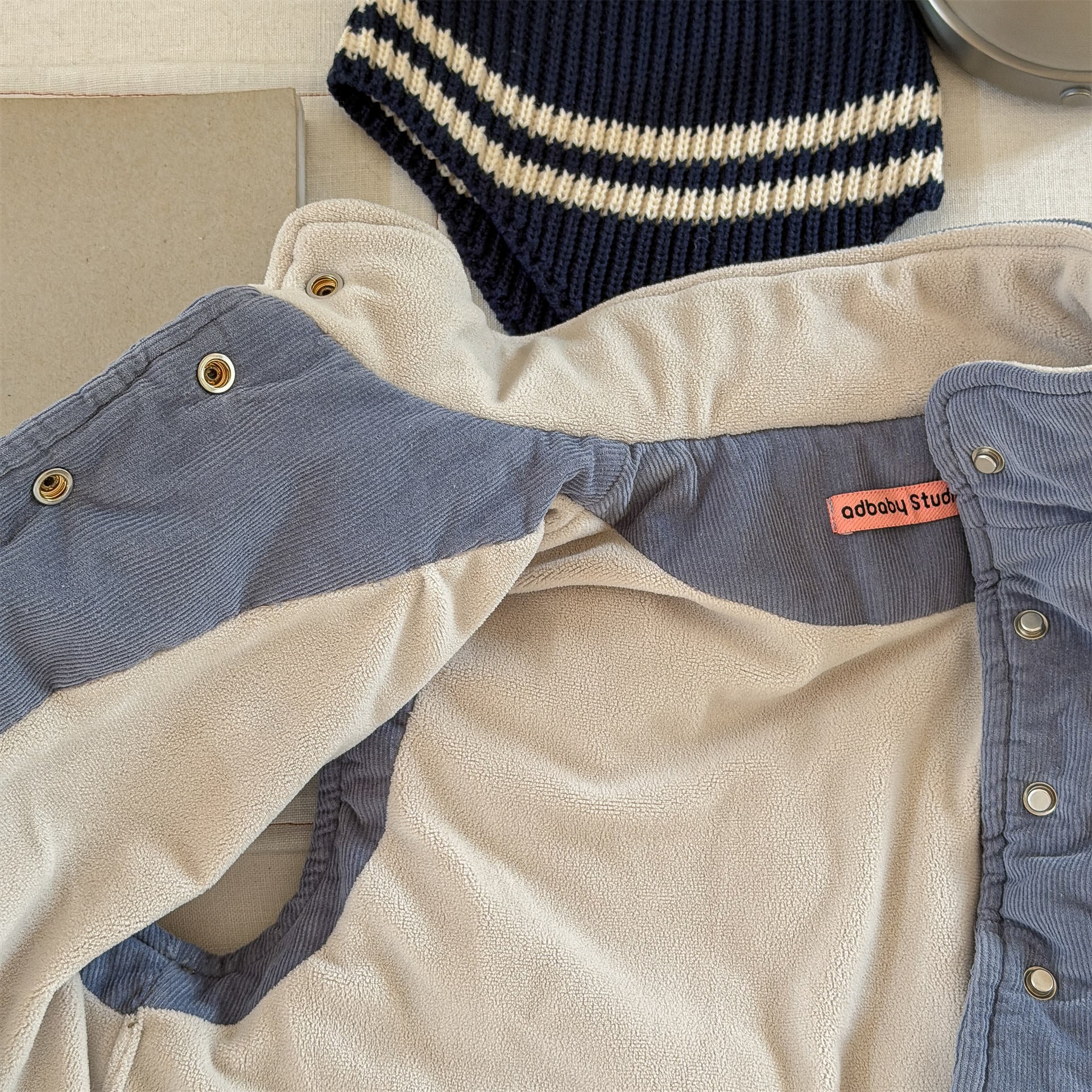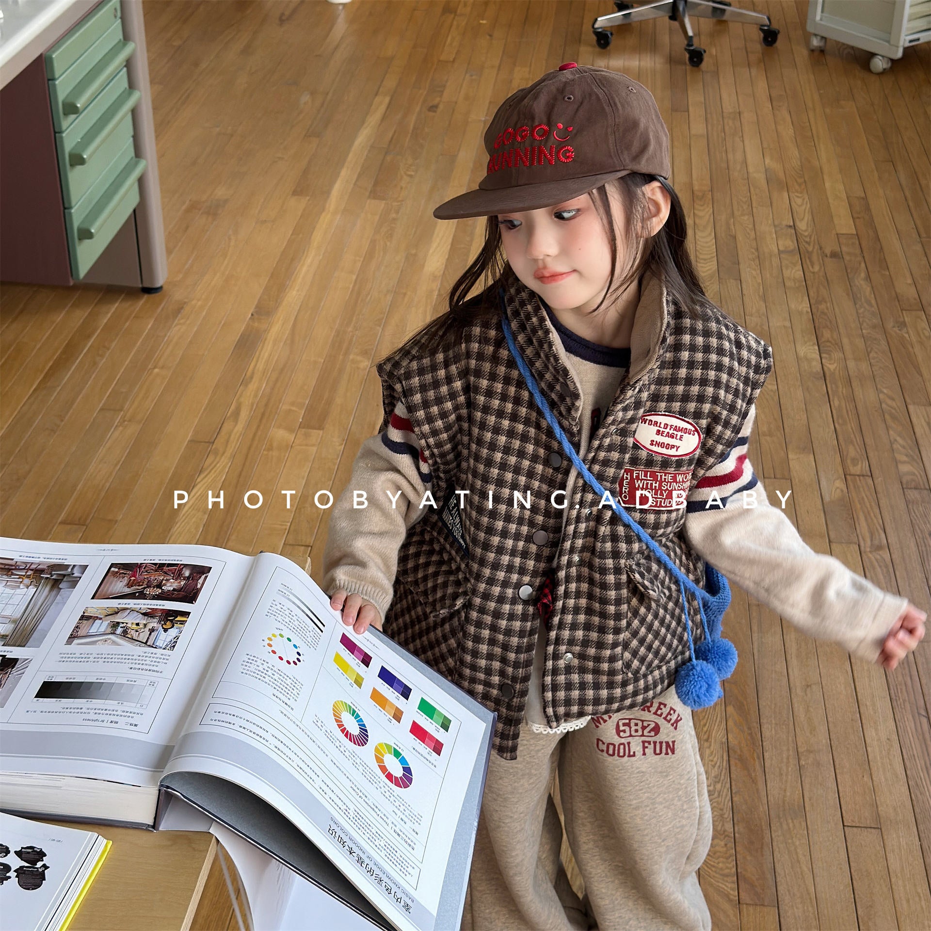 マットな質感の表地に、保温性に優れた中綿と柔らかな裏フリースを組み合わせた、機能的なフィッシャーマン風ベストです。首元までしっかりとカバーする立ち襟のデザインが冬の冷たい風を防ぎ、ボリュームのある中綿が体温を逃さずにお子様を暖かく包み込みます。性別を問わず着用できるユニセックスなシルエットと、現代的なエッセンスを加えた洗練されたデザインが特徴で、セーターやスウェットの上に重ねるだけで、動きやすさと防寒性を両立した冬のレイヤードスタイルが完成する汎用性の高いアウターウェアです。